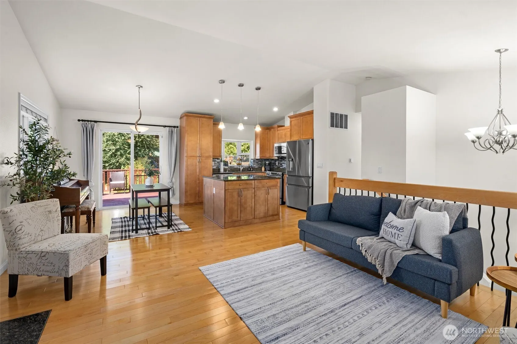 Tucked down a private drive on over ½ acre, this beautifully maintained split-entry home offers privacy, space & charm in desirable Lake Stevens. Upper level boasts an open layout w/vaulted ceiling, hardwood floors, bay window & wood-burning fireplace. Kitchen includes granite counters, updated cabinetry, backsplash, S/S appliances & greenhouse window. Down the hall is an Owner’s Suite w/dual closets & ¾ ensuite. 2 add’l bedrooms & a full bath. Downstairs find a ½ bath w/laundry, 4th bedroom w/cedar wainscoting & 2nd living room w/slider to the patio. An entertaining Deck overlooks fenced backyard featuring mature landscaping, fruit trees, a play area, a bonus detached shed w/covered porch & peek-a-boo VIEW! SNOHOMISH SCHOOLS & PREINPECTED!