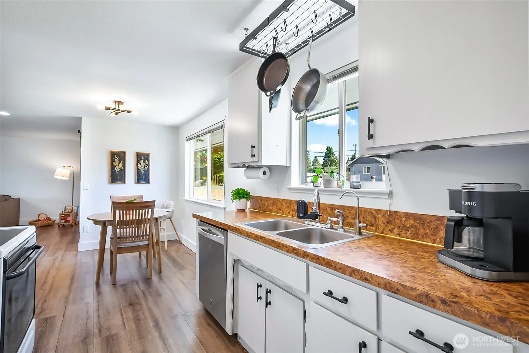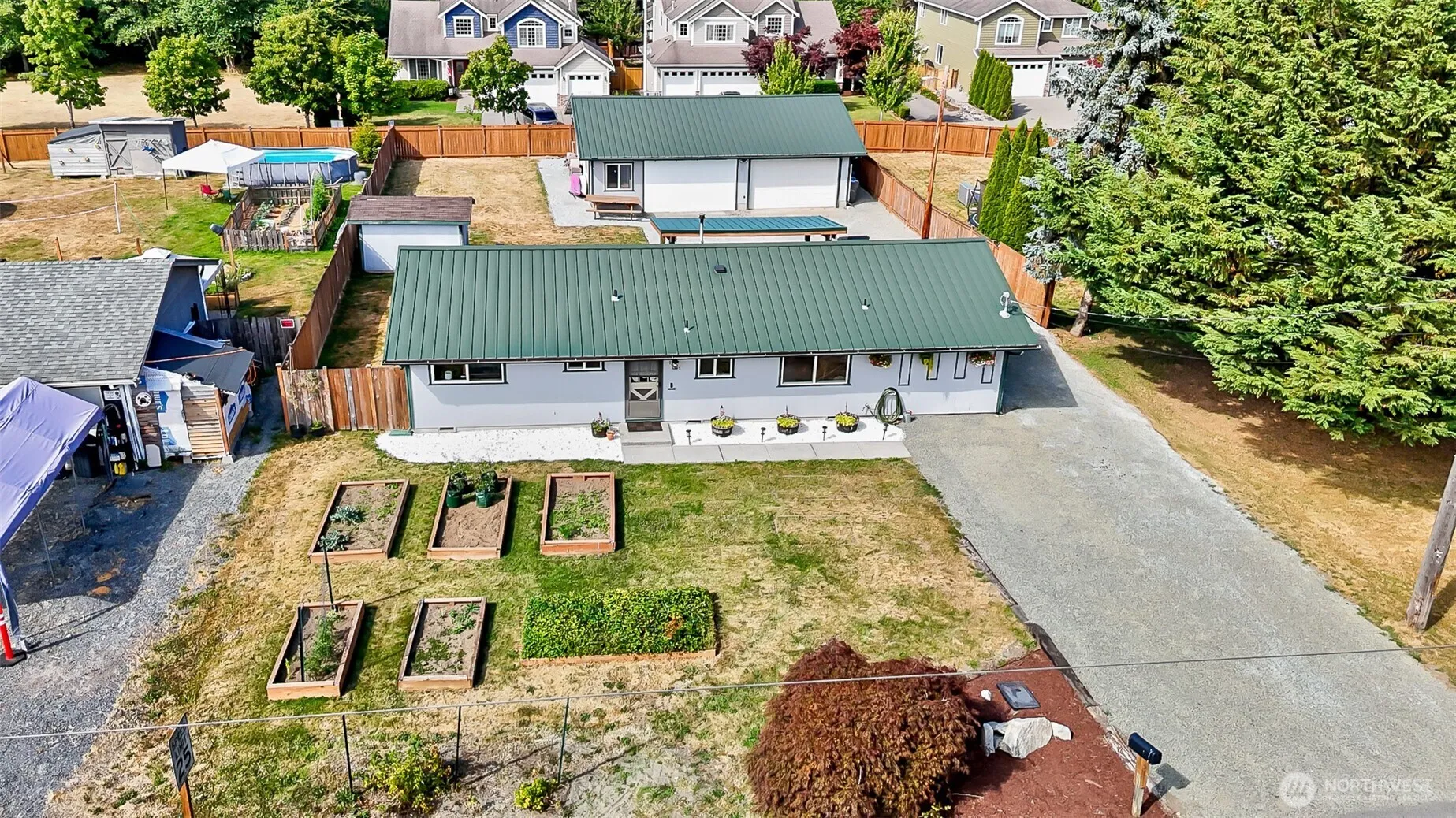 Charming Lake Stevens Rambler with Expansive Shop!Nestled in a sought-after neighborhood of Lake Stevens, this beautifully updated 3-bedroom, 1-bath home offers comfort, functionality, and room to grow. Enjoy an open floor plan with fresh interior paint & stylish new LVP flooring throughout, creating a modern yet inviting atmosphere. The spacious kitchen flows seamlessly into the dining & living areas—ideal for entertaining or cozy evenings. Step outside to your fully fenced backyard oasis with ample space for pets or play. Metal roof and raised garden beds for low maintenance. Need extra room for hobbies? The huge detached shop is a rare and valuable find! Whether you’re looking for tranquility or versatility, this property delivers!