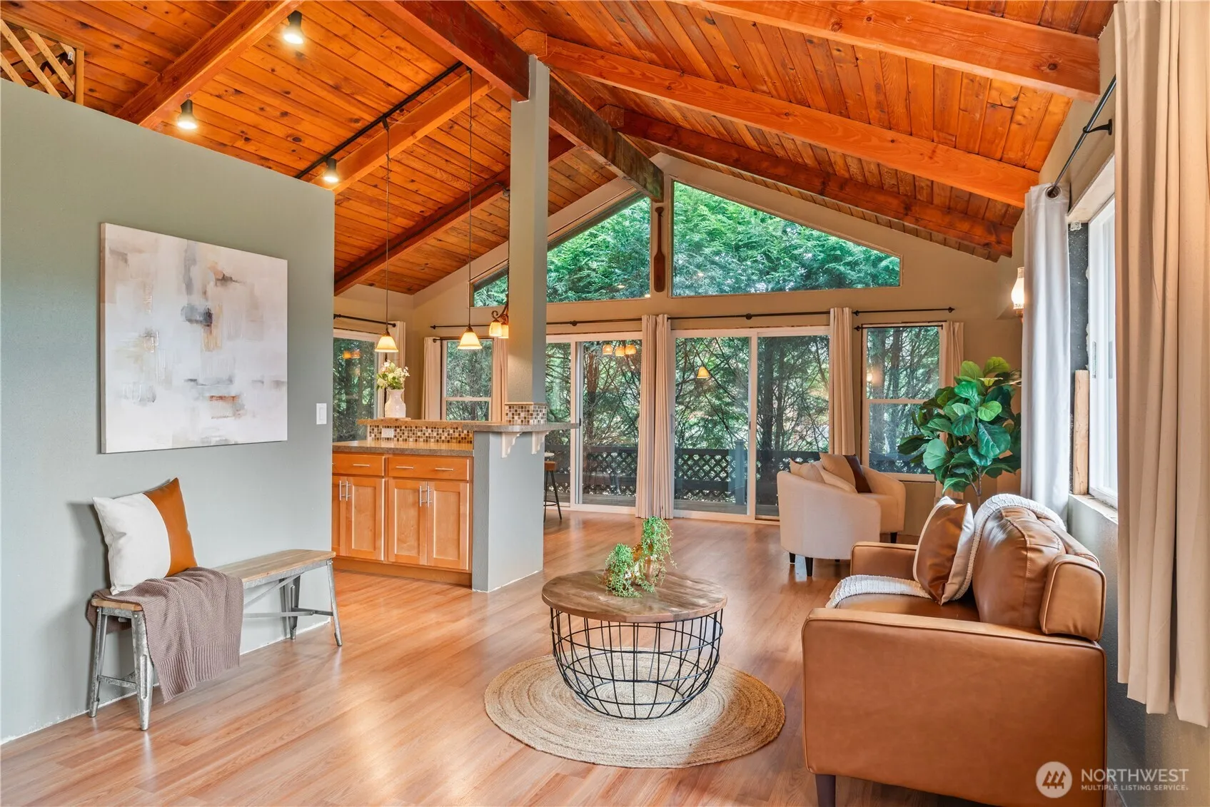 This sweet little spot at the end of a cul-de-sac is full of potential! If you’re looking for a full-time home, a weekend getaway, or a great short-term rental opportunity, this is it! This 2 bed, 1 bath home makes the most of every inch with a layout that feels open & bright. The deck is perfect for morning coffee or evening BBQs, and the secluded fire pit makes for great summer nights with friends. There’s plenty of room to park your RV or boat and NO HOA means you’ve got flexibility. Inside, the wood stove keeps things warm and inviting all year round. Located just minutes from Mayfield Lake and a short drive to White Pass, it’s a great base for both lake and mountain life. Seller offering $1000 credit towards unfinished trim.