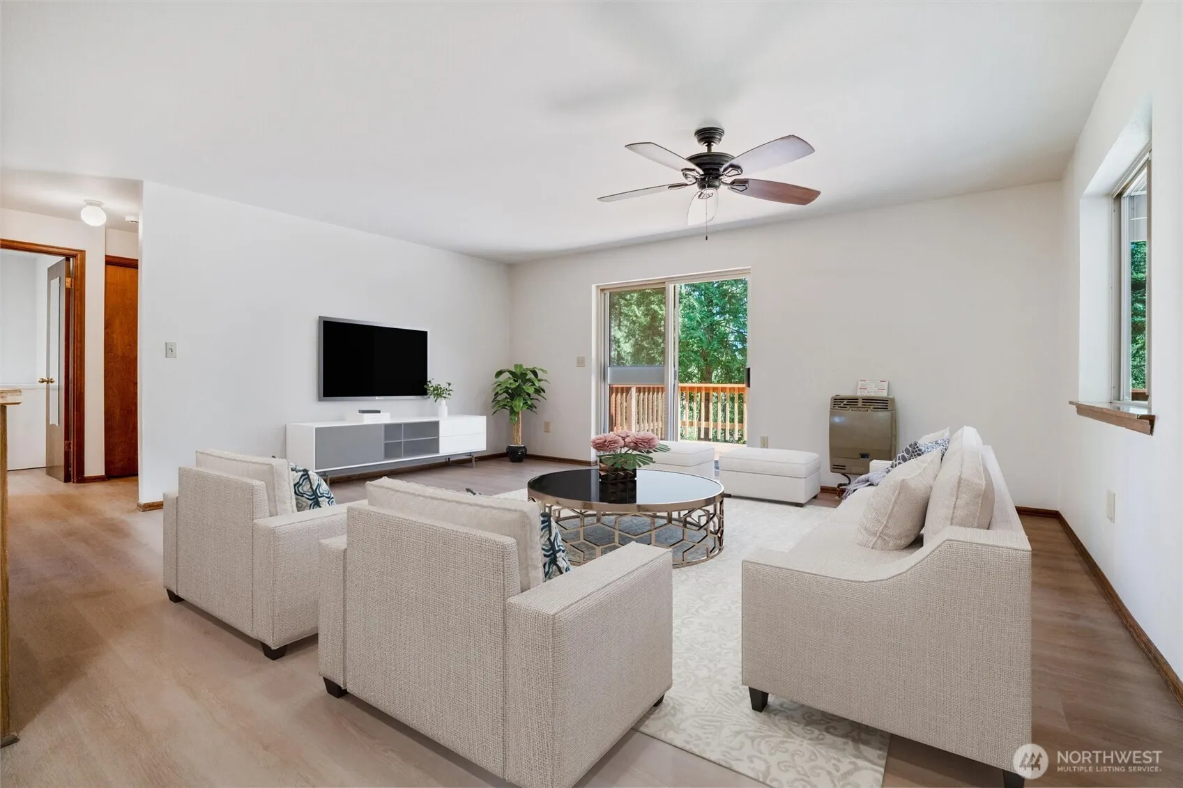 Nestled on approximately 7.59 acres, this charming one-story home offers a peaceful and private setting. Featuring 1,344 square feet of living space, with one bedroom and one bathroom. Plus the attached 24’x24′ workshop/Rec room, with a stovetop and sink, is an ideal space for customization with potential to add bedrooms within the existing layout. New laminate tile flooring throughout, freshly painted interior, ceiling fans and all appliances included. The open concept living area includes a spacious deck and a covered front porch to enjoy indoor-outdoor living and entertaining. RV hook-ups allow for convenient guest accommodations. Individual well and 3 bedroom septic system. Priced below assessed value. This one is a must see!