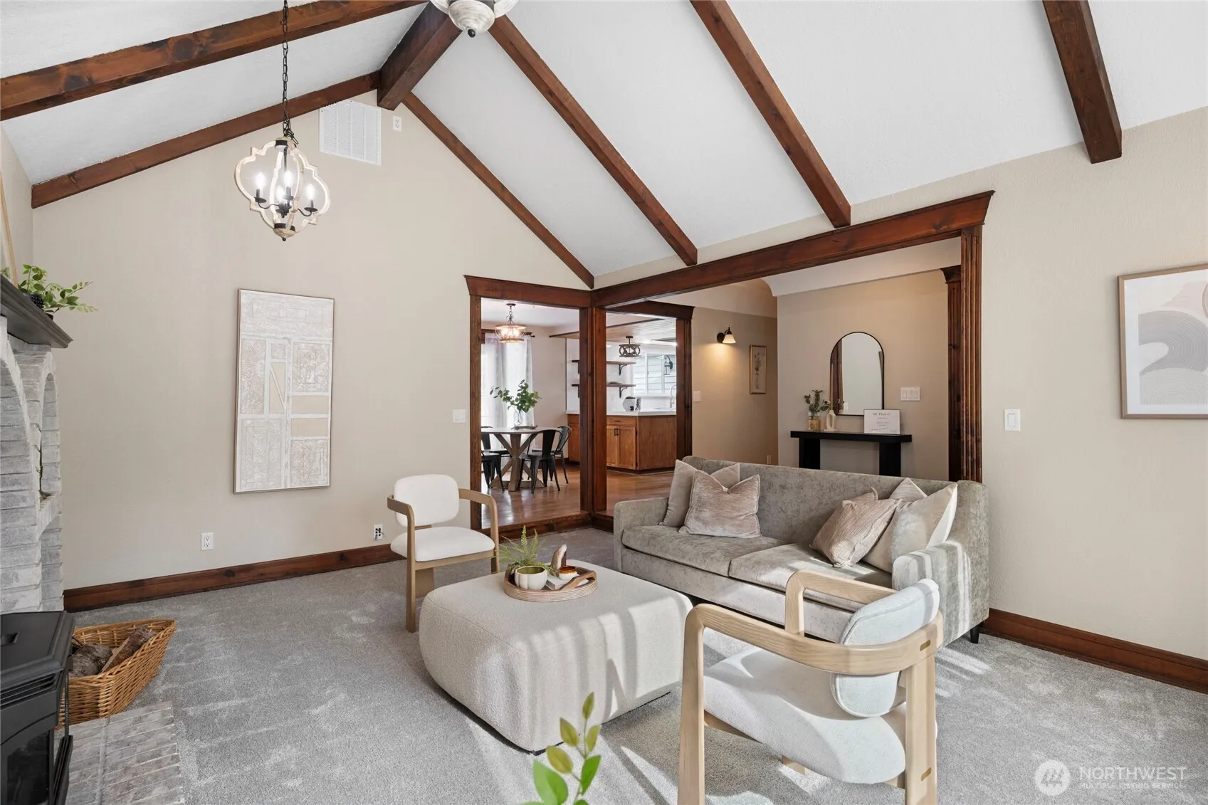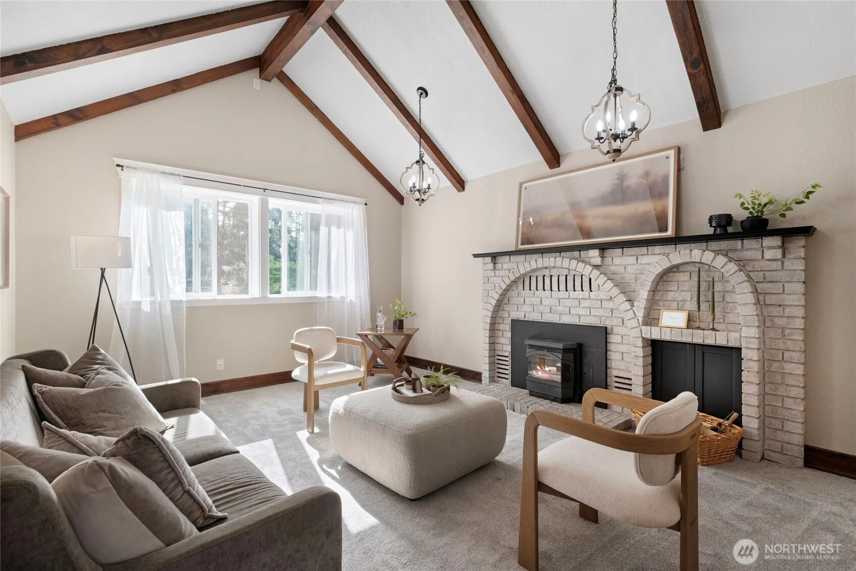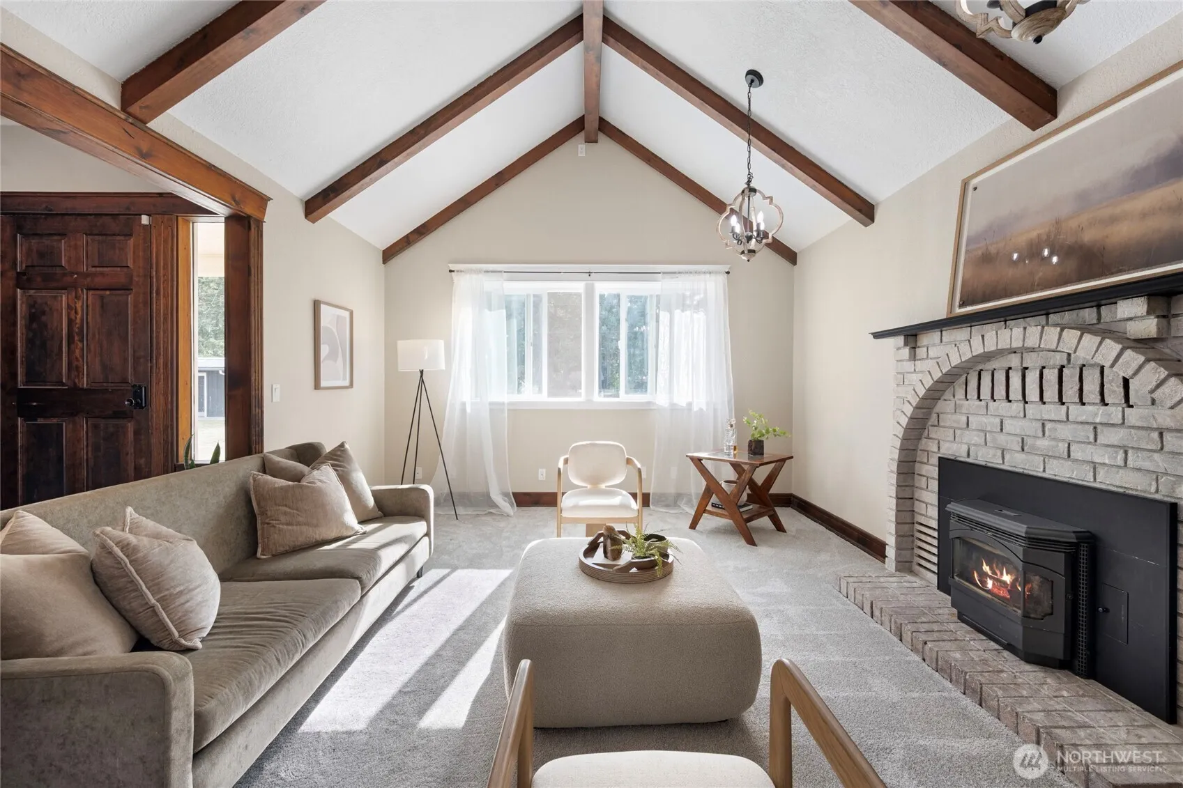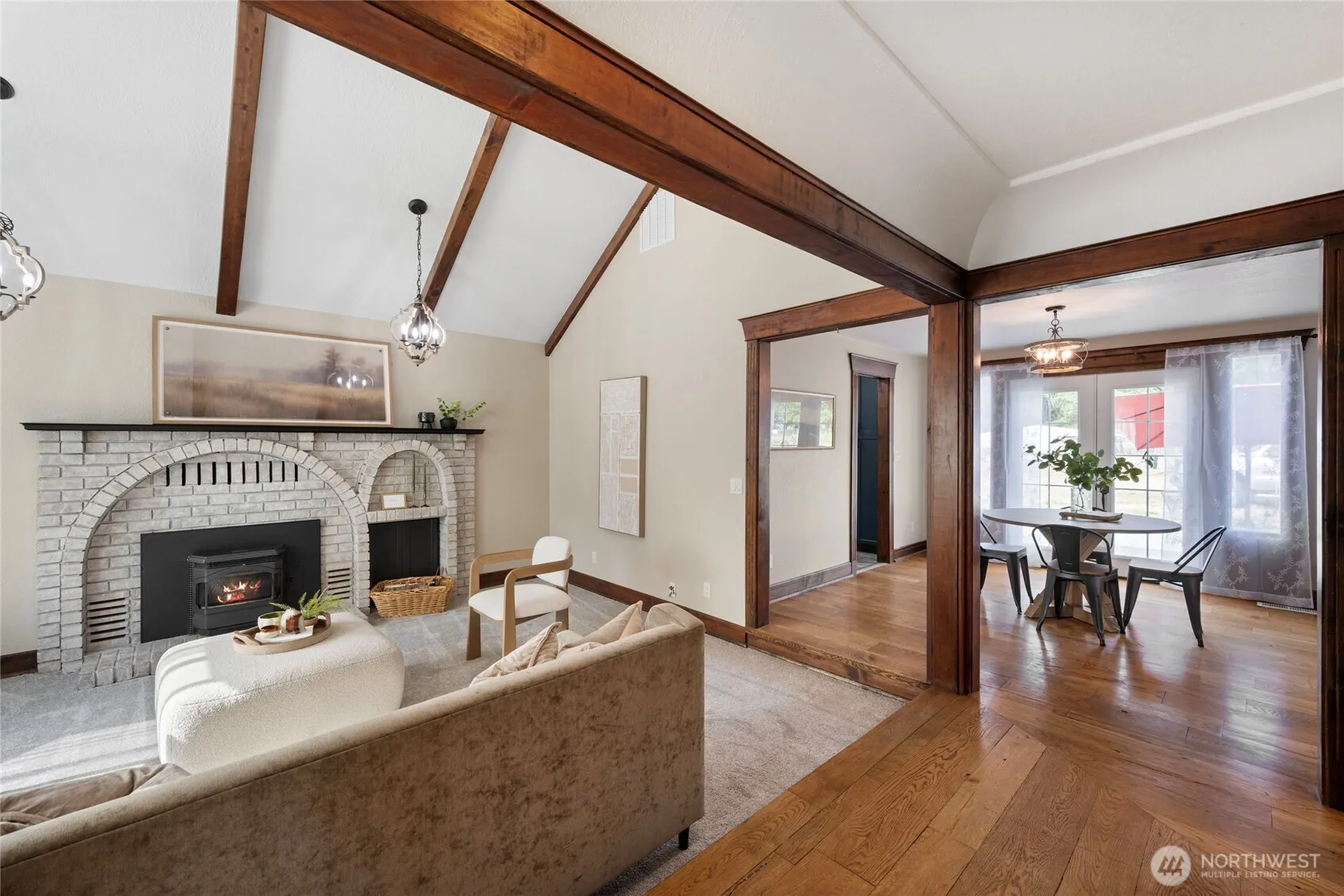 Tucked near the end of a private road, this beautifully detailed ranch style home sits on 1.27 exceptional acres. Inside, enjoy stunning millwork, hardwood floors, new carpet, and a refreshed kitchen with ample storage and stunning skylight. Vaulted ceilings and a grand fireplace highlight the spacious living room. The home features 3 bedrooms, including 2 primary suites, and 3 seperate stylishly updated bathrooms (2 three quarter and one half). Outside offers a patio, chicken coop, garden space, 2 greenhouses, detached 3-car garage, large shop, and tons of parking for RVs, boats, and more. With all this land, what can you imagine?