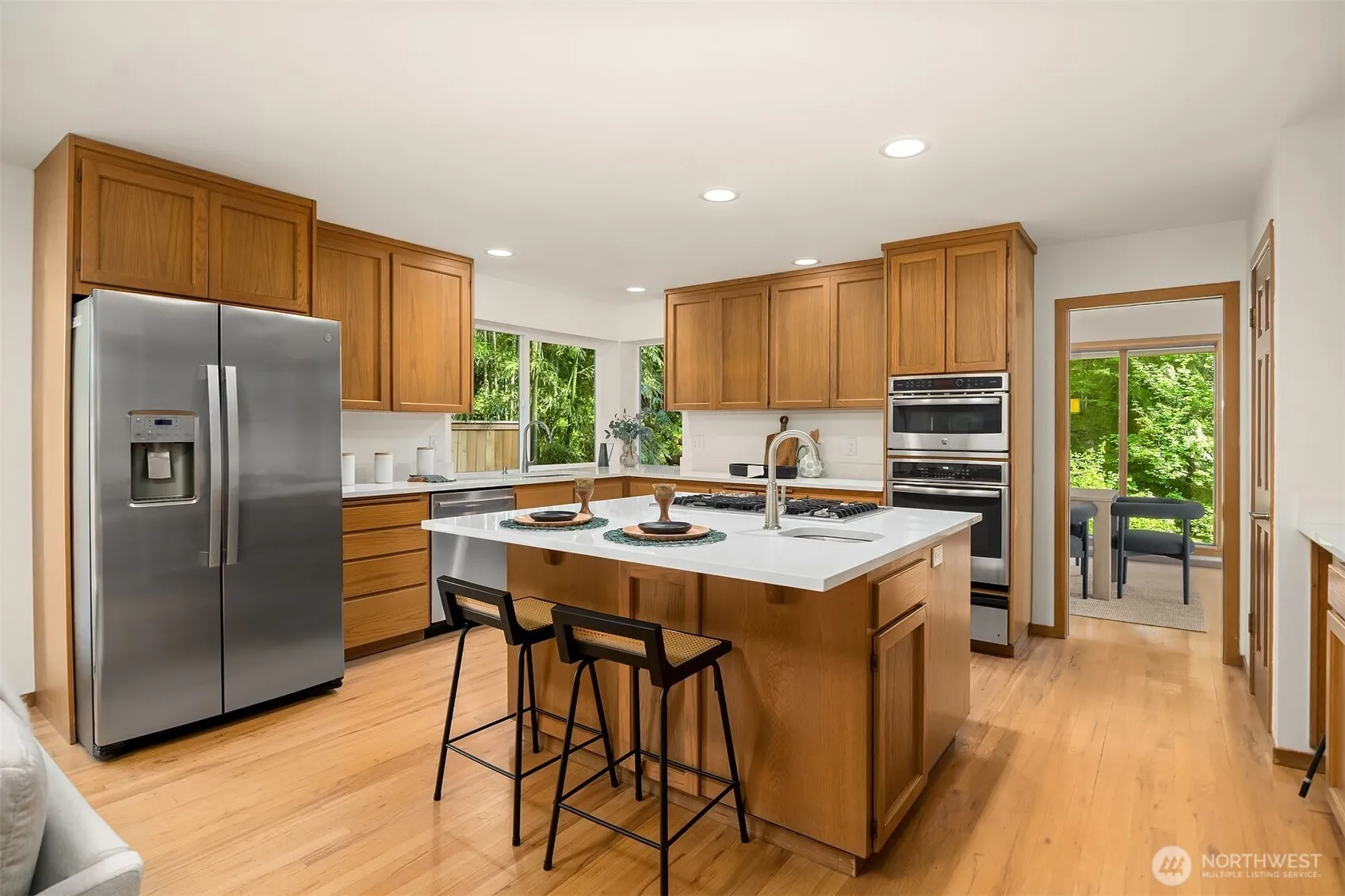Westside shared waterfront w/ newly upgraded dock, beach, and deeded boat slip – the perfect place to watch Seafair! Set on nearly a .5 acre lot, this home features 2 flat play areas, basketball court/boat parking & multiple decks. Light-filled main floor is ideal for entertaining; updated kitchen w/ quartz counters, new appliances, large island & French doors to alfresco dining. All 3 bedrooms on one level, incl. dreamy primary suite w/ balcony, skylights, and 5-piece bath. Versatile finished LL with bath, fireplace, and separate entrance—great as ADU/guest suite. Charming top floor perfect for playroom or office. New Trex deck, generator, fully fenced yard. Huge lot offers DADU potential! This pre-inspected home has it all!