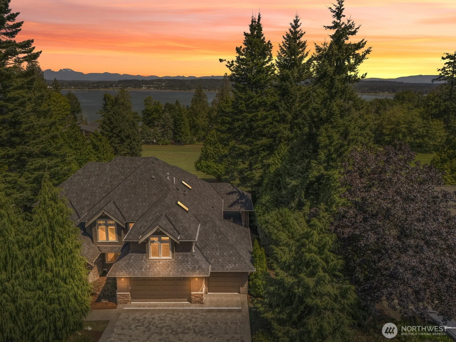Introducing a custom Eide-built home perfectly sited on the 2nd fairway of the renowned Semiahmoo golf course boasting peaceful resort-style living, water views, & a NEW 50 yr roof. Step inside to find hand-chiseled hardwood floors & sun-drenched windows that frame the outdoors. The main-level layout offers a luxurious Primary Suite features a 5-piece spa bath, spacious walk-in closet + sunny patio. The open-concept living & chef’s kitchen offers elegant comfort w/ new SS fridge, incredible GE professional gas range, wine fridge & a cozy double sided fireplace anchoring a vaulted living room. Enjoy a second primary BD suite upstairs + addtl guest BD. Bonus theater rm w/ views & miles of trails + club amenities like pool, pickleball + more!
