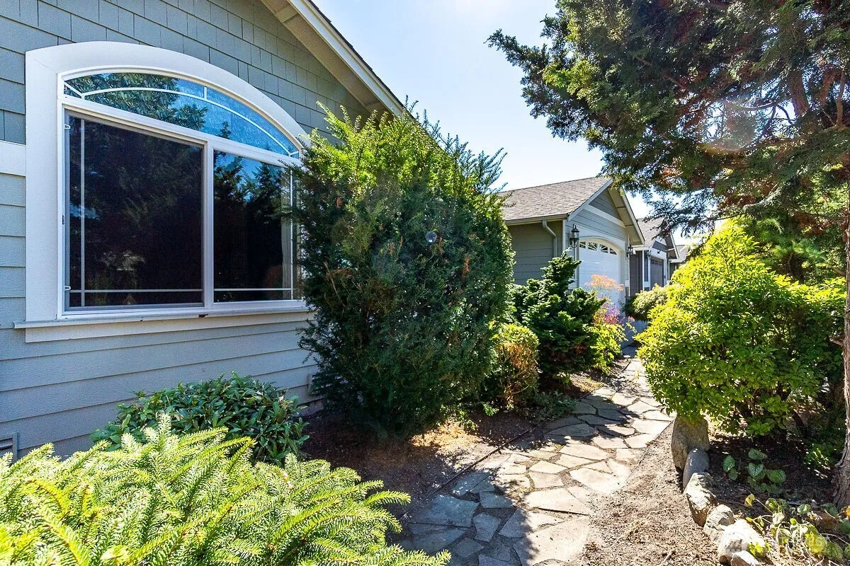 Magical Low maintenance front yard & covered front porch that welcomes you into this immaculate one-level home. Soaring ceilings & open layout. Wide-open living room flooded w/warm, natural light & cozy gas fireplace. Generous kitchen comes equipped w/ample counter space, updated appliances & sleek black granite counters. 3 spacious bedrooms,2.5 baths including updated 5pc primary bath ensuite. Don’t forget the A/C!! Relax or entertain in large backyard, landscaped with artful purpose. Optional backyard 10 ft gate entrance for RV parking. A must see large entertaining patio & mystical backyard surrounded by lush greenery & art. Shop/outbuilding. End of road & NO HOA! Close to everything situated between I-5 & HWY 9.