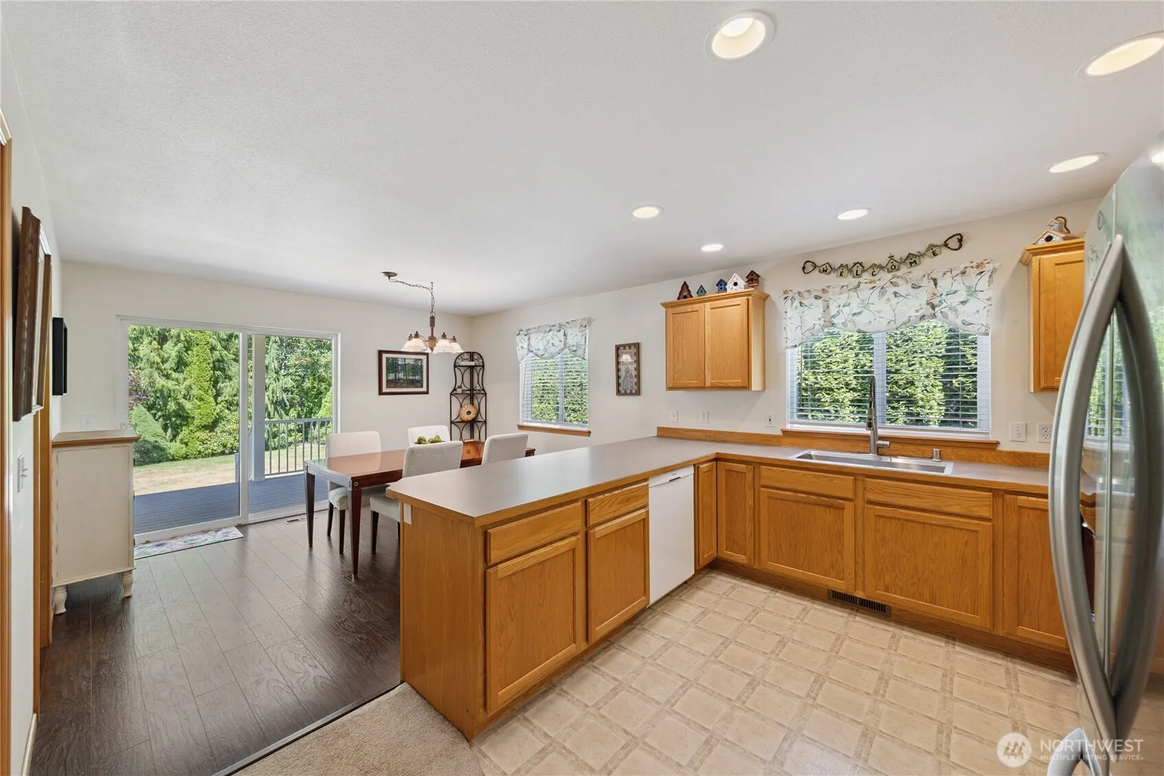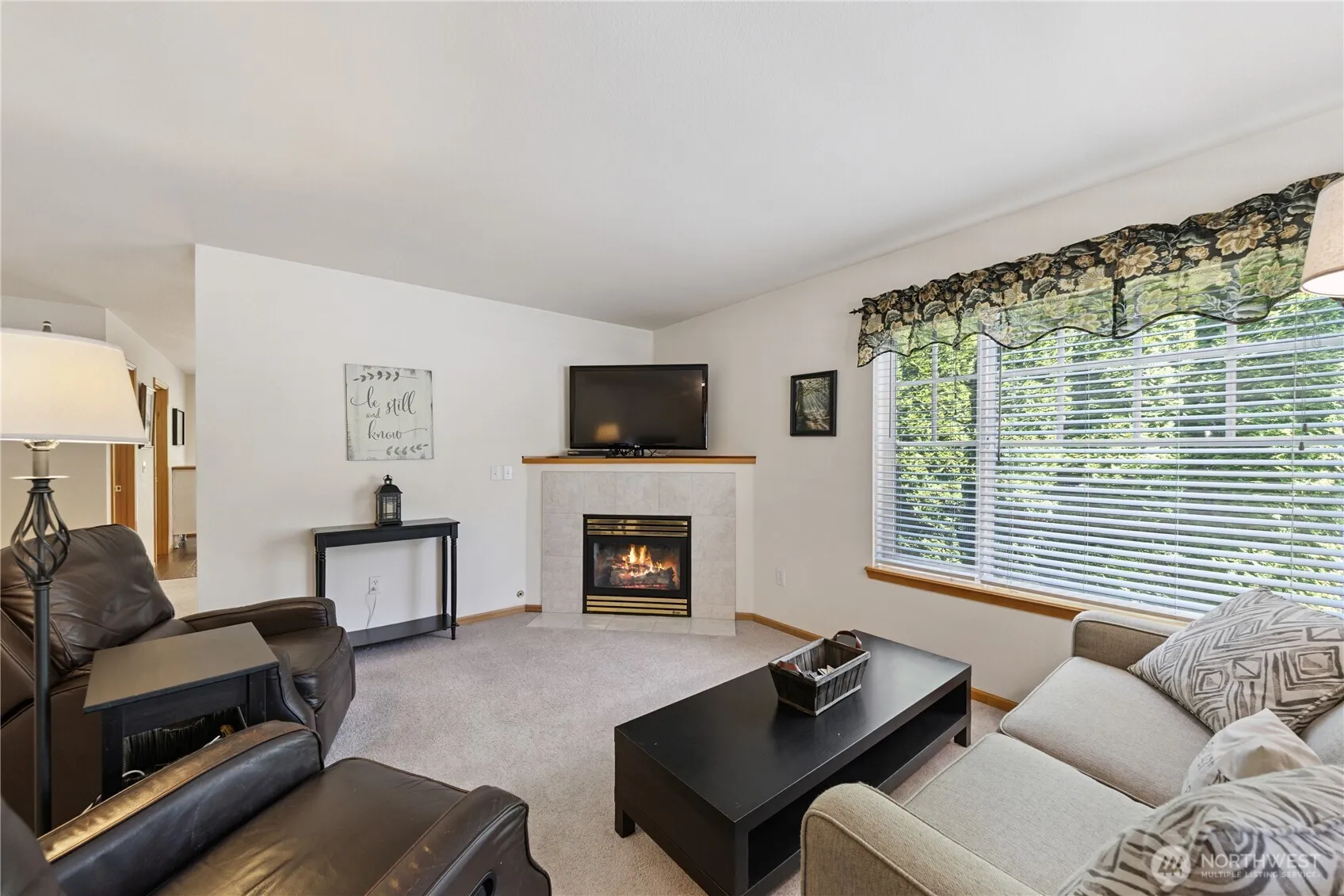 Welcome home to Eaglemont, where comfort meets tranquility in this bright, inviting retreat on a lush ¼-acre lot. The sunlit living room with a cozy gas fireplace flows into a cheerful eat-in kitchen with bar seating—perfect for everyday living and casual gatherings. Upstairs, the spacious primary suite features a walk-in closet, ceiling fan, and private bath for your own personal escape. The oversized garage offers high ceilings and a large storage platform. Step outside to a peaceful backyard oasis that backs to a greenbelt, complete with a relaxing hot tub and patio for unwinding under the stars. The charming front porch and quiet cul-de-sac setting complete the story.