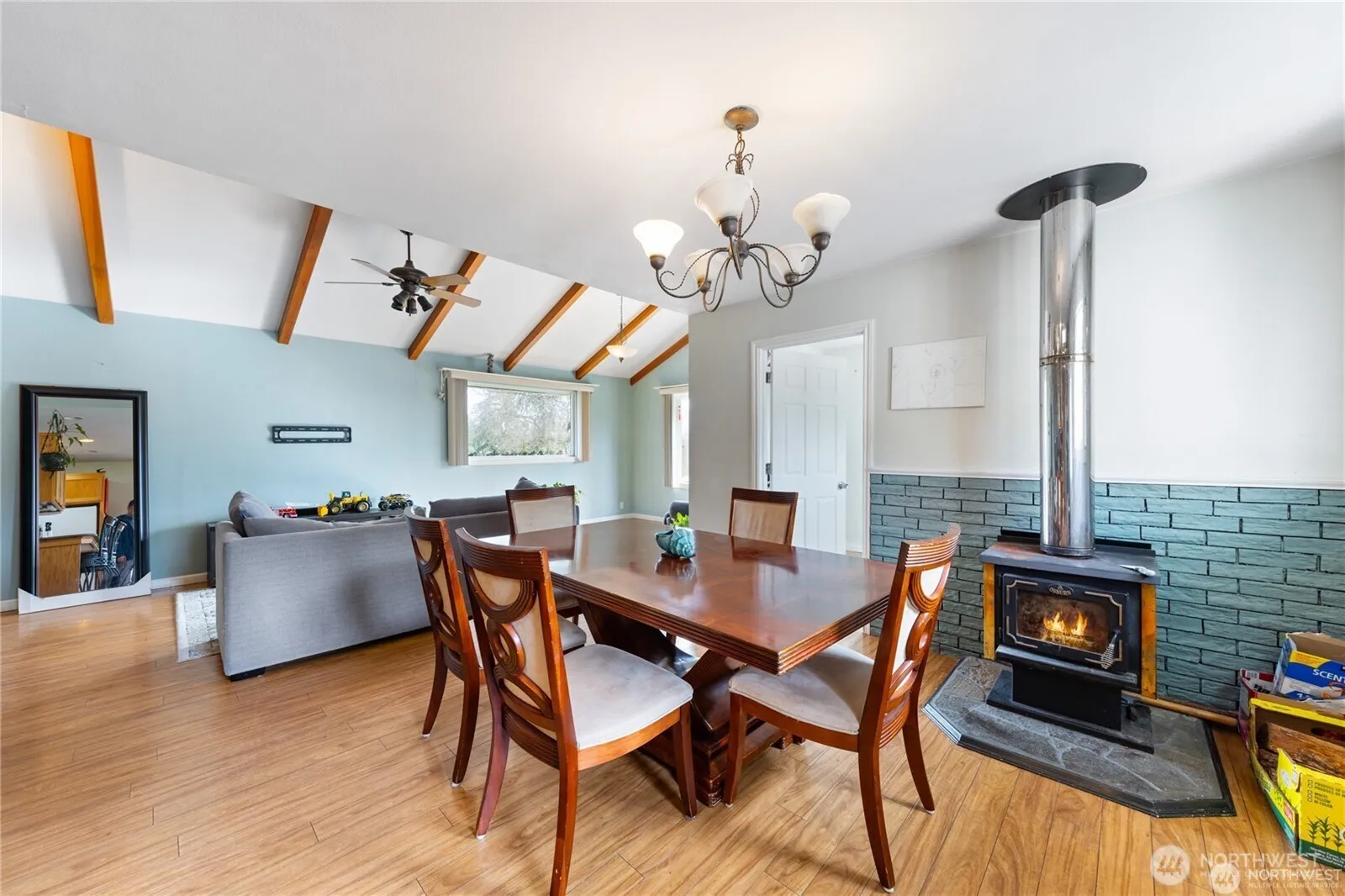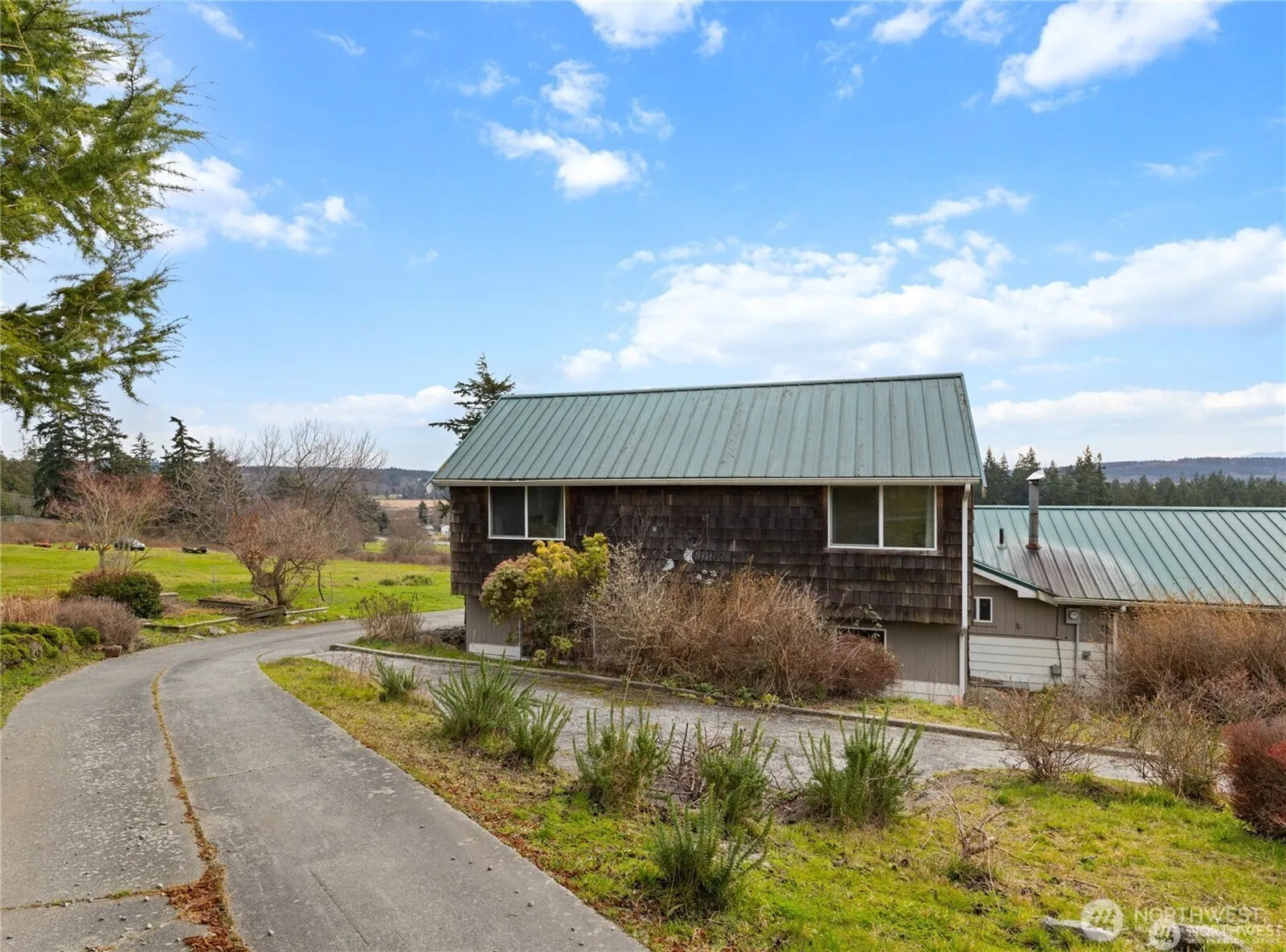 Enjoy breathtaking territorial and mountain views from this serene 5-acre wine making property. Pinot Noir grapes plants are almost ready to become wonderful wine. The inviting living room features warm tones and exposed wooden beams on a vaulted ceiling, creating a cozy retreat. A free-standing stove in the dining area adds charm and warmth. The spacious bonus room, with durable ceramic tile floors, offers endless possibilities as a rec room, playroom, or home office. Embrace outdoor living with dedicated garden and orchard space, perfect for cultivating your own fresh food. Car enthusiasts and hobbyists will love the 4-car garage and expansive 1,600 sq. ft. separate shop. A rare opportunity to own a slice of the Pacific Northwest!