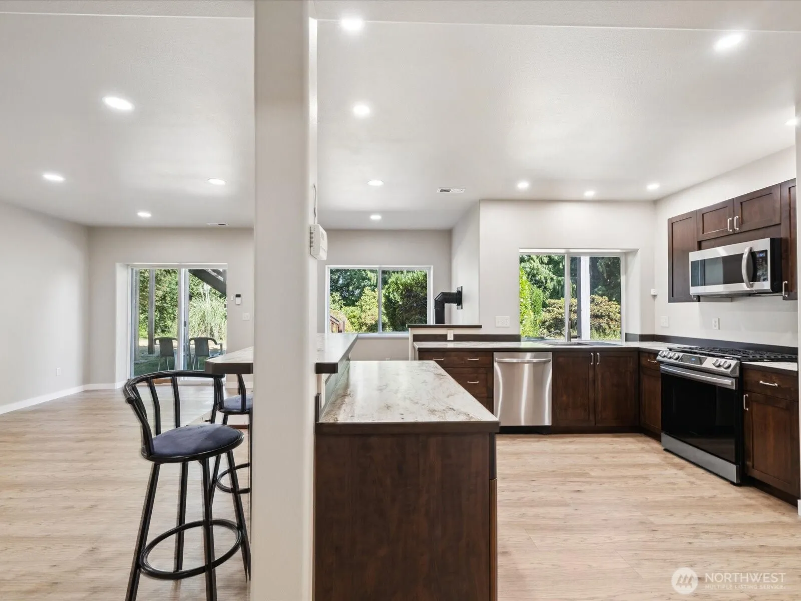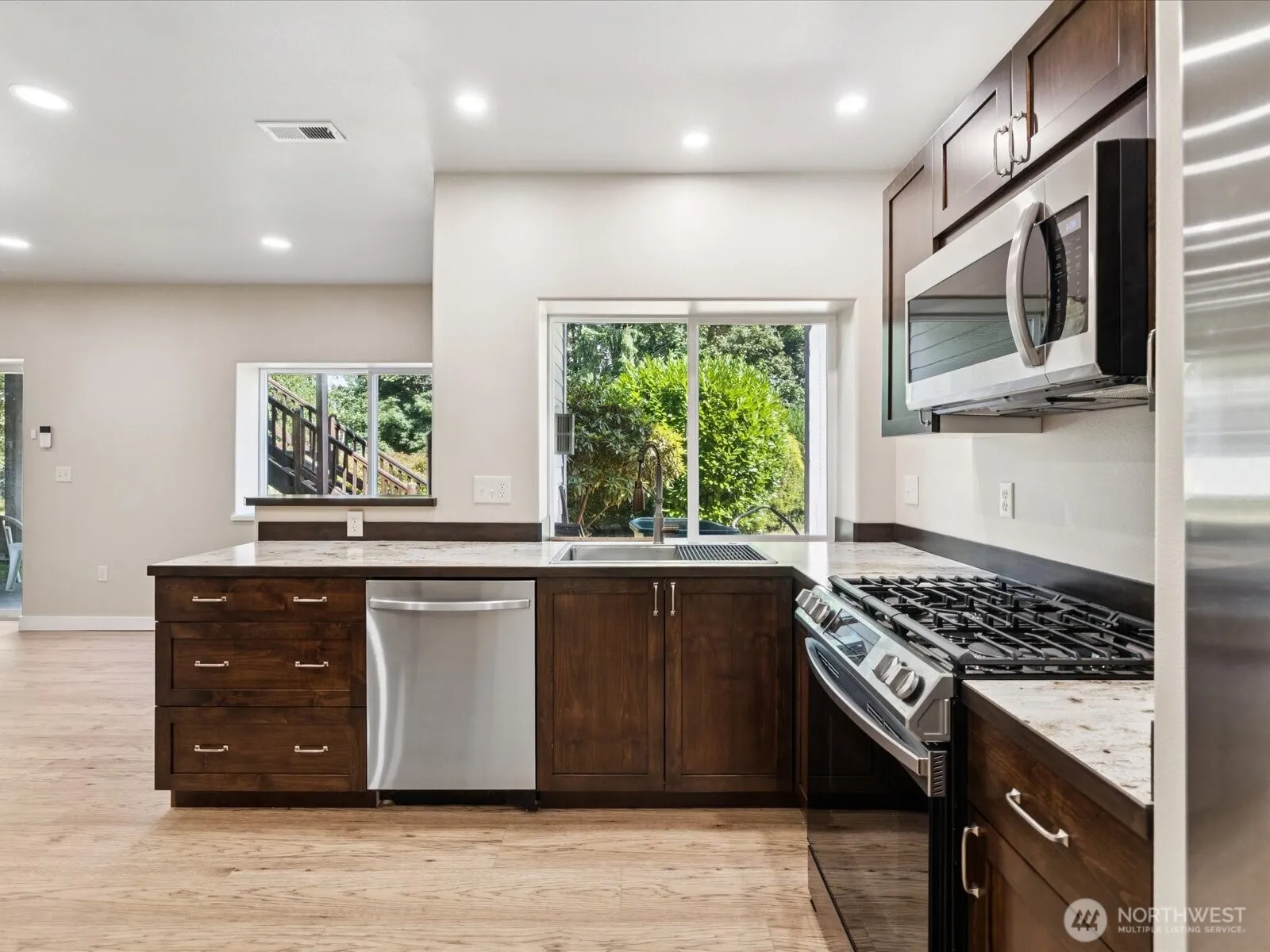 *Beautiful Lake Stevens Home* Spacious 3,401 sqft with an ADU / multi-generational potential. 4 large bedrooms + 1 non-conforming 5th bedroom or office on a private ½ acre in Green View Ridge. Main level features an open layout, hardwood flooring, chef’s kitchen w/ breakfast bar, quartz countertops and recessed ceilings. The primary suite has a Juliet balcony, walk-in-closet and stunning views. Lower level includes a fully updated 2nd kitchen w/ stainless steel appliances, engineered hardwoods, and a separate entrance. Great for rentals, guests, or multigenerational living. Roof is 6 yrs old w/ wide gutters. Durable Hardie siding. Shop w/ power. 2 utility rooms. 2 gas fireplaces. $6K carpet credit. Easy access to Hwy 9 & I-5.