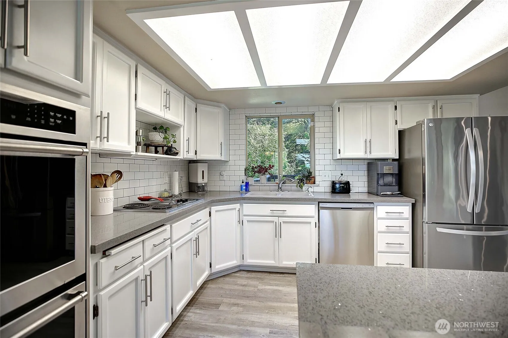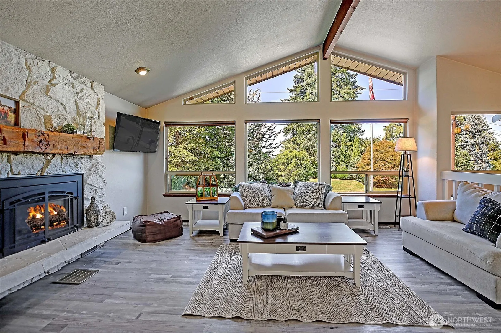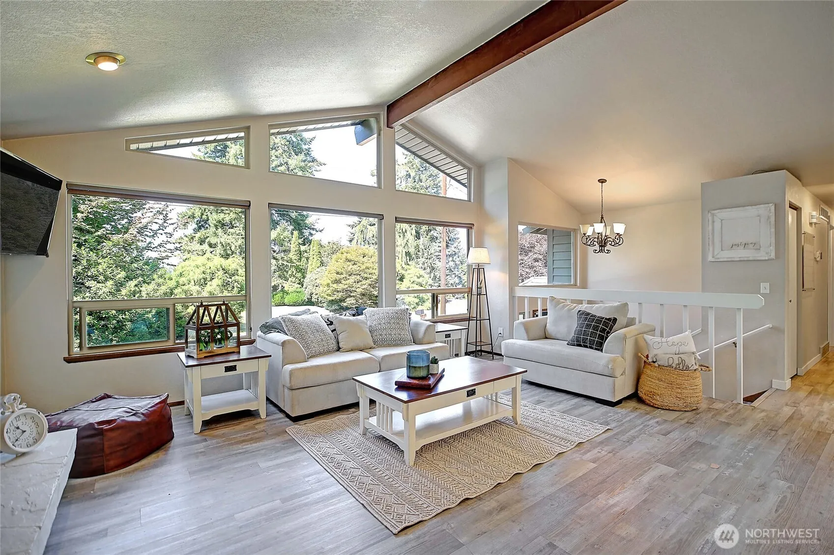 Beautifully updated home in Sunday Lake. Offering both style & comfort in a peaceful setting. Updated kitchen w/ large island, quartz counters, shaker cabinets, double oven & SS appliances. LVP flooring on the main level w/ vaulted ceilings in the great room that flood the space w/ light & highlight the western exposure. Updated bathrooms w/ modern tilework, new vanities, and LED mirrors; adding a spa-like feel. Downstairs, enjoy durable polished concrete floors, ideal for a multi-functional space or cozy den. Recent upgrades include a new furnace & heat pump for energy efficiency & comfort (A/C), and newer hot water heater. Situated on a large lot w/ community lake access & trails; the perfect blend of modern updates & outdoor lifestyle.