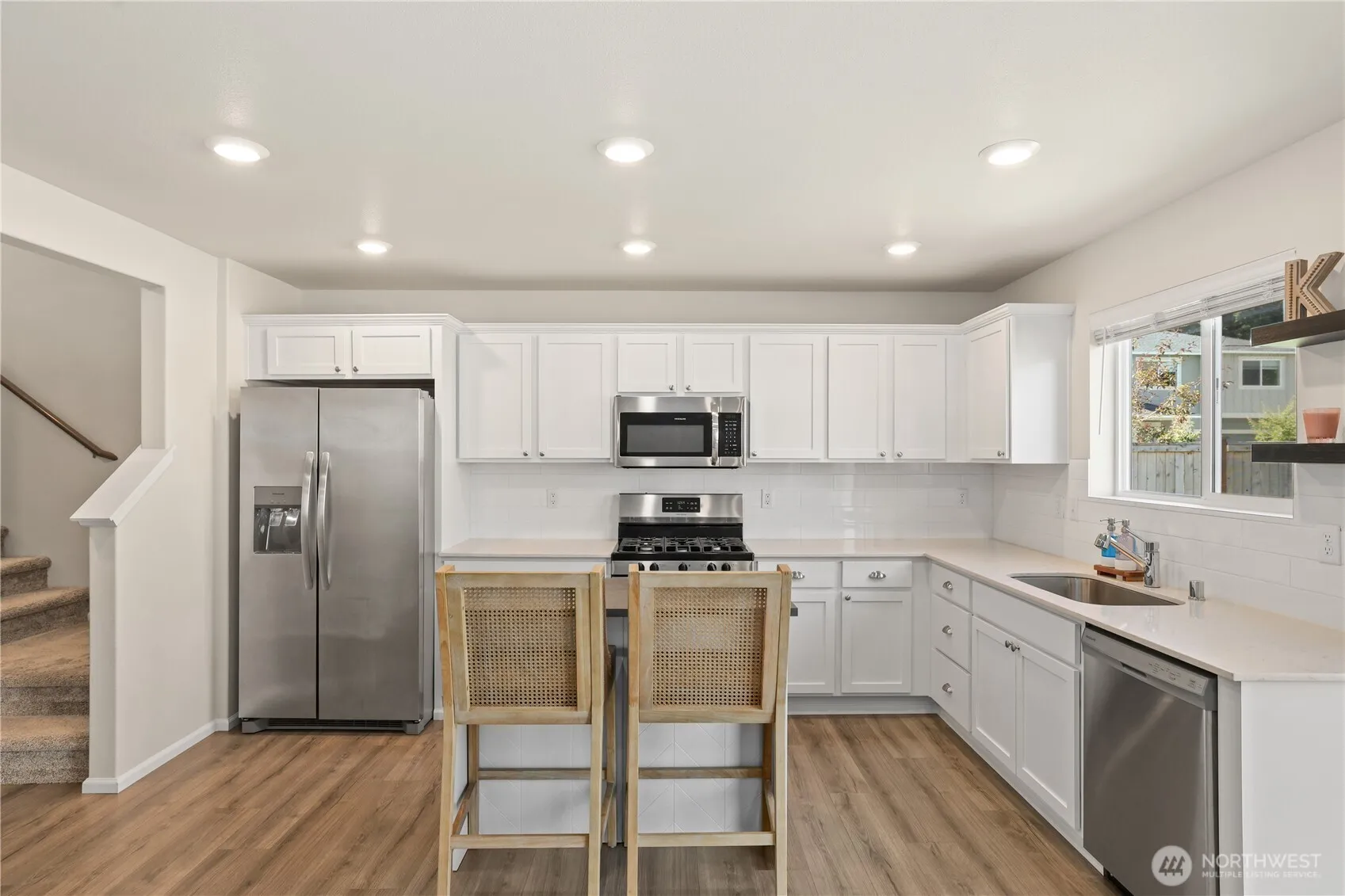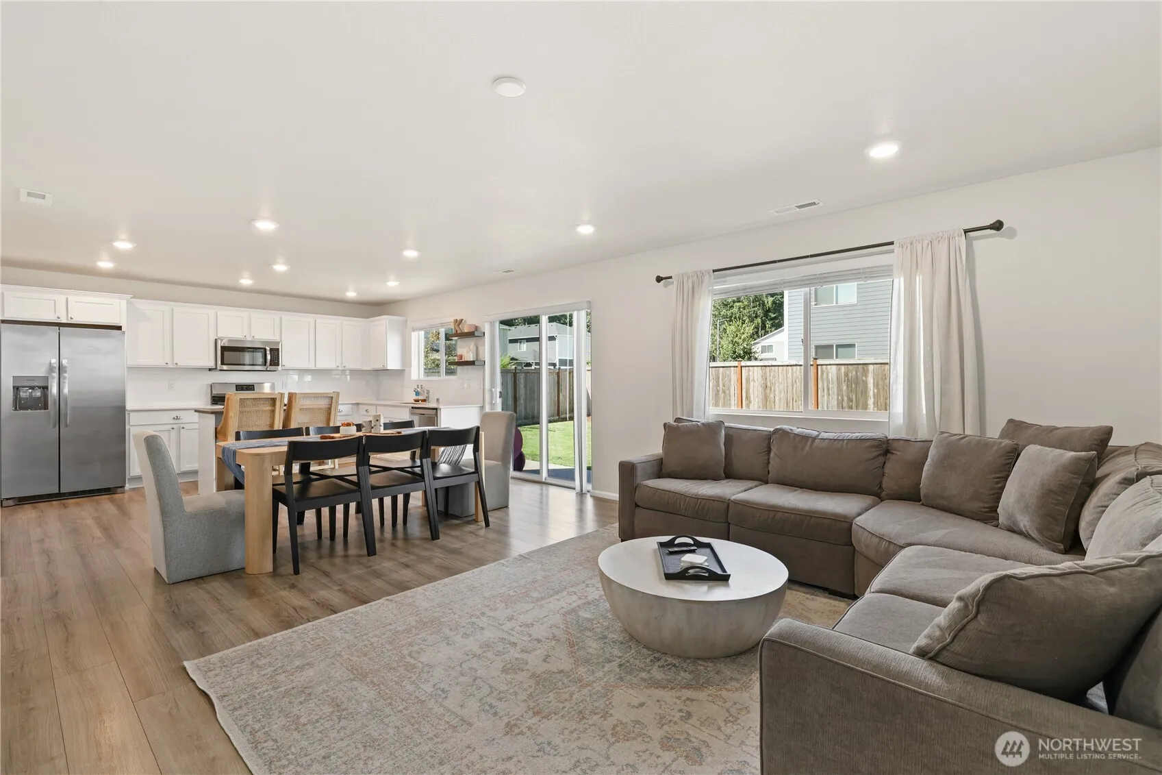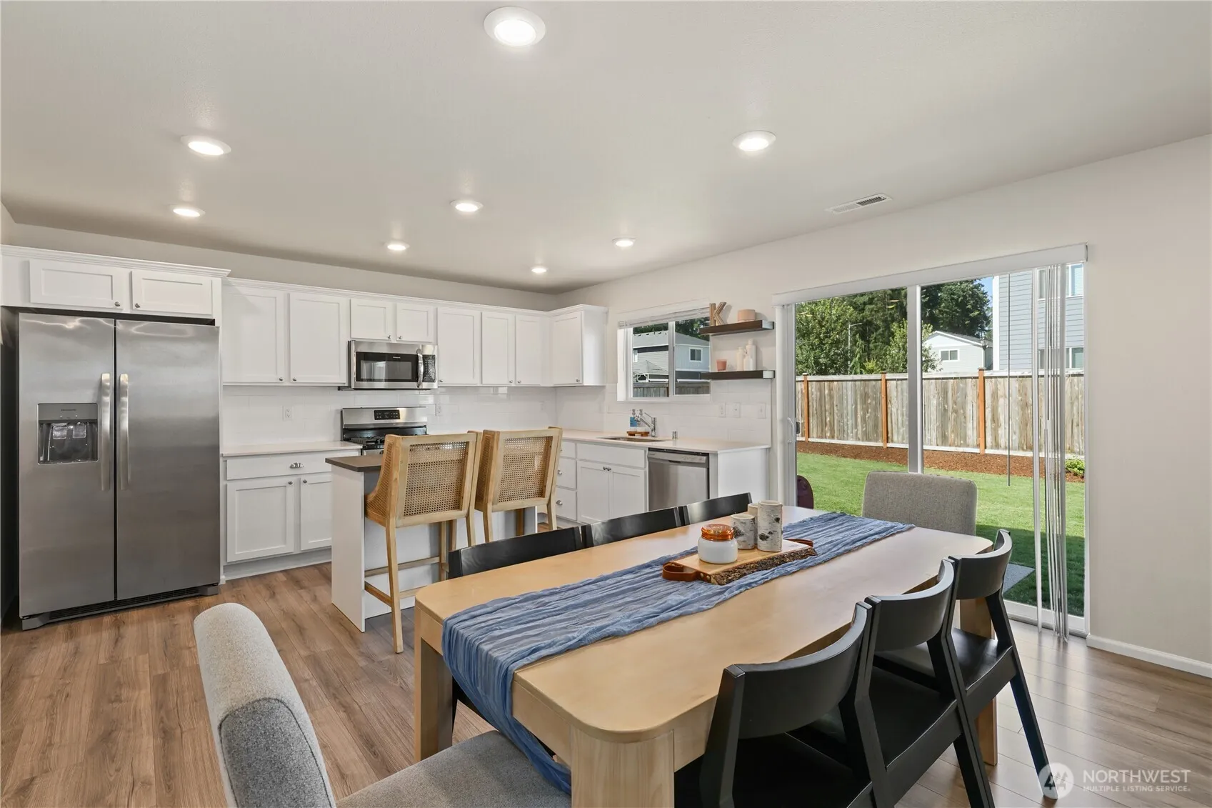Welcome to BETTER THAN NEW at Daybreak in Graham! Desirable CORNER LOT 3-car garage Chardonnay plan! This 3-bedroom, 2.5-bath home is designed for modern living and effortless entertaining. The open-concept kitchen flows seamlessly into the great room and out to a patio—perfect for year-round BBQs and gatherings. Upstairs features a spacious primary suite with a walk-in closet, private bath, and a versatile bonus room ideal for a home office, gym or playroom and two other bedrooms. Enjoy a beautiful fully fenced and landscaped yard, along with premium finishes, stainless steel gourmet appliances, walk-in pantry, 2-inch faux wood blinds. Prime location with easy access to both Orting and Puyallup.