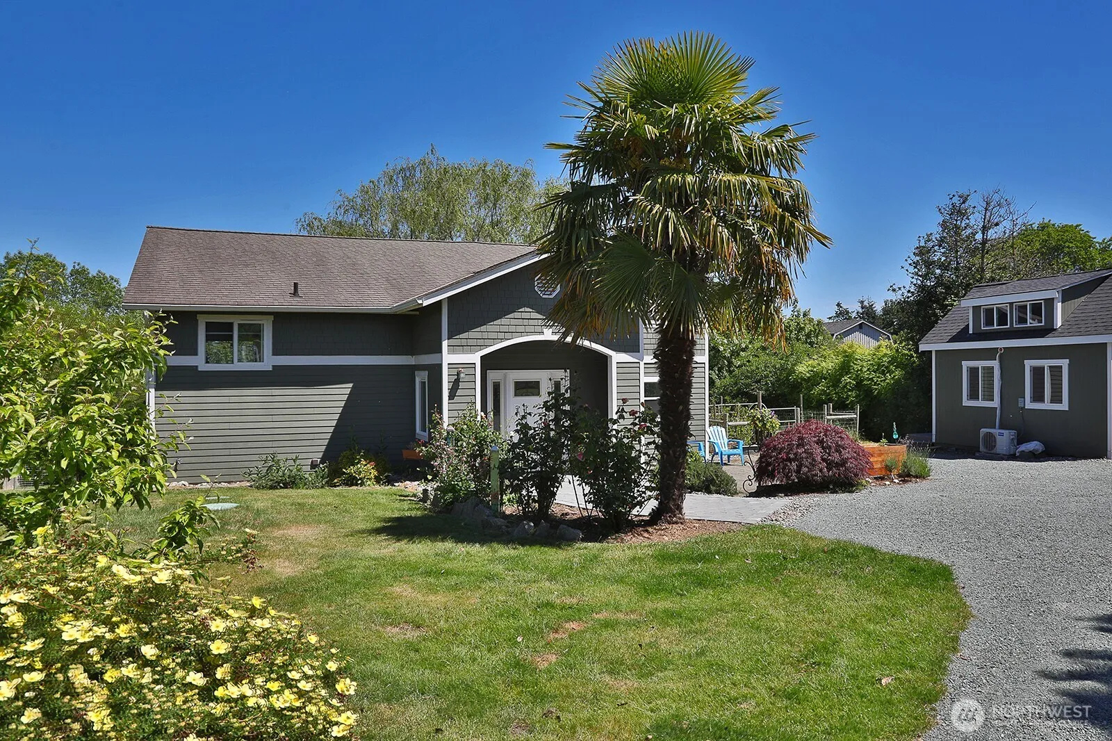 Welcome home to this 3 Bed, 3 Bath home perfectly located w/ lovely views of Mt. Baker & Hat Island. Tucked away off the street in a serene, private setting this is a commuter’s dream. Only minutes to the Ferry terminal and Clinton amenities (library, restaurants, grocery & brewery) this 2,061 +/- sq ft home is an ideal island getaway or fulltime retreat. Partially covered deck, w/ front & back porches create inviting outdoor spaces. Entertain with the bright, open concept kitchen, featuring SS appliances, quartz countertops, large pantry, & plenty of storage. Need a creative space? A separate outbuilding is ready for your home office or art studio. Neighboring Tax Parcel with great view potential is available for separate purchase.