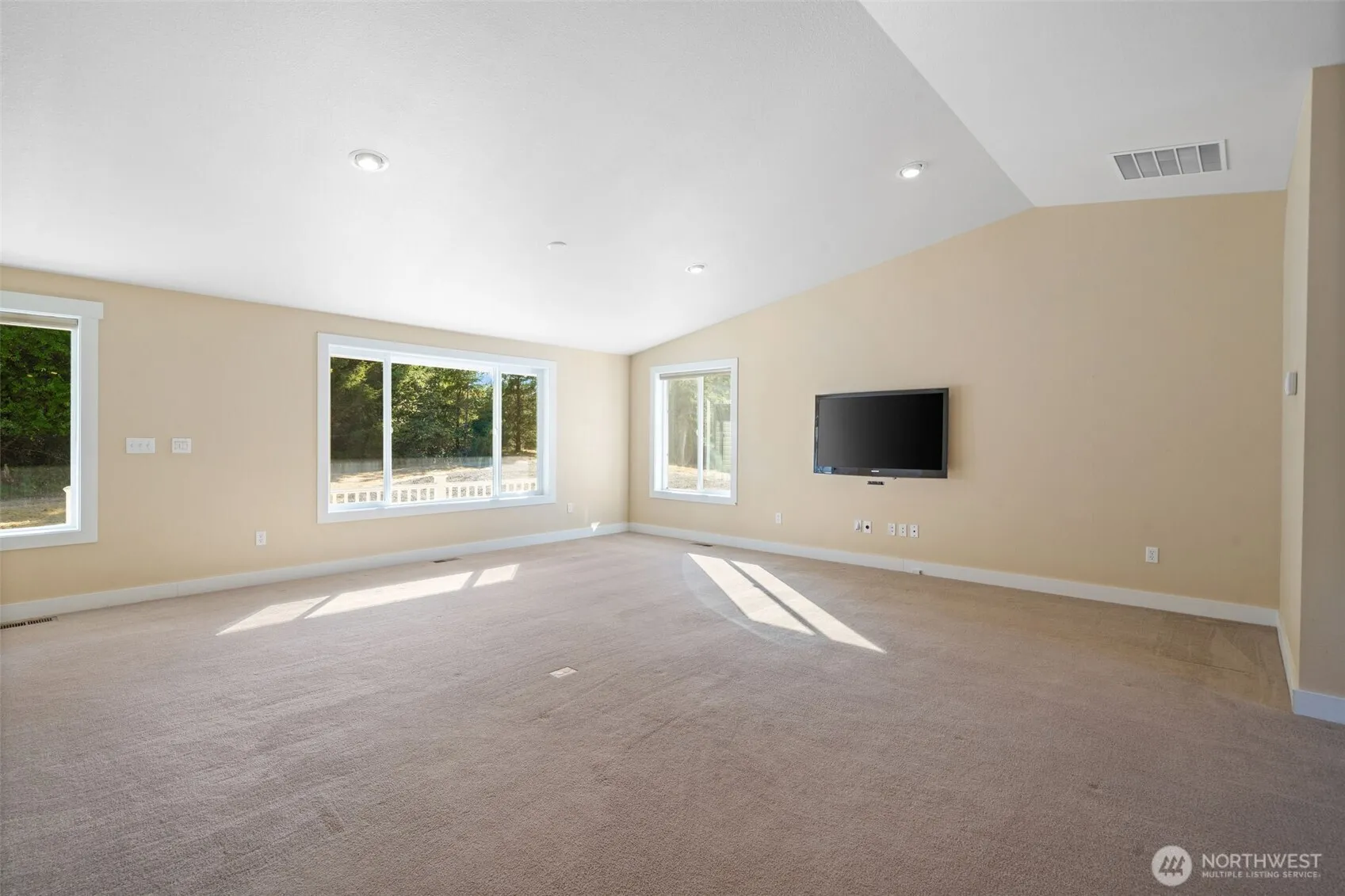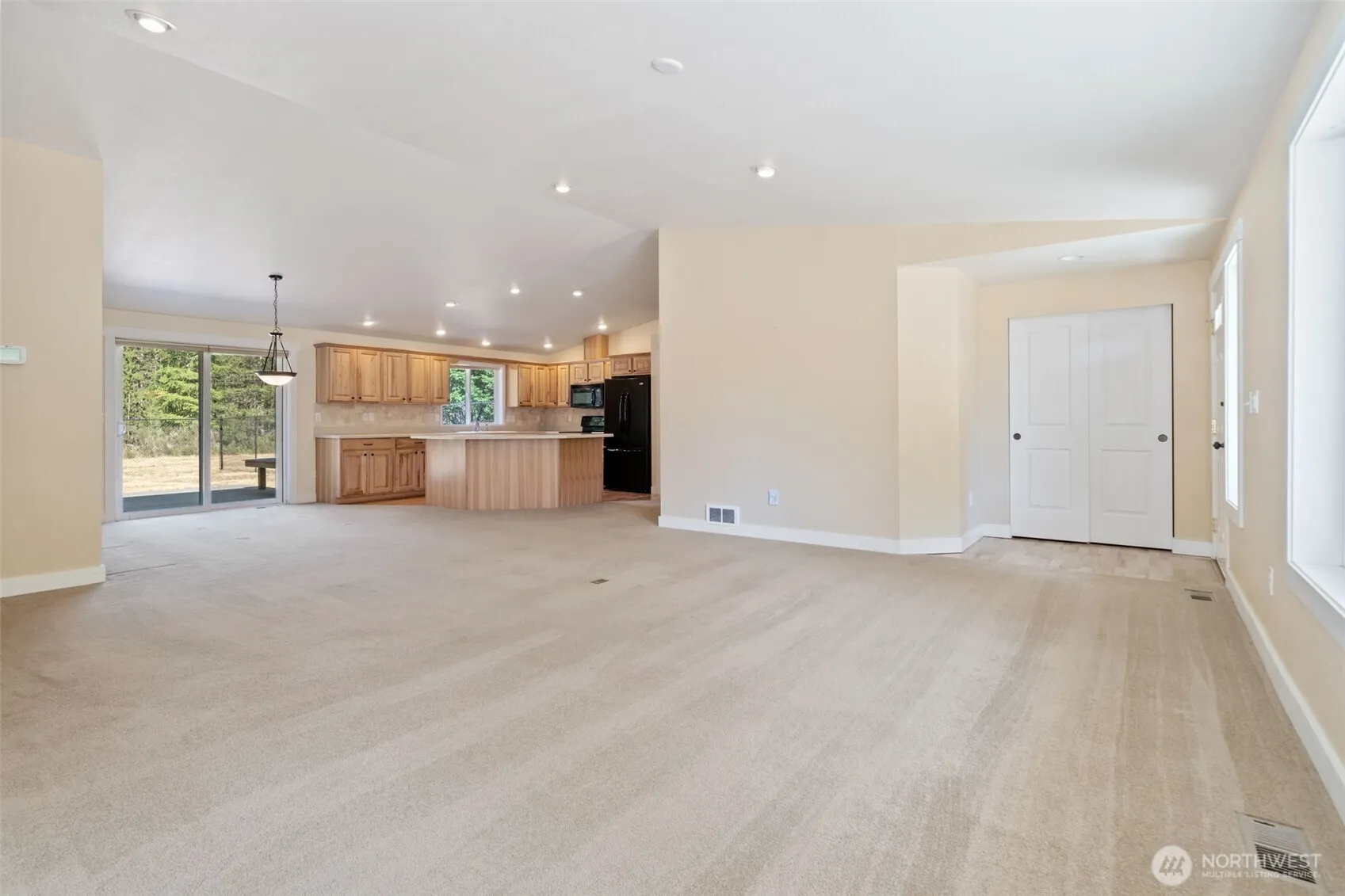 Nested in the woods with complete privacy, you will find this modern four bedroom rambler on 5 level acres irresistible. Over 2100 SF of living includes an open concept floorplan including vaulted ceilings, large custom island kitchen with all appliances, Corian counters and tasteful tile backsplash. Large primary suite with soaking tub and and custom tile shower. One of the bedrooms has been converted to an office but could easily be converted to back to a bedroom. Additional features are heat pump for heating and cooling, finished double garage, big utility room complete with modern washer and dryer, composite rear deck and a large back yard. This home is squeaky clean and move in ready. Just 7 minutes from town.