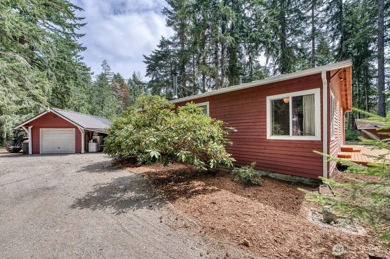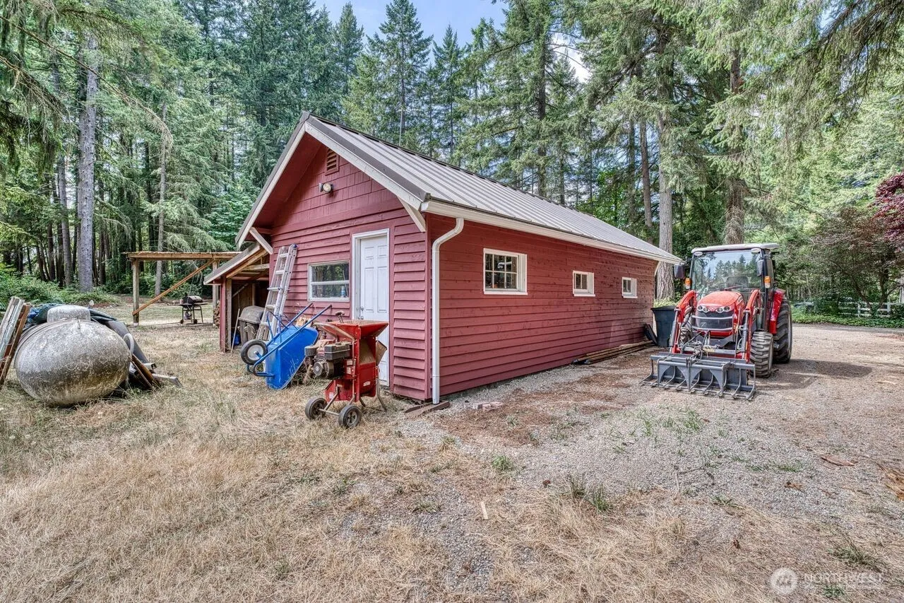 The cutest little farm in Kitsap describes this little slice of Paradise located desirable community of Olalla. When entering the property, you will be captivated by the towering Douglas Fir trees which are scattered throughout property, inter-woven with the beautiful level pastures, orchards and open spaces. The six-stall barn keeps the animals dry. The home has a beautiful deck to sit outside and enjoy Zen feeling this setting will inspire. The home is an efficient 2-bedroom 1 bath, that is cute as can be. The island kitchen is a great space to prepare the harvest from your farm. The living room is a comfortable space with a freestanding wood woodstove and ties nicely into the dining room, the art deco bath with claw foot tub is very cool