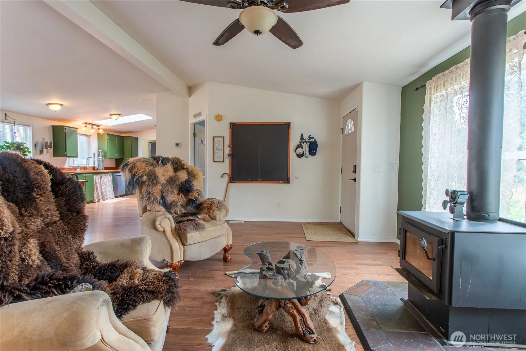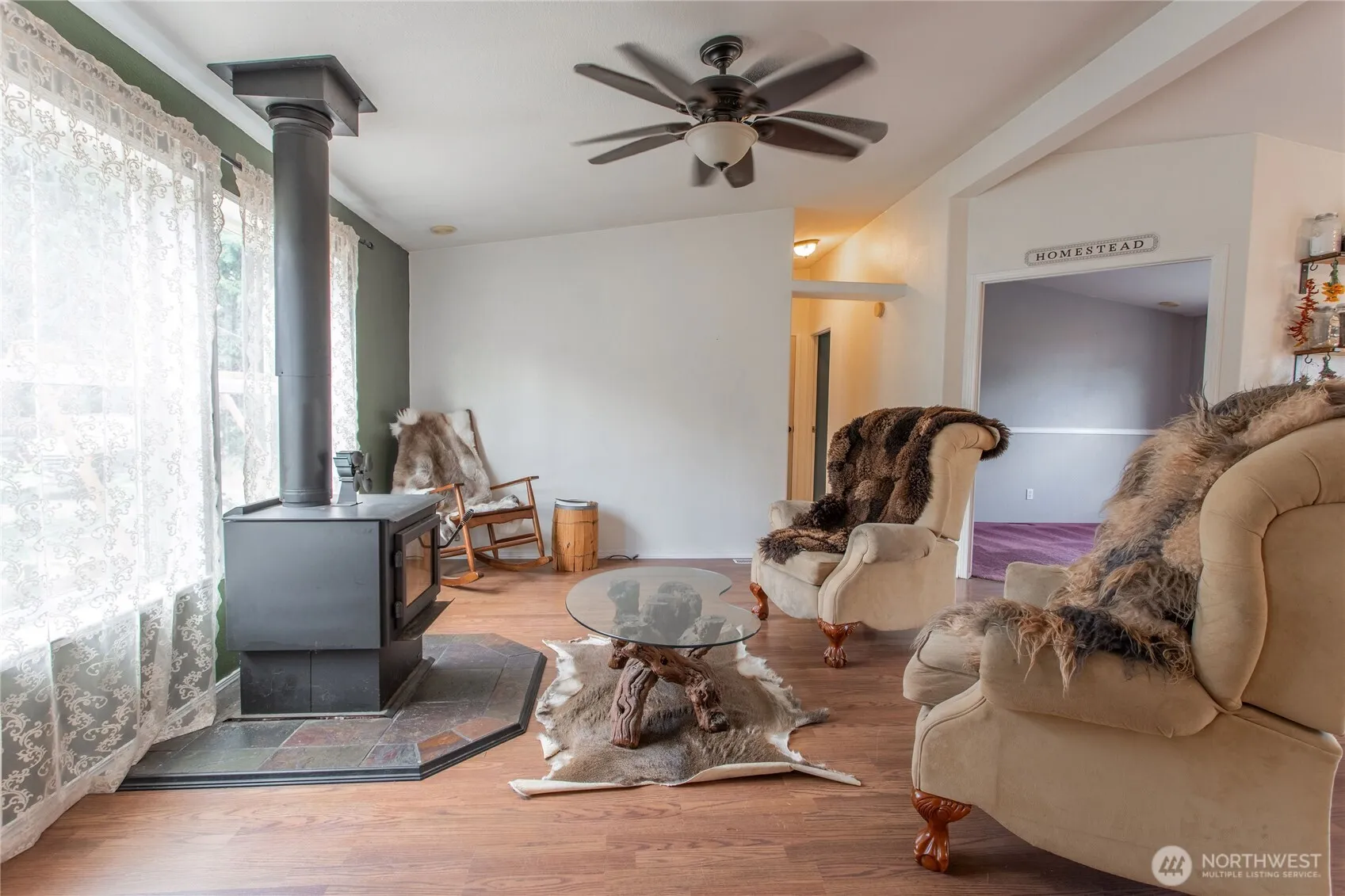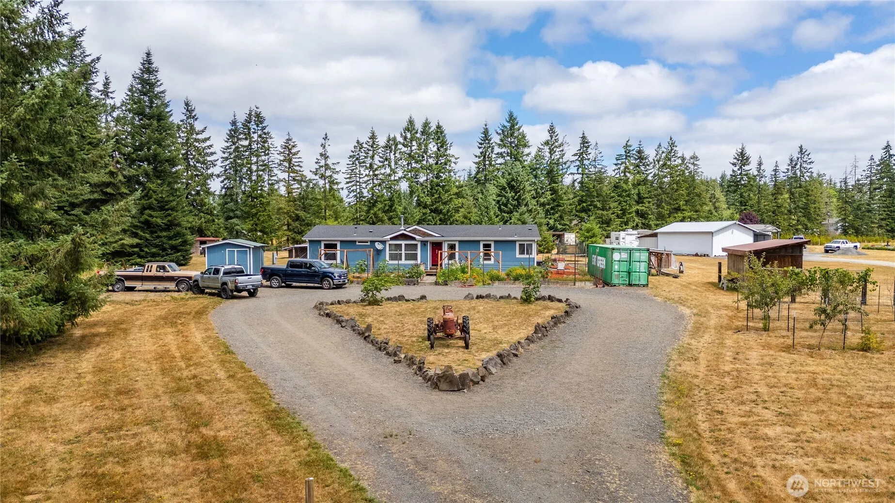 Turn-key hobby farm! At just over 2.5 acres, this farm is manageable, yet functional. Inside the house, you’ll find an open concept with the primary suite on one side of the home and spare rooms on the other. Wood stove makes a cozy living room. Large primary suite with a bathroom has bonus space so bring your imagination. Two spare bedrooms offer versatility. Bonus room is the perfect home office or den. Do you want to raise livestock and grow your own vegetables? This yard already has raised garden beds and plenty of fruit trees. Head out to the fenced pasture where a barn and several sheds offer dry storage. Chicken coop is already in! This place has it all, not to mention the brand new roof and heat pump!