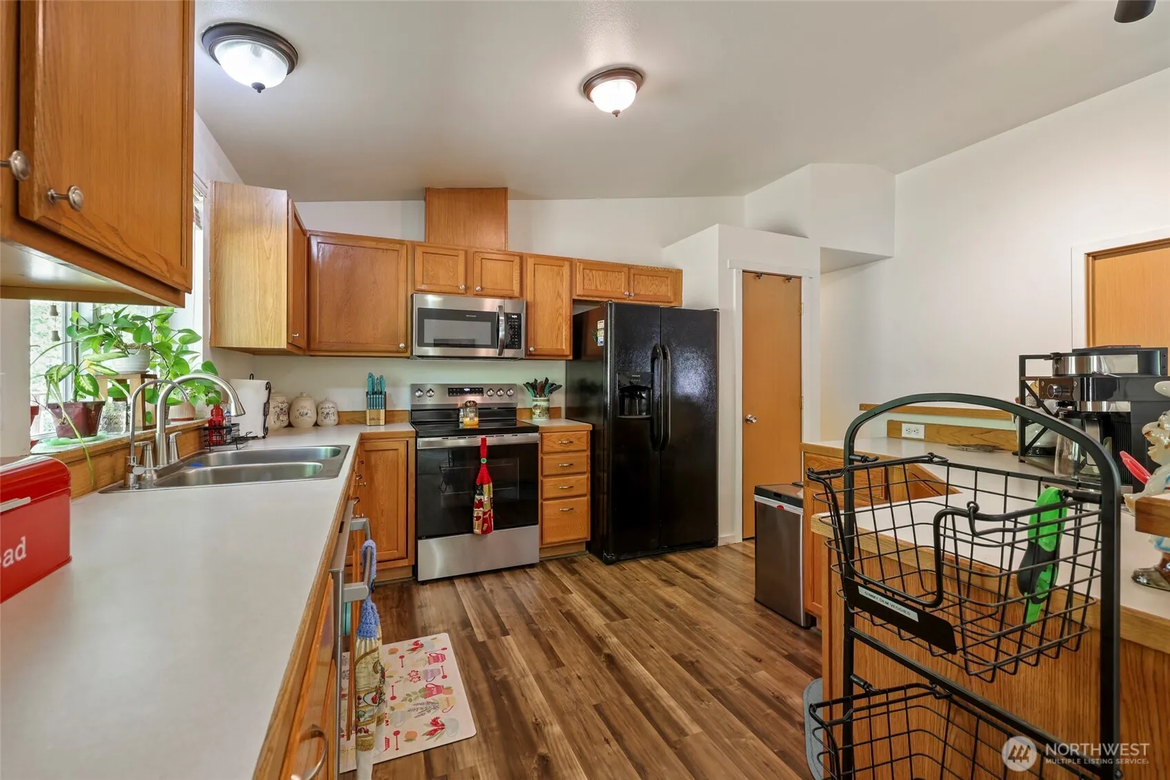 This charming 3-bedroom, 2-bath single-story home includes a versatile den/office and features vaulted ceilings and an open floor plan that creates a spacious, airy feel. New LVP flooring in the kitchen and dining room. Cozy up by the wood-burning stove or step outside to enjoy the private setting with a new front deck. Property even has a seasonal pond with a hiking path around it. Heat pump for those hot summer days keeps you cool! The property also offers RV parking, a 2-car garage, a fenced dog run, and a chicken coop—perfect for hobby farming or pet lovers. Tucked away for ultimate privacy yet close to everyday conveniences, this home is a rare find!