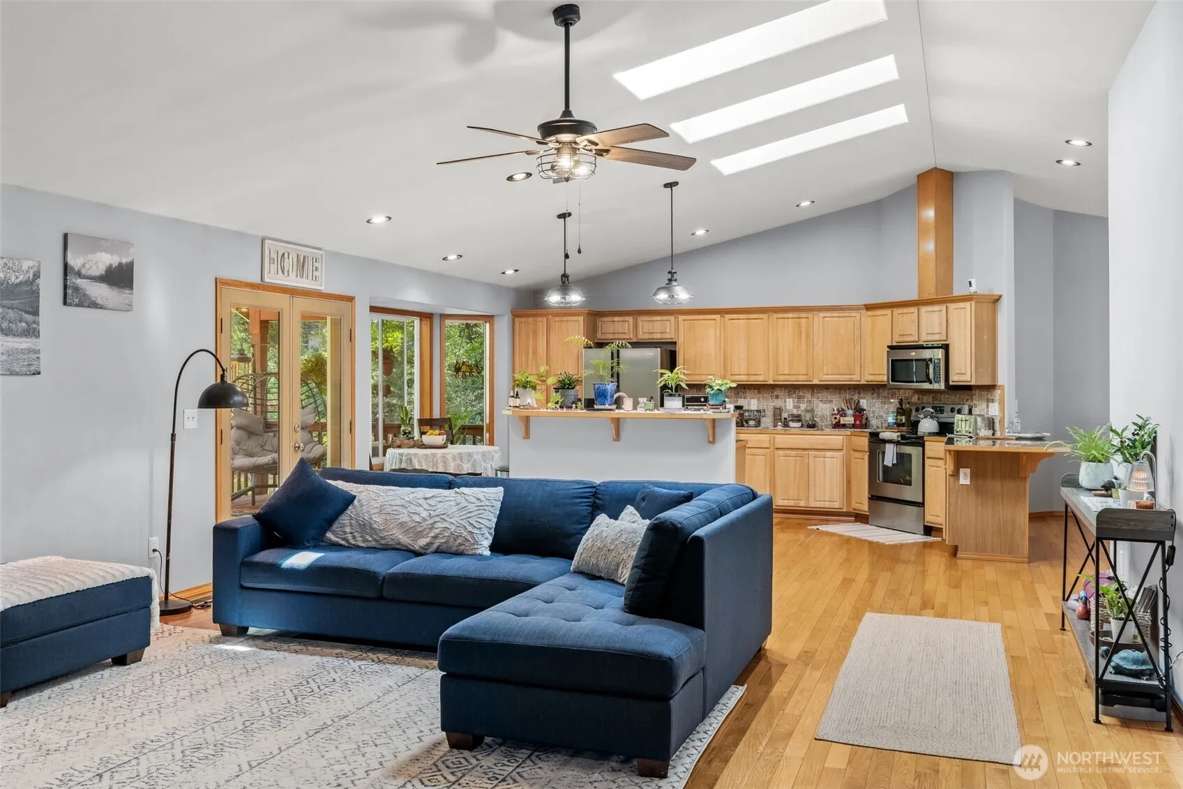 Beautifully maintained 3bed/2bath rambler blends comfort, style, & convenience. Vaulted ceilings, skylights, & hardwood floors create a light-filled, open atmosphere, while the cozy fireplace & flexible den/office add function & charm. The kitchen offers generous storage & flows out to a sunny deck—ideal for summer bbqs or gathering w/ friends. Retreat to the primary w/ luxurious 5-piece bath & jetted tub, your personal place to unwind. Year-round comfort w/ A/C! Finished 3-car garage includes EV charging + clearance for RV/boat parking. Set on a fully fenced 0.32-acre lot, enjoy your own garden space plus private community access to three Big Bend riverfront spots. This home has it all—don’t miss your chance to make it yours!