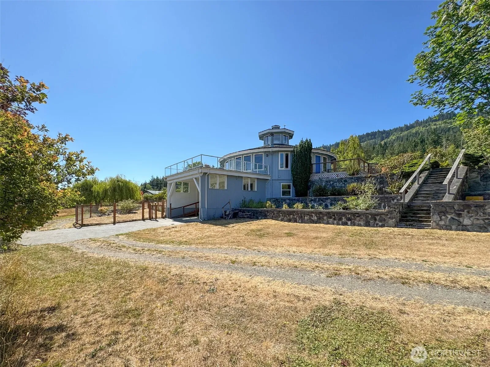 Check out this one of a kind, unique property in beautiful Happy Valley! 3 bedrooms, 2.5 baths, den/office, w/a detached garage, & a HUGE shop, all on 2.28 acres. This custom home’s singular design is visually striking & offers excellent views of Happy Valley, Bell Hill, & a direct line of site to Victoria & the Strait of Juan De Fuca. 3 different view decks, one of which is gigantic! The main floor has the kitchen, laundry, vaulted living area, & the primary bedroom & bath, as well as a spiral staircase “crows nest”. Daylight basement w/ 2 bedrooms, 2.5 baths, a den/office & a large living area & attached carport. Multiple terraced & fenced garden areas all with mature landscaping, heirloom roses, figs, apples, cherries, plums, & berries.