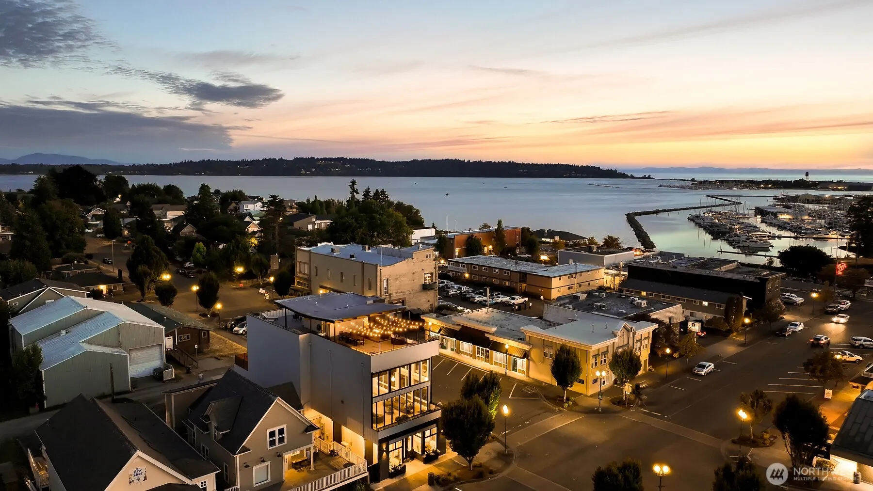 One of one. Striking contemporary mixed use building in the heart of the seaside town of Blaine. Intentionally designed to maximize the natural light & breathtaking views, run your business or rent out the 1,050 sq ft street level commercial space just steps from your upscale 4,841 sq ft home. The residence lives like a modern single family 3 bedroom home & features an elevator, 40’+ atrium with floating stairs, private 3 car garage + massive rooftop deck (1 of 4) with 360• views of the bay, mountains & White Rock city night lights. Open concept design highlighted by wall of stacking pivot glass doors, 20’ ceilings & a stunning floor to ceiling stainless fireplace. Strategic location 45 minutes from Vancouver, BC & 90 minutes to Seattle.