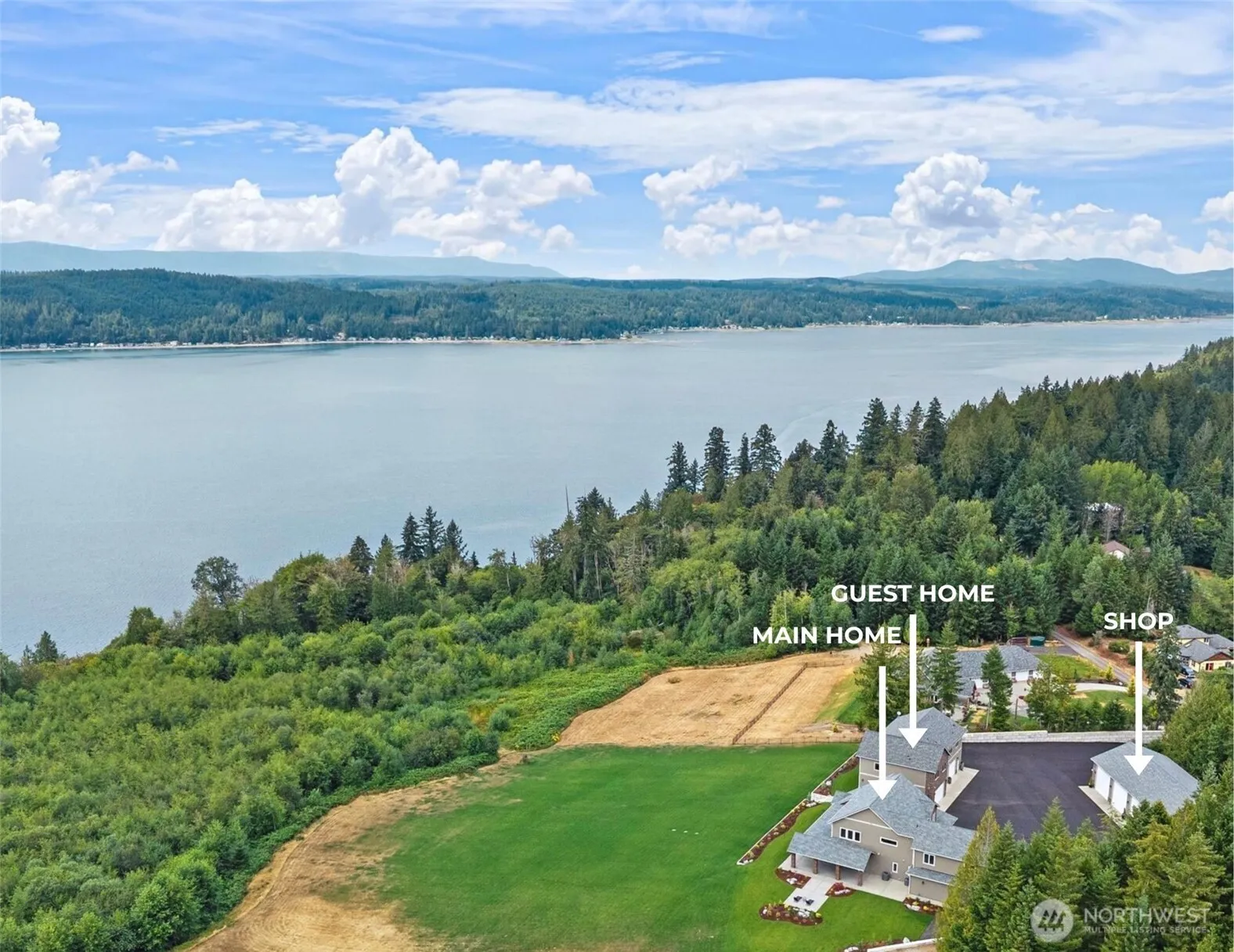 Unparalleled craftsmanship & sweeping VIEWS of the Olympic mtns & Hood Canal! Custom 5acre estate offers lux multi-gen living w/ 3 distinct structures. MAIN HOME ft. soaring 20ft ceilings, wideplank hardwoods & showstopping views throughout. Kitchen w/ Viking appliances, wet bar, Cambria counters & walk-in pantry w/ commercial-grade fridge/freezer. Primary offers spa-inspired 5pc bath w/ towel warmer & walk-in closet. 1bd+office GUEST HOME w/ 3bay garage (MORE PHOTOS AVAILABLE). 3000sf fully insulated shop w/ 14ft doors. 1000+sf covered outdoor entertaining space surrounded by new professional landscaping. Mins from waterfront, hiking trails, & recreation at Alderbrook, Mason Lake & Olympic National Forest – PNW living at its most refined!