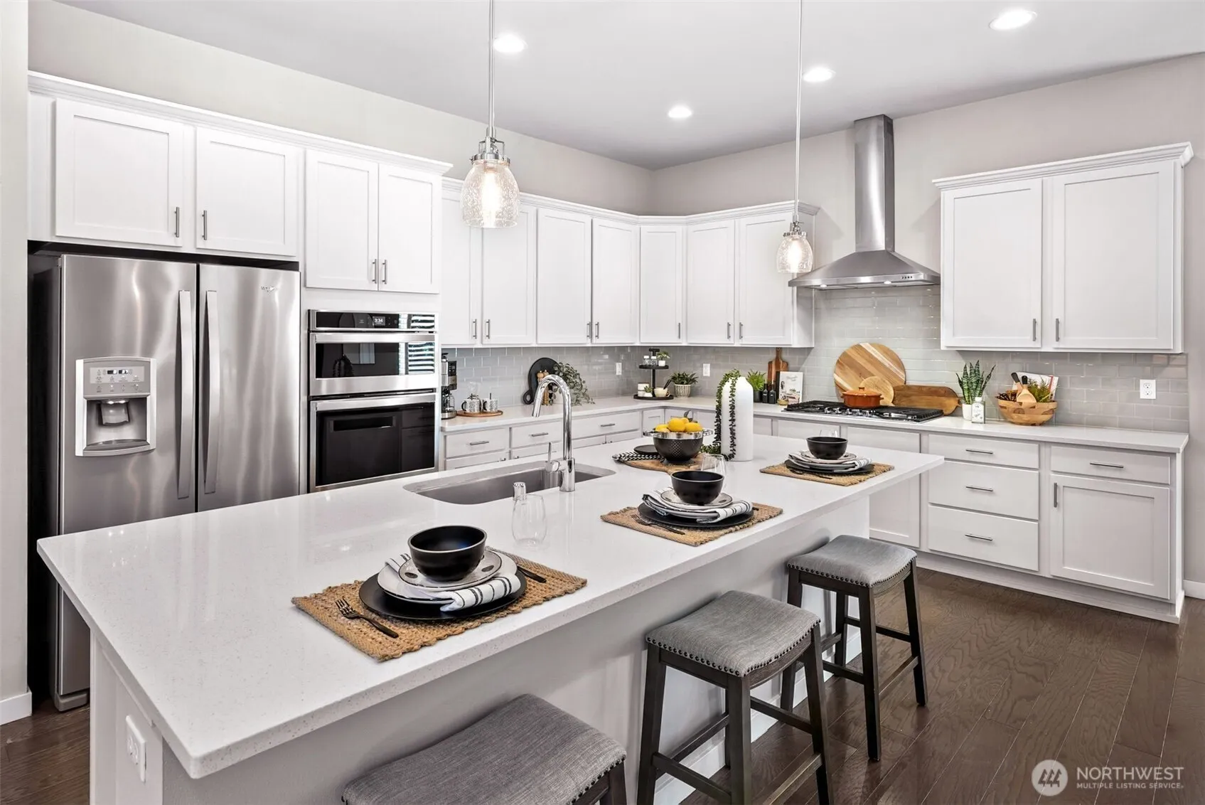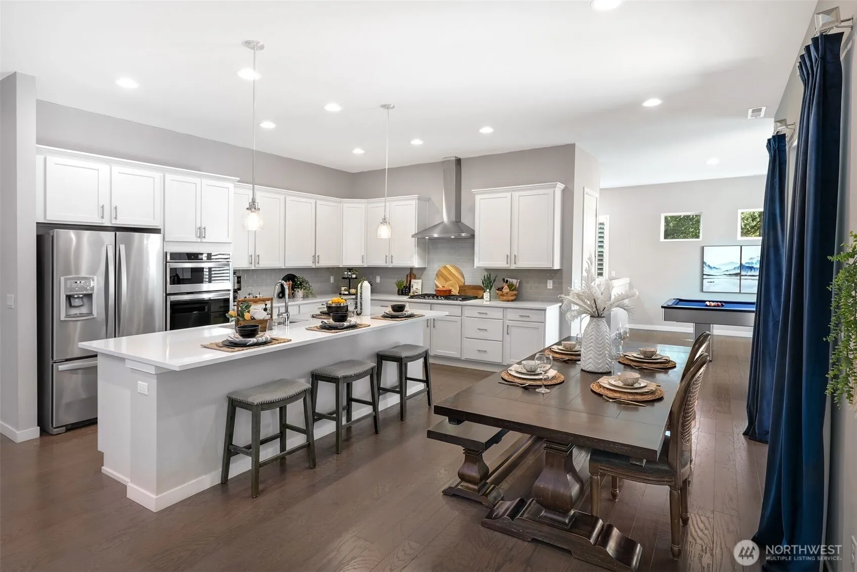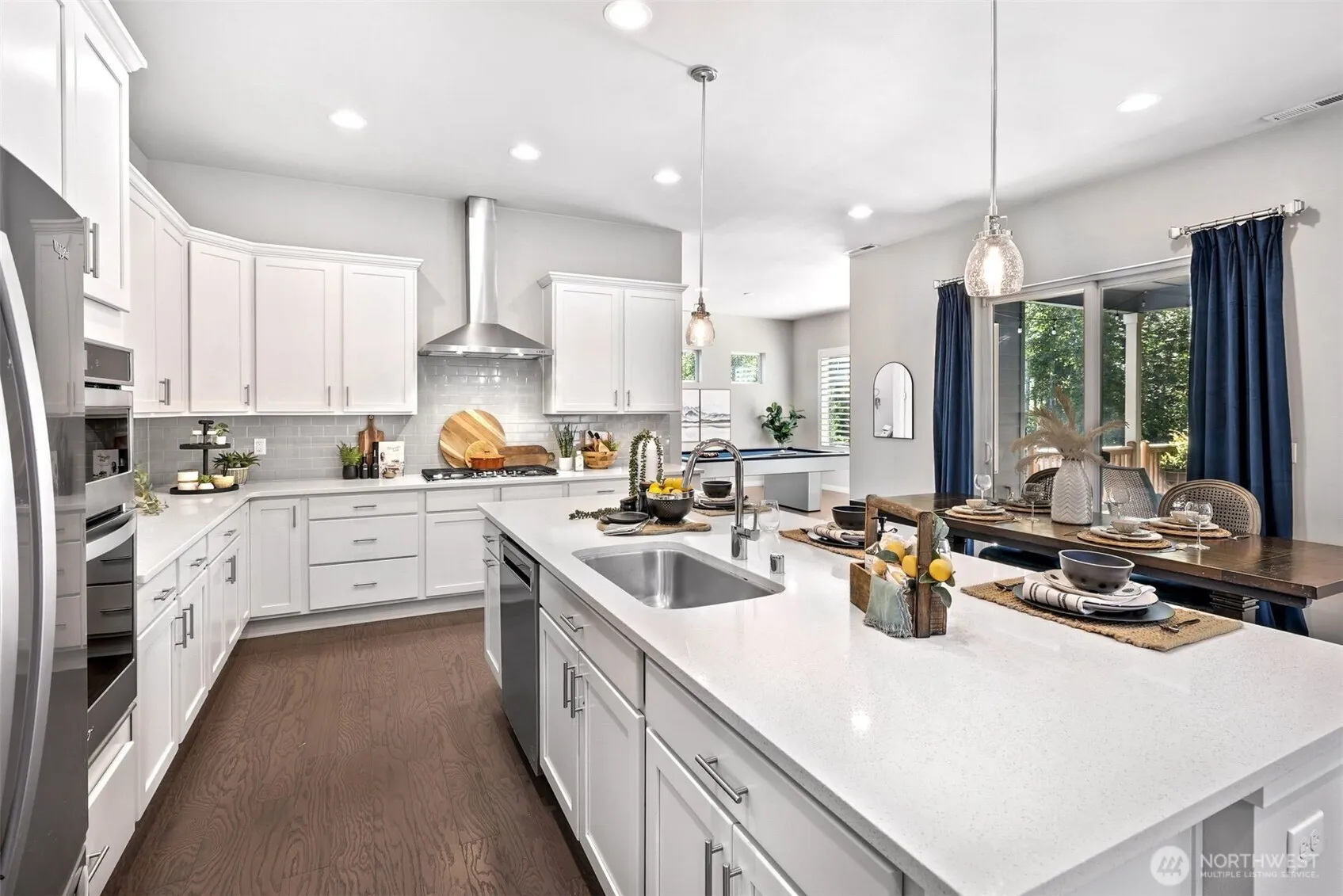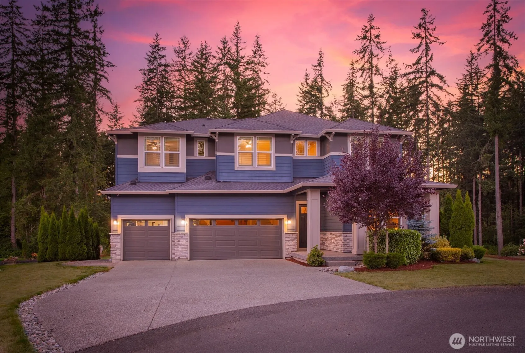 This Lake Stevens home is tucked away on a quiet cul-de-sac in the sought-after Glenmore neighborhood! Set on a large lot backing to lush green space, the private backyard becomes your personal retreat ideal for year-round entertaining. Step inside to a bright entryway and discover a flexible main floor guest suite with a private bath. The open-concept main living area flows effortlessly into the outdoors. At the heart of the home, the kitchen shines with a generous center island. Upstairs, the expansive primary offers views of the peaceful backyard & five-piece en-suite bath. Upstairs includes a 2nd primary bedroom, two additional bedrooms, a bathroom, & a versatile bonus room. Attached three-car garage & extra parking for a RV or a boat!