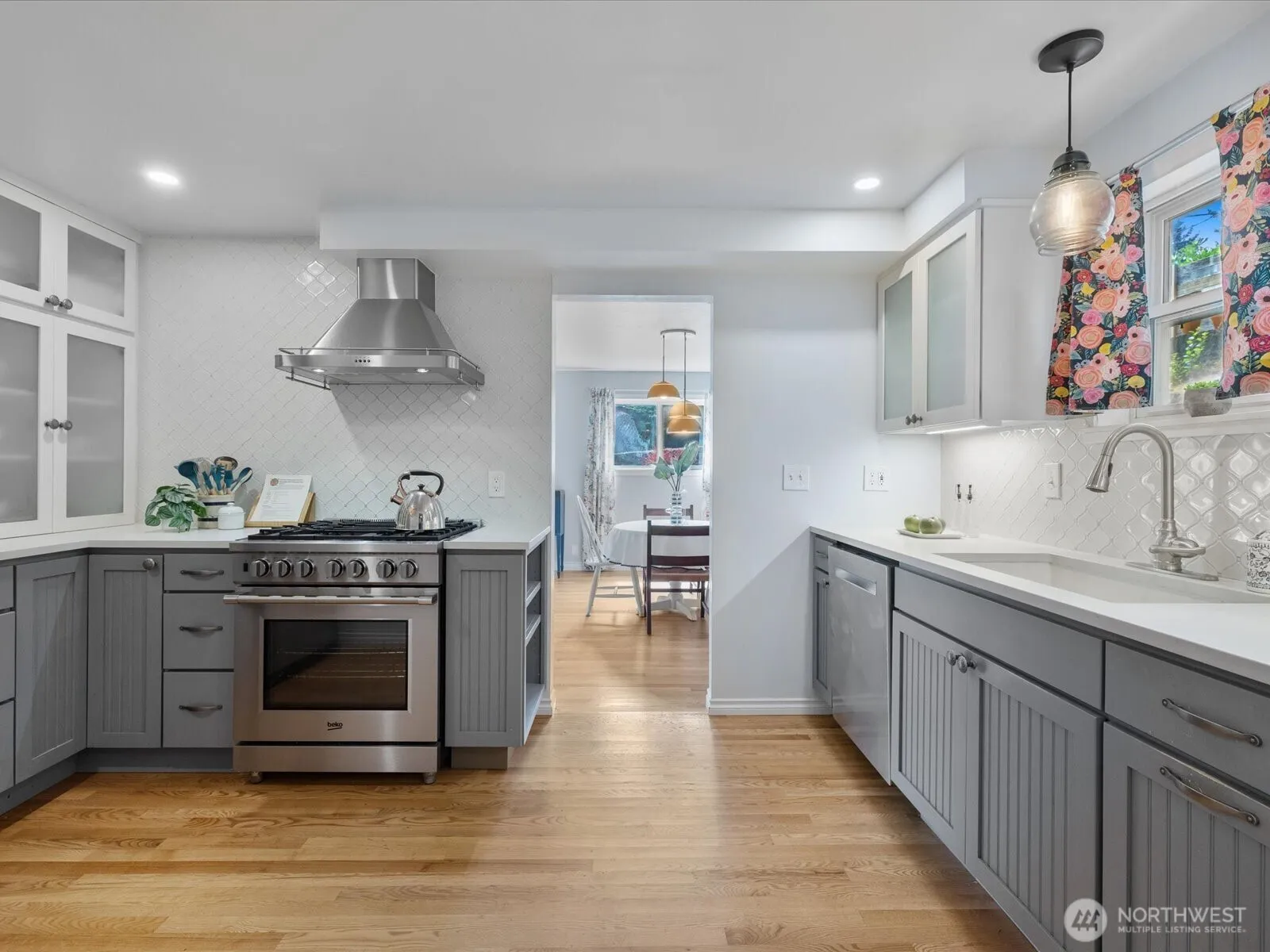 Welcome home to this Shoreline dream! Beautifully remodeled in 2019 – no room left untouched; gorgeous hardwoods gleam from inviting entry & living, spacious dining, & stunning kitchen w/thoughtful use of space, chef’s dream appliances, lovely finishes & new lighting throughout. 2 main level bedrooms, fully remodeled bath + efficient mudroom to back deck – enjoy the park-like, lush fully-fenced yard w/morning coffee or to entertain! Primary suite upstairs w/cozy built-ins for extra storage & remodeled 3/4 bath, + charming bedroom/office. Oversized chevron-brick driveway for tons of parking on dead-end street in quiet neighborhood. Shoreline schools, 15min walk to Shoreline Light Rail, easy access to I-5, & mins to everything. Do not miss!