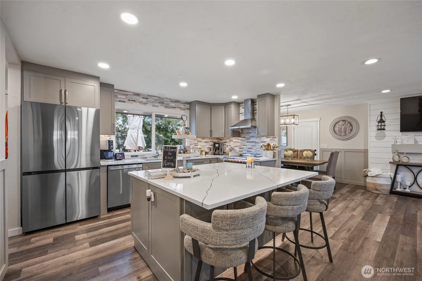 Beautifully remodeled 6-Bed, 3-Bath Home on Lakeshore Drive! This fully updated home offers modern comfort & style inside & out. Exterior highlights include fresh paint, new siding w/ stone veneer accents, 2 outdoor entertaining spaces, a vented greenhouse, raised garden beds & an oversized fenced double lot w/ mature landscaping, ugs & drip system. The massive 3-car garage fits up to 4 vehicles, plus there’s additional RV/boat parking. Step inside to an open-concept living area featuring updated flooring, a cozy fireplace & a custom kitchen w/ ss appliances, an oversized island & durable hard-surface countertops. Upgrades continue w/ enhanced electrical, a wet bar for entertaining, a spacious primary suite offering a walk-in tiled shower.