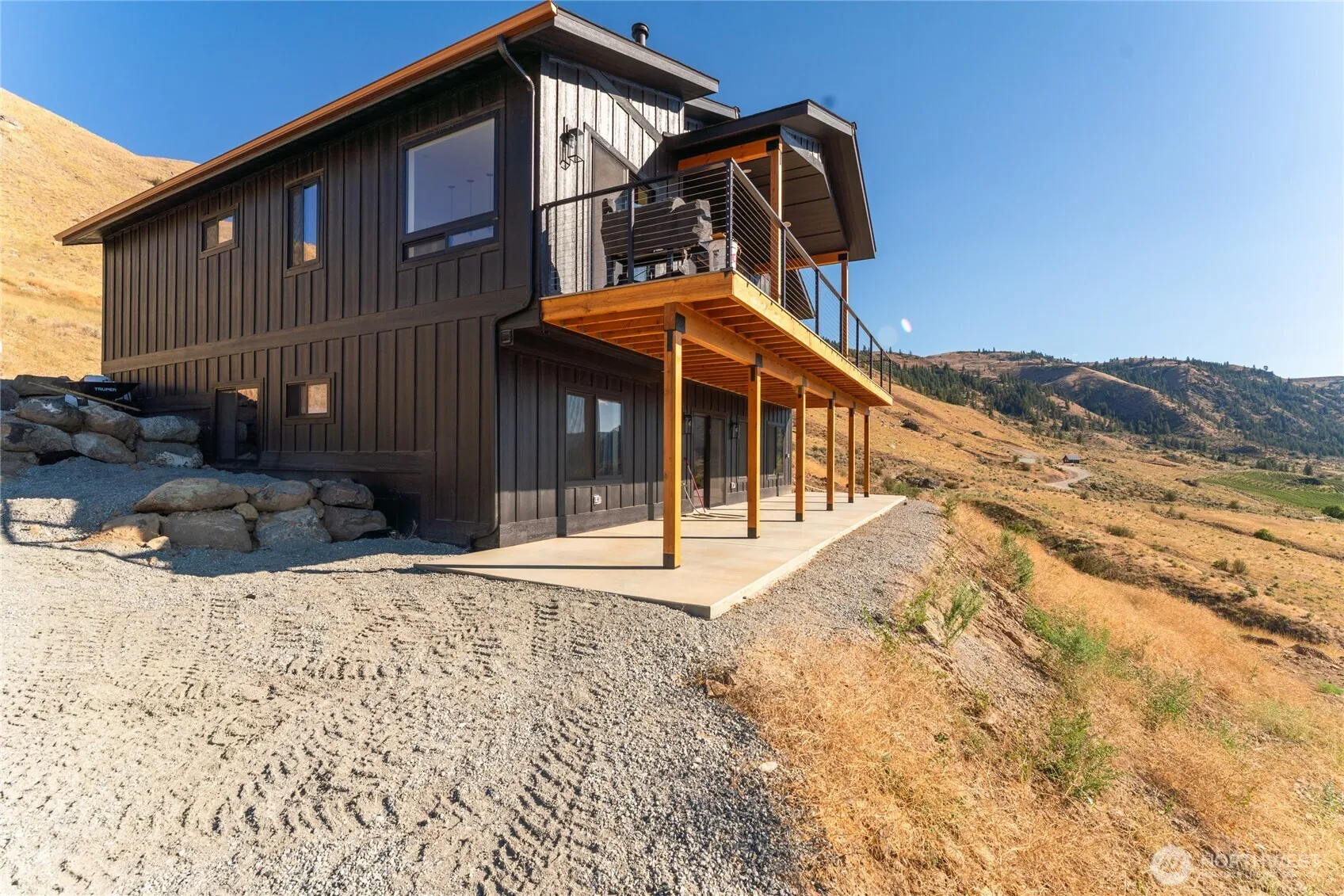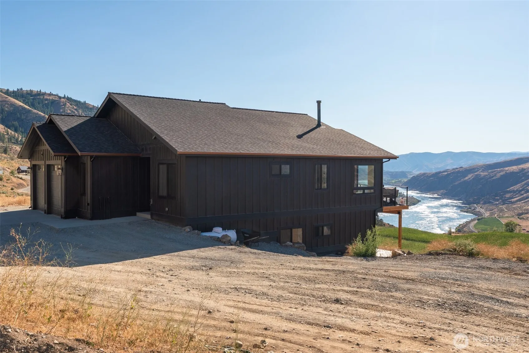 Stunning new construction home on 20 private acres w/ unbeatable Columbia River & mountain views! This shy 2,500sqft, 4 bed, 3 bath home boasts high-end finishes throughout including quartz counters, LVP flooring, tile showers, stainless appliances, & radiant heated basement floors. Designed to live entirely as a rambler w/ spacious guest quarters plus family room below. Heated garage, RV hookup, patio heaters, hide a hose vacuum, & stubbed for hot tub, pool, sauna, & generator. Property is subdividable, has a strong producing 20 GPM private well, & short-term rentals is an option(buyer to verify). Located 15 minutes to downtown Chelan & short drive to Beebe Park & boat launch on the Columbia! (Shown by apt only accompanied w/ a realtor).