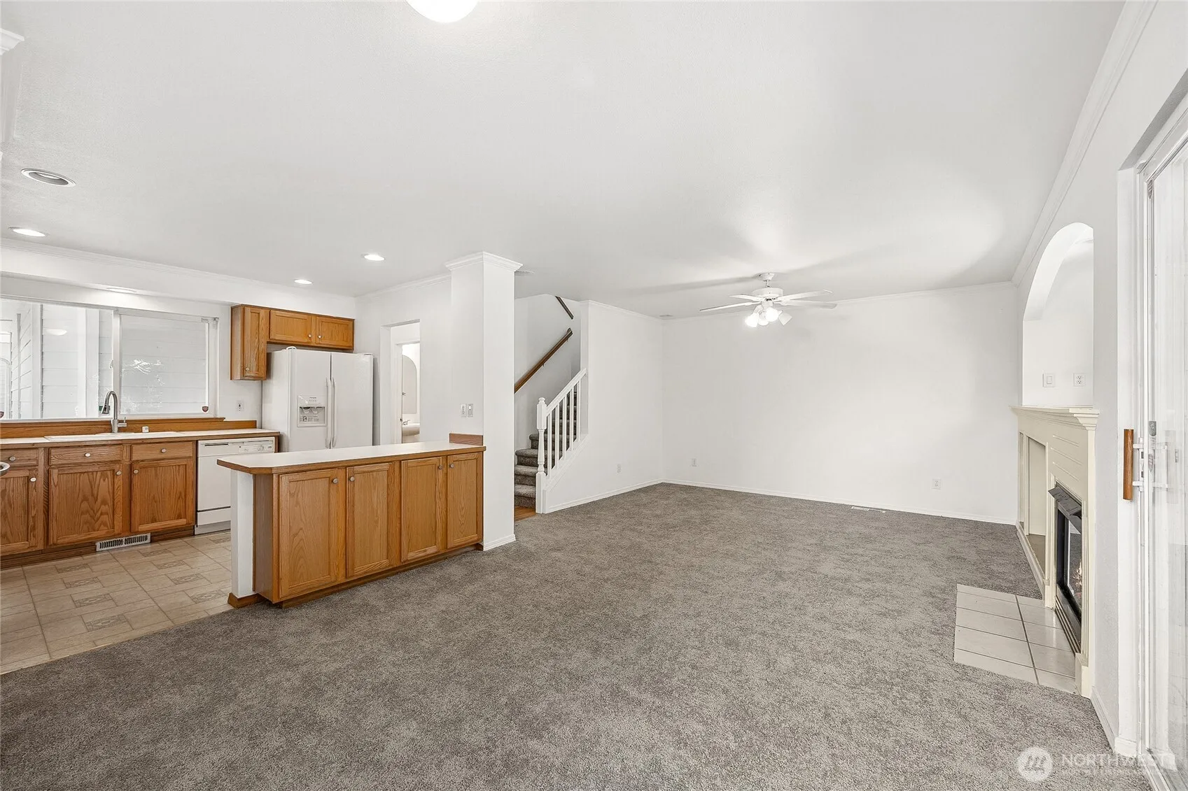 Welcome to this beautifully updated 3-bedroom, 2.25-bath townhome tucked into the serene and desirable Glen Eagle community! This move-in ready home features fresh interior paint and trim throughout, brand-new carpet, and some newer appliances. The open, bright kitchen flows into a spacious living room with vaulted ceilings, built-in shelving, and a cozy gas fireplace—perfect for relaxing or entertaining. The generous primary suite offers comfort and privacy, while two additional bedrooms provide versatile living options. Enjoy the peaceful greenbelt setting from two private decks, including a brand-new Trex lower deck that’s just a year old. With a 2-car garage and front yard maintenance included, this home blends comfort and Style.