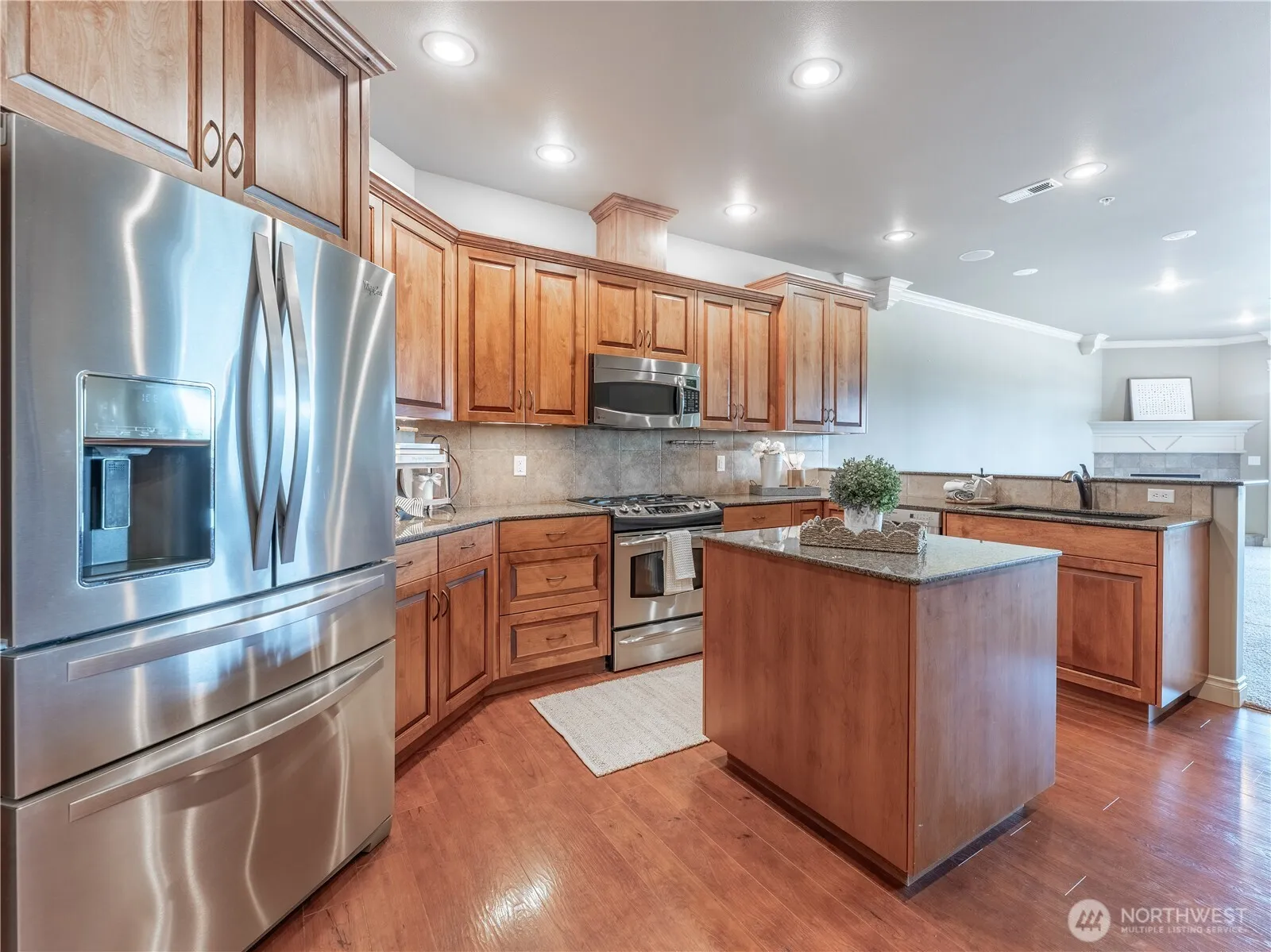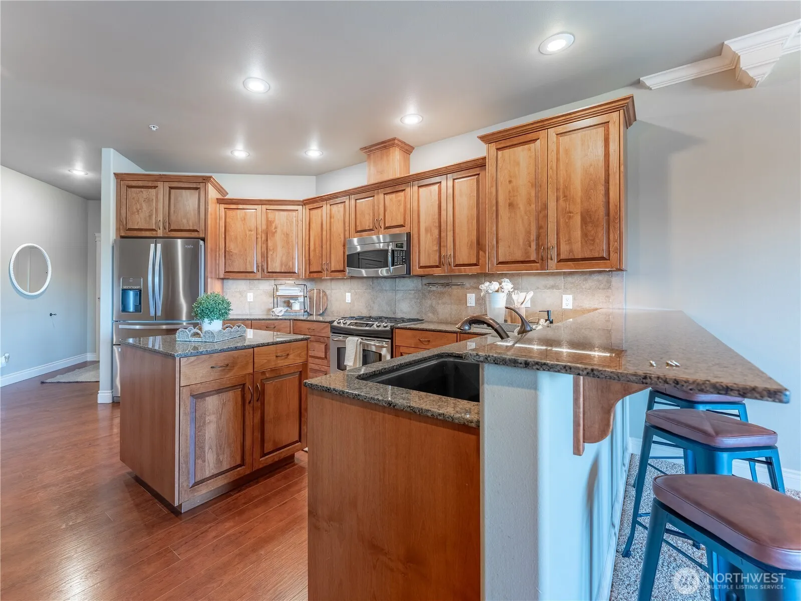 End unit, top floor, amazing views! This beautiful, secure and spacious three-bedroom condo allows for carefree living. Enjoy cozy nights in the great room, featuring a gas fireplace and stunning mountain views. The kitchen is a cook’s dream, equipped with a gas cooktop, an eating bar, an island, and stainless steel appliances. The primary suite is separate and boasts a spacious, luxurious bathroom and a walk-in closet. The bathroom features tile flooring and a tile shower. Relax on the deck, which is perfect for morning coffee or gatherings. There is plenty of storage available in the four car garage. Access the third floor by stairs or take advantage of the convenience of the elevator. Don’t miss out on this view property.