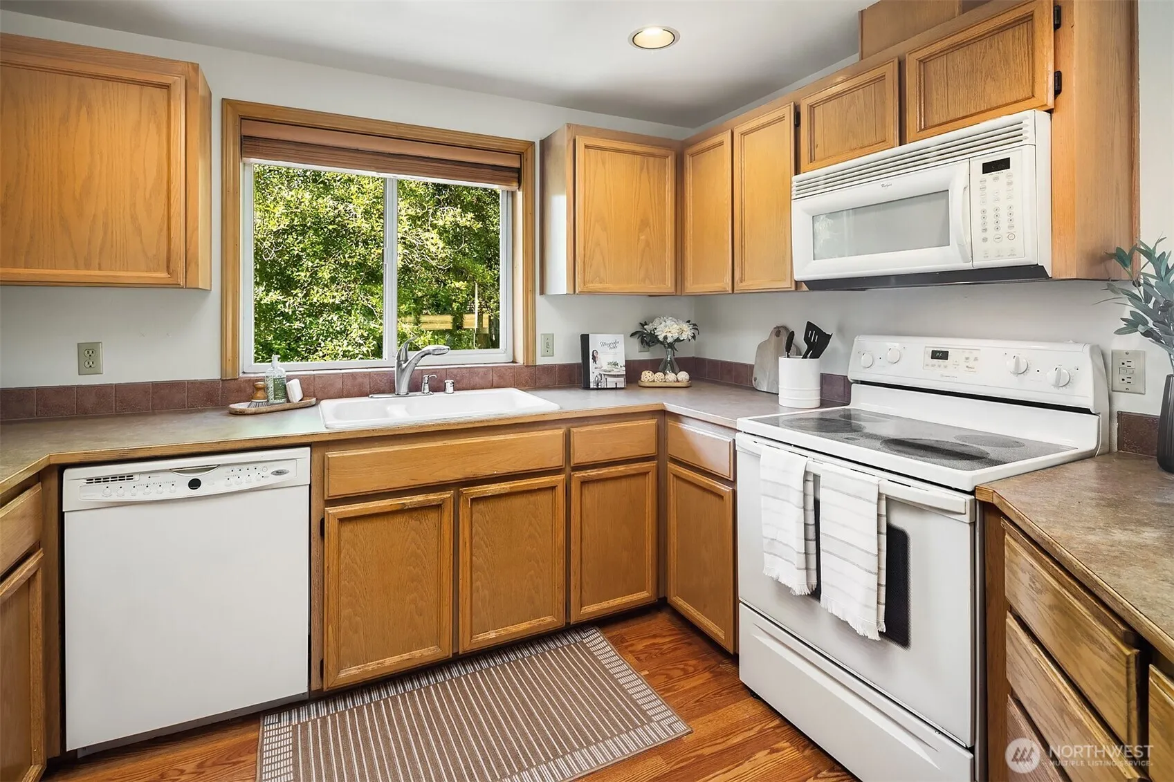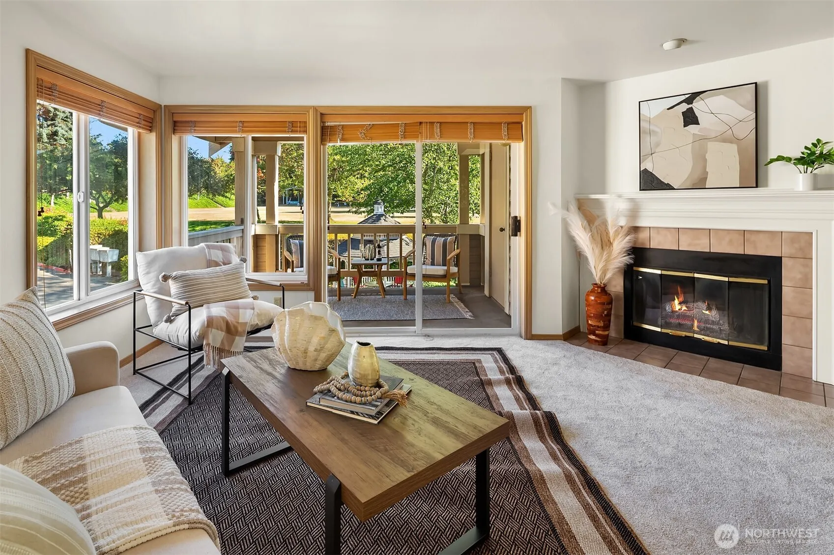 Nestled next to City Park in Downtown Edmonds, this condo lives like a house. Perched on the top floor overlooking the community Gazebo with City Park as the backdrop. Enjoy your expansive South facing deck, while listening to evening summer concerts, ball games and joyous laughter coming from the park. Windows encompass 3 different sides of this bright home creating an abundance of light. The kitchen seamlessly flows into the spacious living area, creating an inviting space for entertaining or relaxing. Additional highlights include a private, secured garage with tandem parking for two vehicles, plus a conveniently located outdoor parking space just steps from the unit.