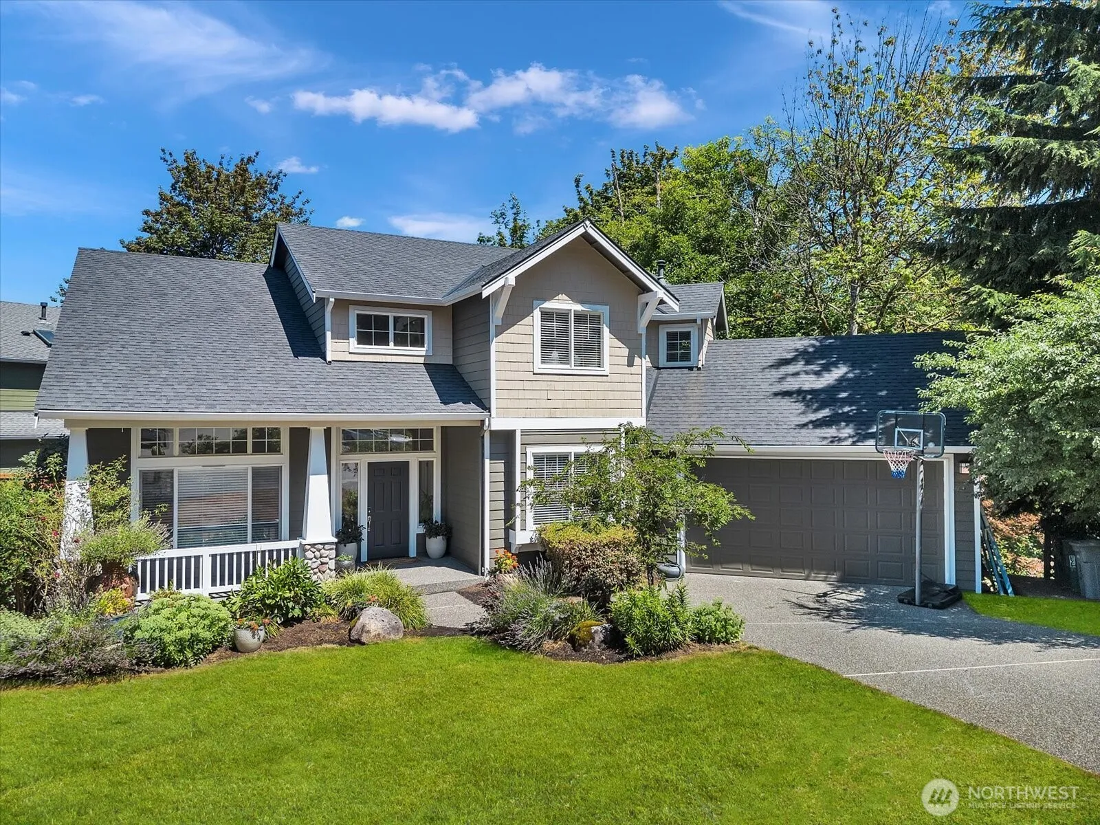 Perched high at the top of Forster Woods, this special Parkwood Snoqualmie model rests on a shy 1/3 hillside acre surrounded by terraced gardens and greenbelt spaces. Extensively remodeled and upgraded from the new kitchen with custom cabinets, slab granite, wine center and LG stainless chef appliances to the solid blonde oak floors, new furnace and air conditioner and of course, the newer roof overhead. Professionally painted inside and out! The open floor plan is well-designed with vaulted ceilings and magnificent light. The interiors are complimented perfectly by the private outdoor multi-level deck featuring a new hot tub and barbecue station created with entertainment in mind. An oversized 1-bay/2-car garage provides excellent storage.