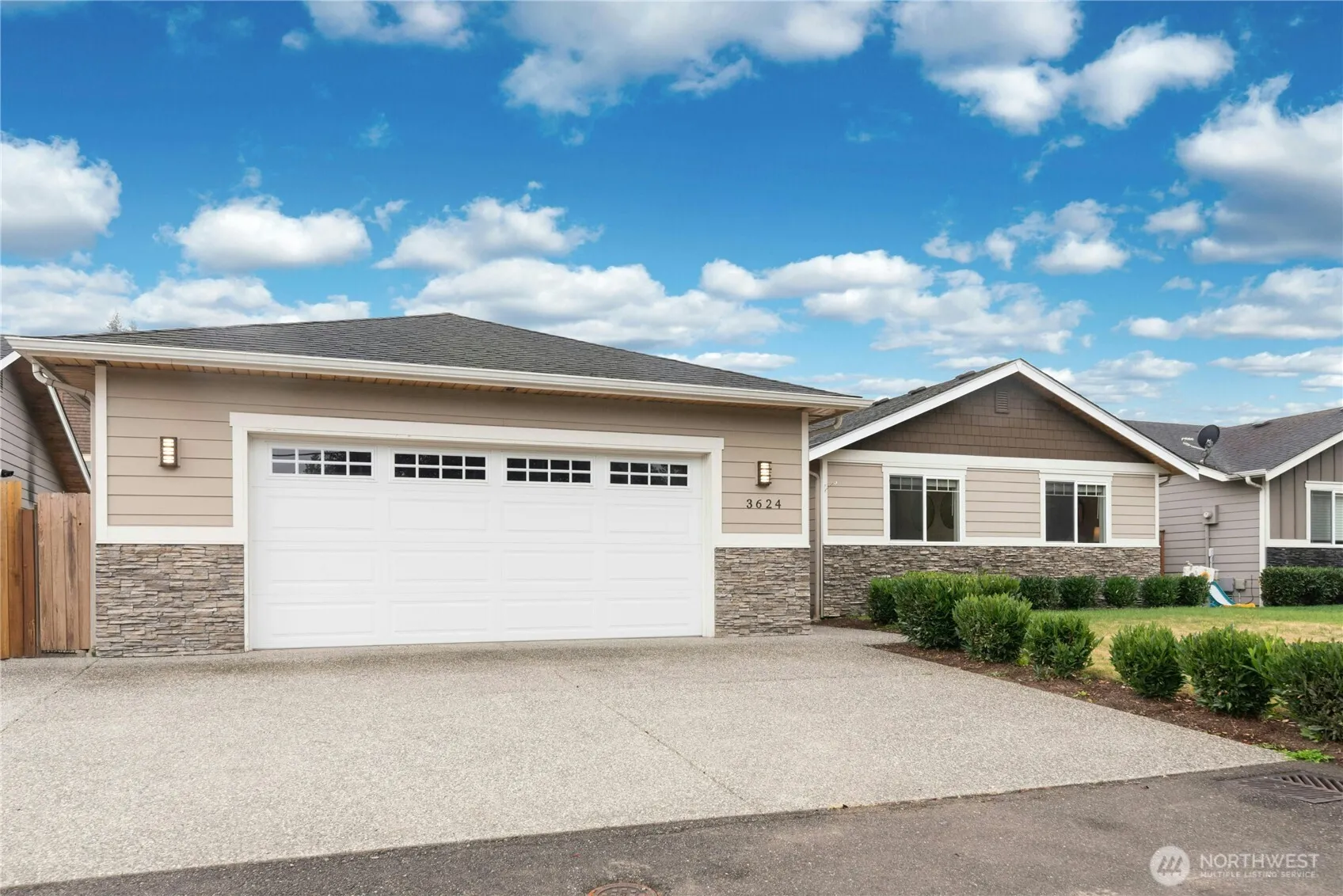 Welcome home to this move in ready single story home. Built in 2013, this light bright home features over 1500 square feet, 3 bedrooms, two bathrooms, granite countertops, hardwood floors, vaulted ceilings, gas fireplace, true primary suite, brand new carpeting in the bedrooms, two car garage and so much more. Bask in the sunny backyard or become a home gardener. Enjoy the proximity to the Arlington Airport, Downtown Arlington and I5. If you are looking for a turn key single story home to serve as the setting for the next chapter of your life, this is for you. Seller procured inspection and sewer scope are available upon request.
