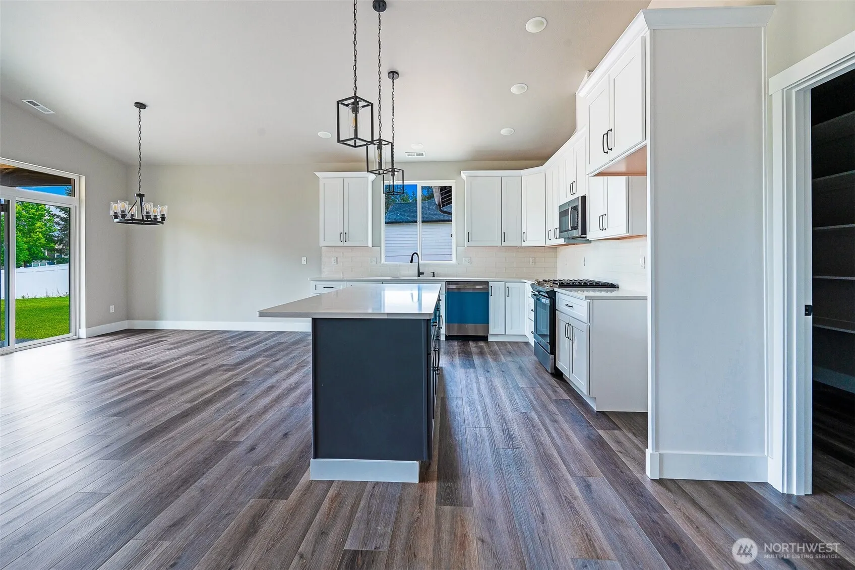 This newly completed 1-story home checks all the boxes! Situated on over 1/3+/- acre corner lot in Fox Run, this home features oversized 3-car garage with 33’+ deep 3rd bay. Step into LVP floors and an open great room with vaulted ceilings and cozy fireplace. The kitchen is open to great room and features large eating island for entertaining, gas range, beautiful full-height subway tile backsplash, and a massive pantry – a food lover’s dream! The primary suite features full 5-pc bath with freestanding tub, separate shower, and walk-in closet. Full landscaping with irrigation and fenced yard included. Quality construction from long time builder Ron Deering Homes.