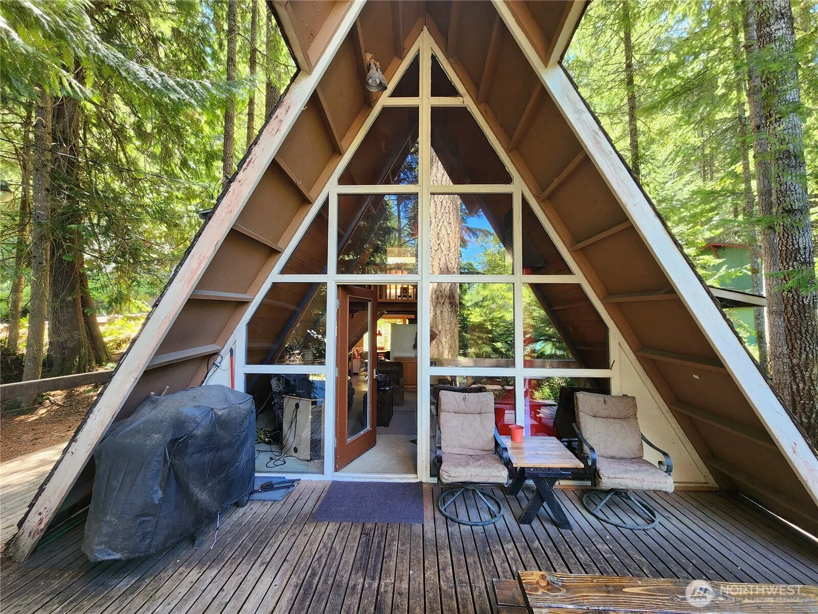 Come discover this fully furnished A-Frame in the desirable neighborhood of Upper Timberline! This home sits on a corner lot in the cul-de-sac of Forest Lane and the house is surrounded by trees. Sit on the deck and enjoy looking out at the mountains or enjoy an evening next to the fire pit. Two official bedrooms (plus three more beds in the loft) with 1.5 baths. Laundry is a washer/dryer in one machine. Previously used as a winter seasonal rental. Less than 17 miles to White Pass Ski Resort and 3.5 miles from downtown Packwood. TCA community has 2 pools, tennis court, clubhouse, and playground. Hunting, skiing, hiking, fishing, and more outdoor recreational activities in the surrounding area.