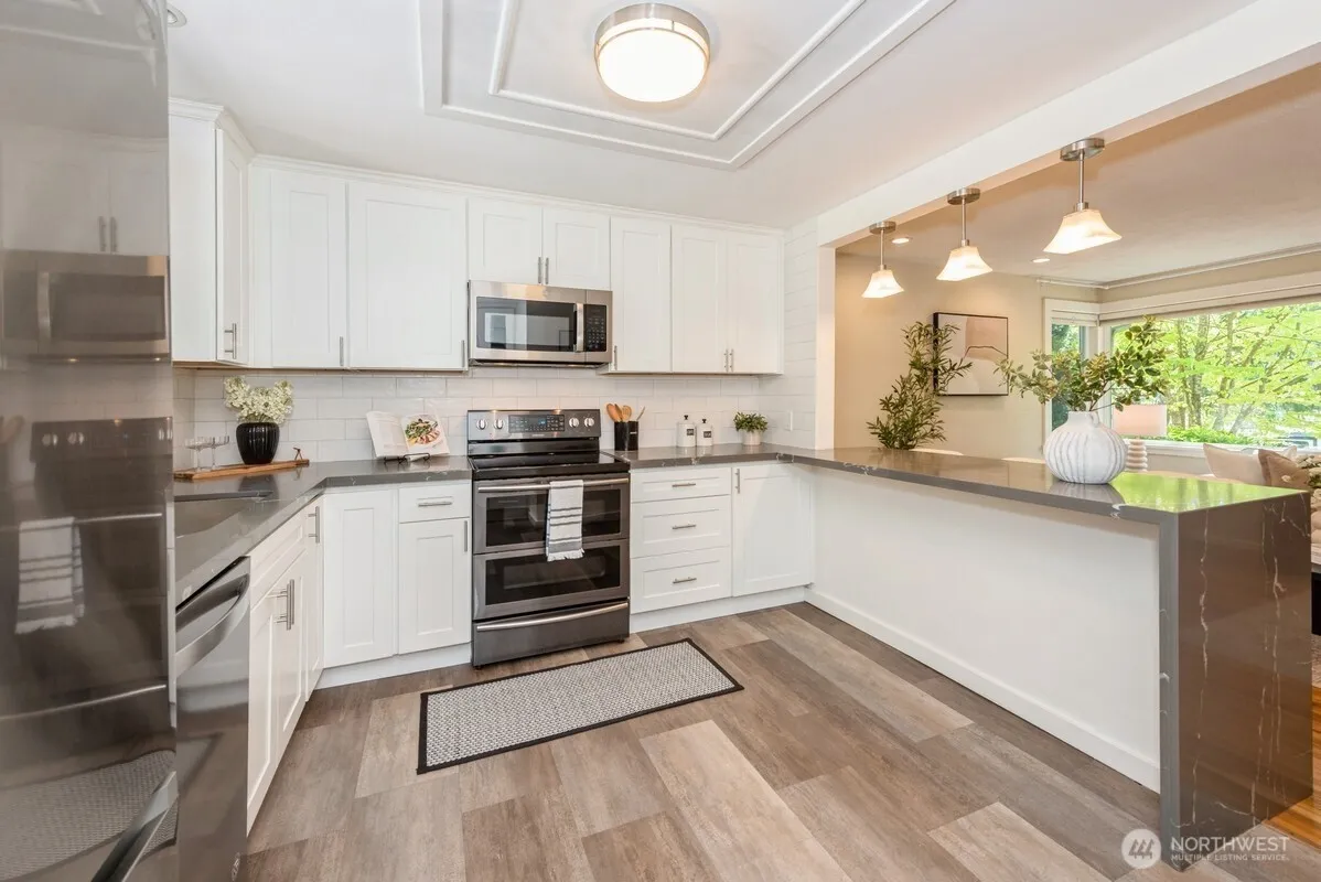 Stylish Shoreline home with tasteful upgrades, including remodeled kitchen, baths, and landscaping. The new furnace and water heater enhance the comfortable living among the beautiful surroundings. Lower level features a private-entry mid-term studio with kitchenette, and private bath offering steady income potential. Large backyard deck, new retaining wall, and carport improvements enhance outdoor living. Prime location within walking distance to transit, parks, and amenities with ADU or high-density development potential. Neighborhood friendly, highly rated schools, income producing and development potential – ideal for homeowners, investors, or developers seeking versatility and value – this home has it all!