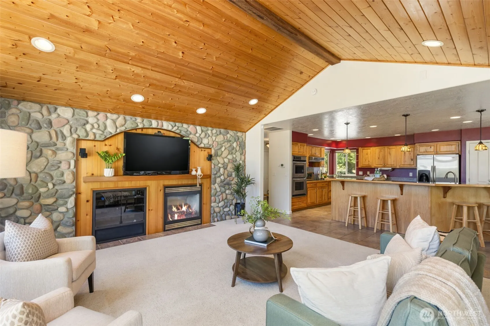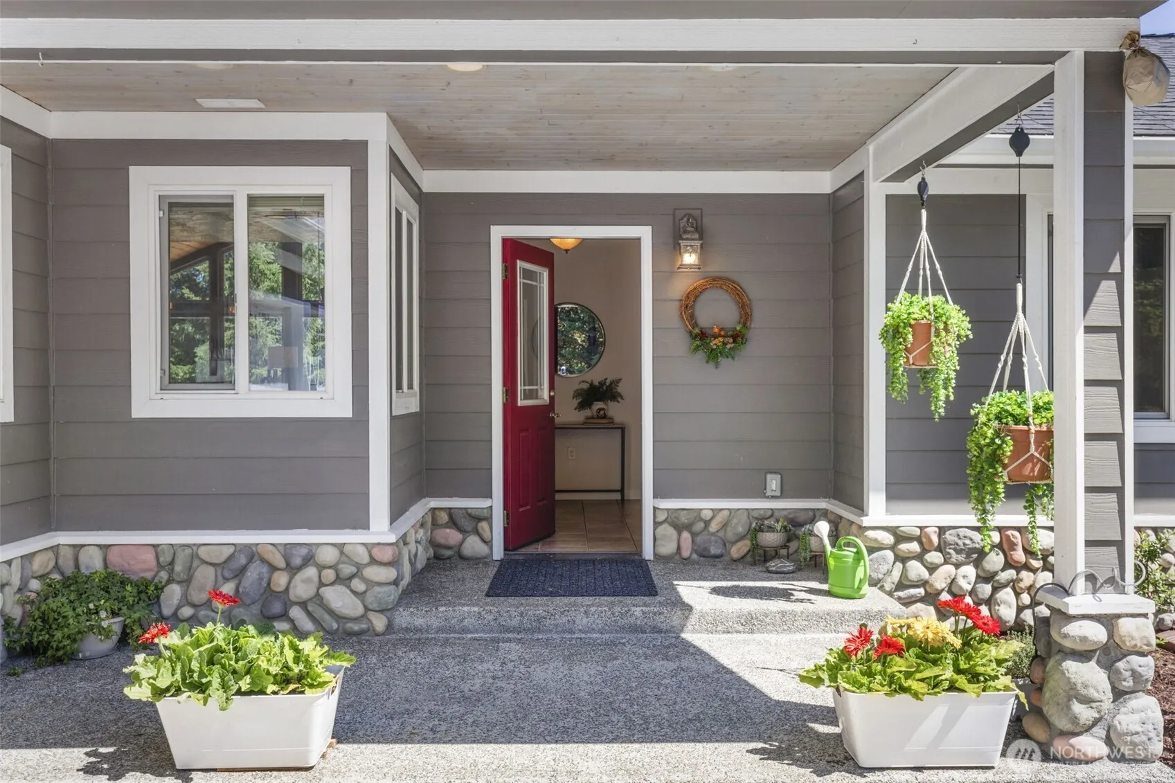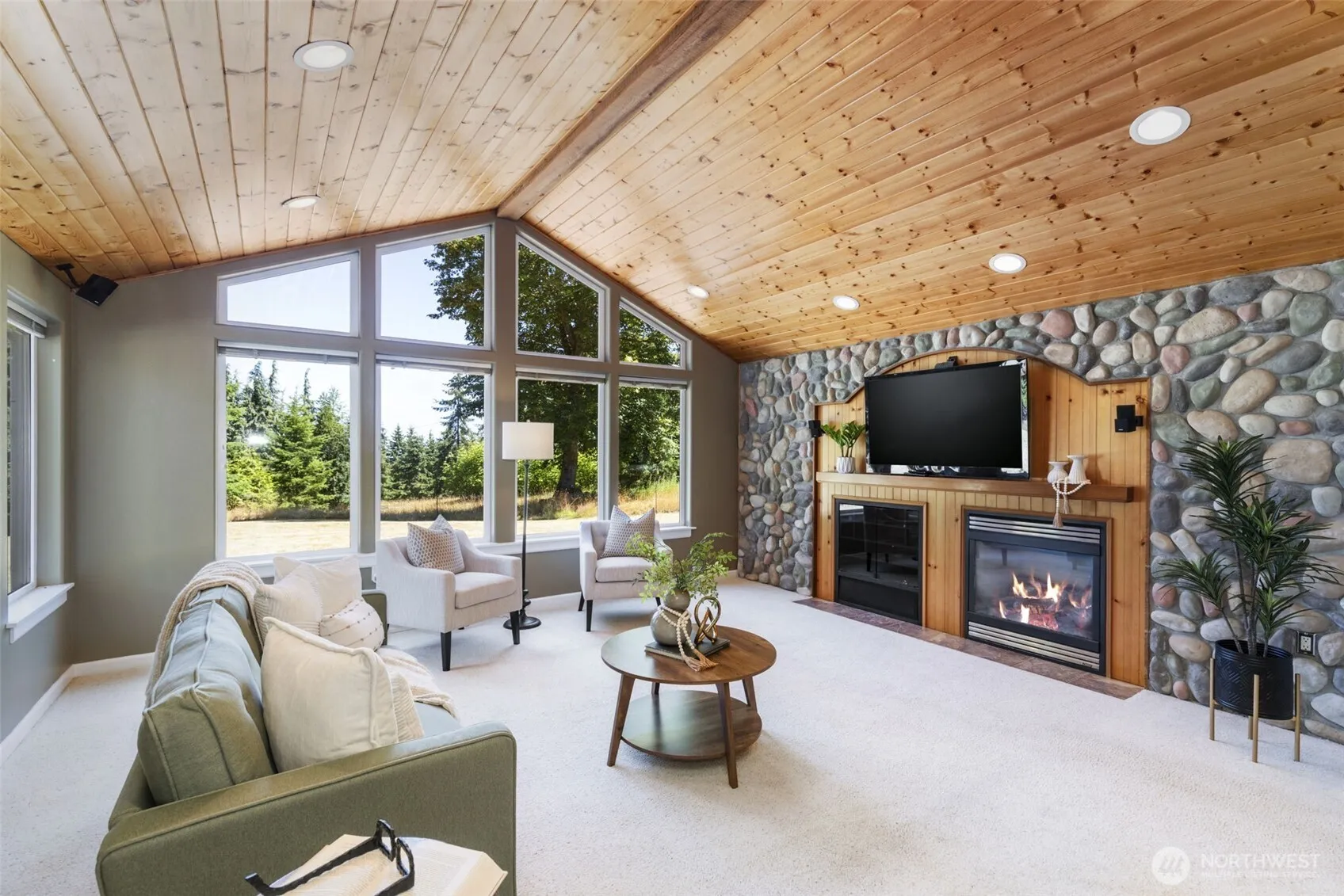 Private Elegant Retreat with Gardens, Wildlife & Sunshine. Tucked between Sequim and Port Angeles, this 4-bed, 2.5-bath home offers peaceful living on 2.4 sun-soaked acres. Enjoy a light-filled vaulted great room with fireplace, river rock accents, an open kitchen with eat-in seating, and seamless indoor-outdoor flow to the patio, perfect for entertaining. Outside, explore vibrant fenced gardens, a charming chicken coop, and watch native wildlife pass through your own natural oasis. Deer, birds, and bald eagles add enchantment to everyday life. The detached garage provides over 1,000 SF of bonus space for hobbies and storage. Upgrades include new roof, new range, encapsulated crawlspace, gutter guards, and covered RV parking,