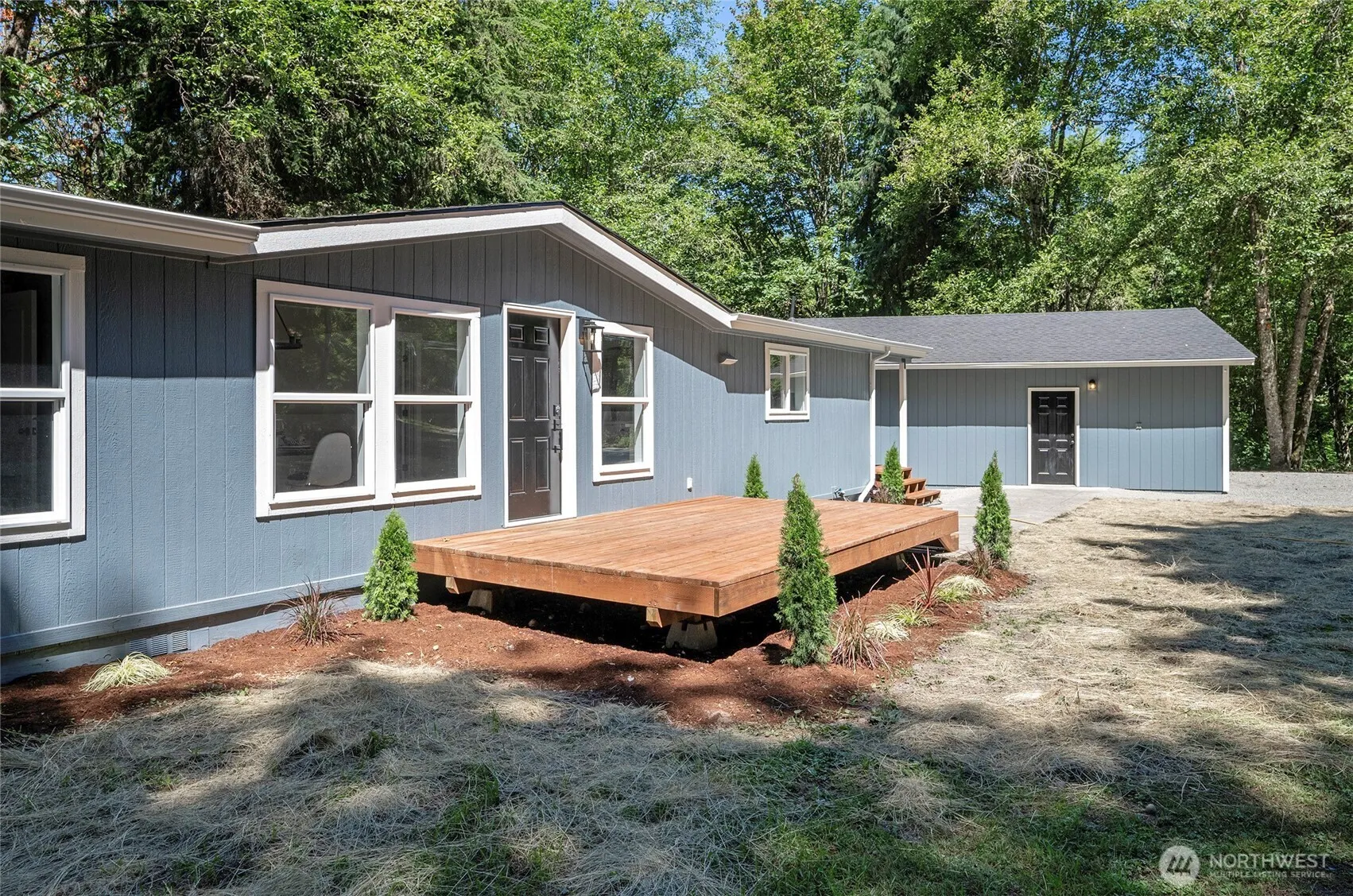 Come see this Fully Updated, 1,681 sq ft, 3 bed, 2 bath home on your own private 4.51 acres. The open kitchen features all new cabinets, Quartz counters & back-splash, Pantry, new Stainless Steel Appliance package including range, dishwasher & microwave oven. Vaulted ceilings with skylights and engineered plank floors throughout the living area. New doors, millwork, paint, lighting & plumbing fixtures. Primary bedroom includes a bathroom with double sinks & walk in shower. Vinyl windows. Mudroom entry. Newer roof, gutters & downspouts. Oversized 720 sq ft detached garage with shop area & 100A sub-panel. Boat or RV parking. No HOA dues. Come see!