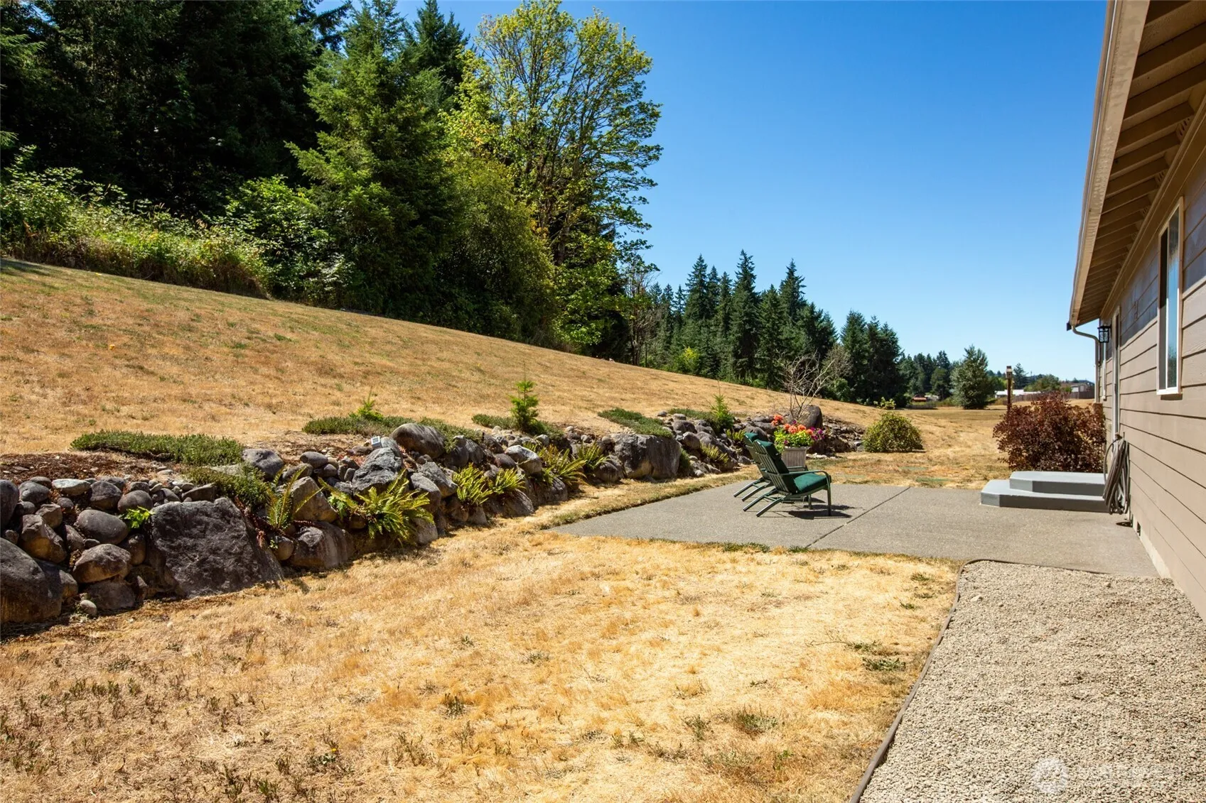 If you love the privacy of the country and the convenience of the city, you’ll love waking up in this charming one-level home with a split bedroom plan. Just a short walk to Rainier schools and an easy commute to JBLM. Tucked into a spacious cul-de-sac lot next to community open space, it offers privacy and a sunny yard ideal for gardening. Inside, enjoy a large open kitchen, dining, and living room space with a cozy gas fireplace, perfect for gathering or relaxing. The generous primary suite features a luxurious five-piece bath and two large walk-in closets. No stairs and air-conditioned comfort make living easy. The new exterior color scheme gives the home a fresh, updated look. Enjoy small-town life at its best!