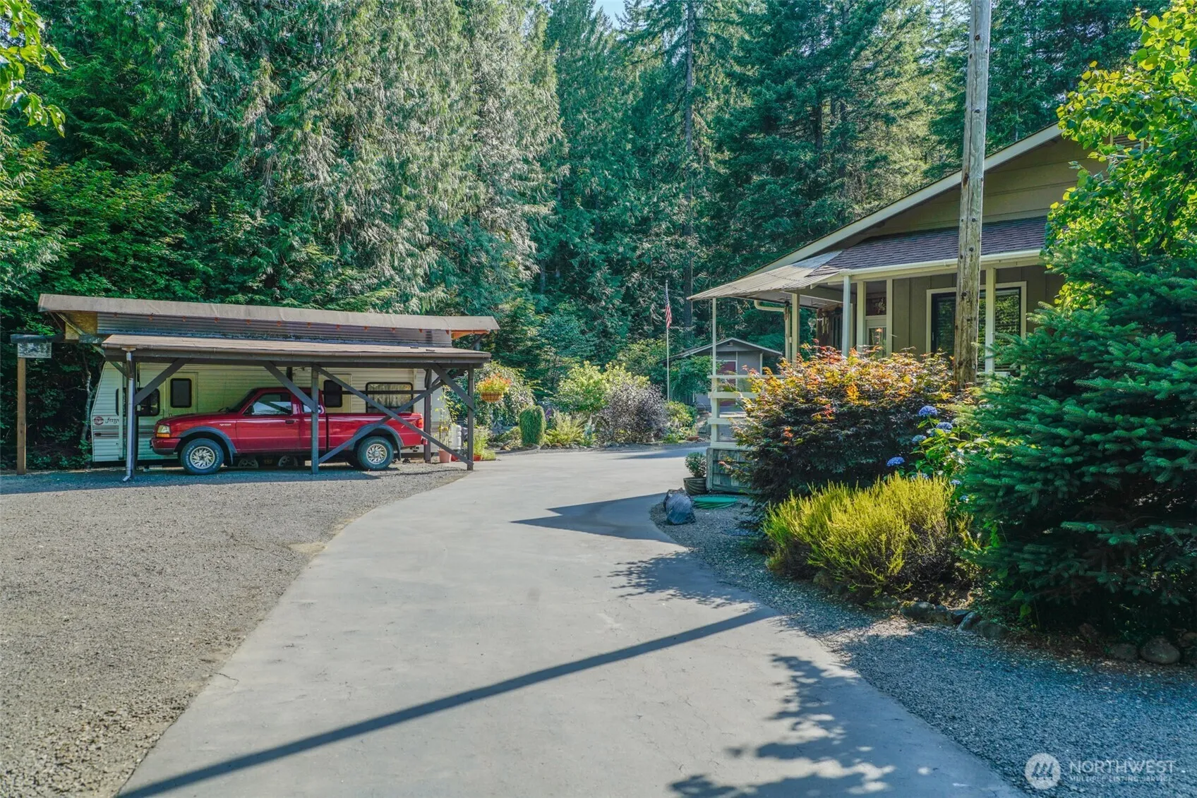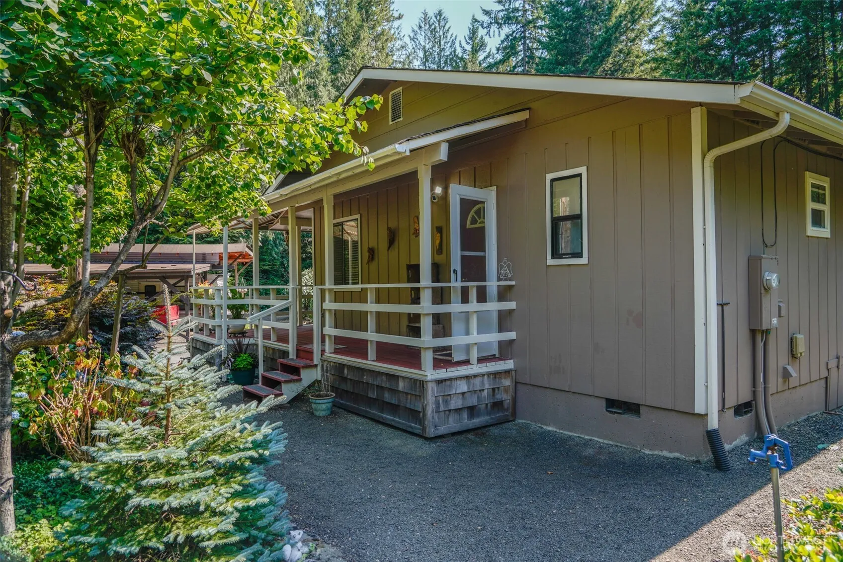 Charming Hoodsport retreat on over an acre of peaceful, private land! This well-maintained split floor plan home features a spacious, updated kitchen and a bright bonus sunroom perfect for relaxing or entertaining. Outside, enjoy a 1-car garage, a powered outbuilding set up as a shop, covered RV parking, and separate full RV hookups. The beautifully maintained garden, greenhouse, cozy firepit, and drive-through driveway make this property as functional as it is inviting. Ideal for full-time living or weekend getaways—don’t miss this unique opportunity!