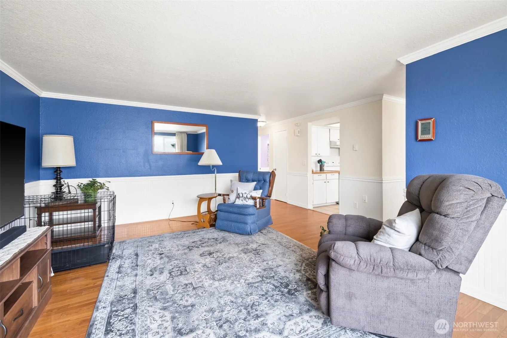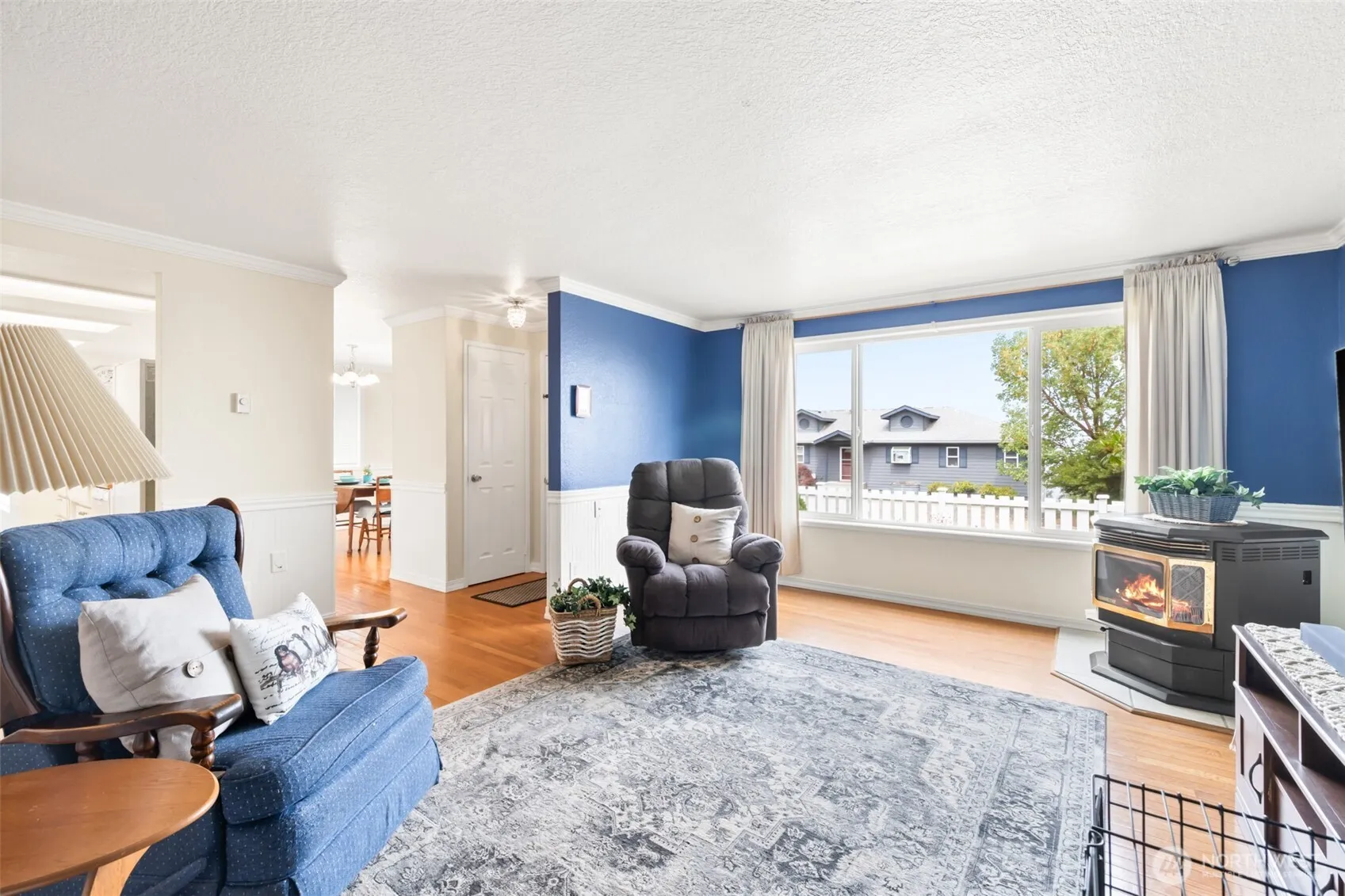 Charming and well-maintained 3-bed, 2-bath home with fenced front and back yards—ideal for those with pets, play, or relaxing. Enjoy stunning views of the Strait with cruise ships, twinkling Canadian lights, and Mt. Baker on clear days. Located near the Discovery Trail. Interior features include wood floors, fresh paint in select rooms, and a bright sun room that doubles as bonus storage. The backyard boasts beautiful roses, established strawberries, and a variety of blooming flowers. This home blends comfort, charm, and natural beauty—come see it today!