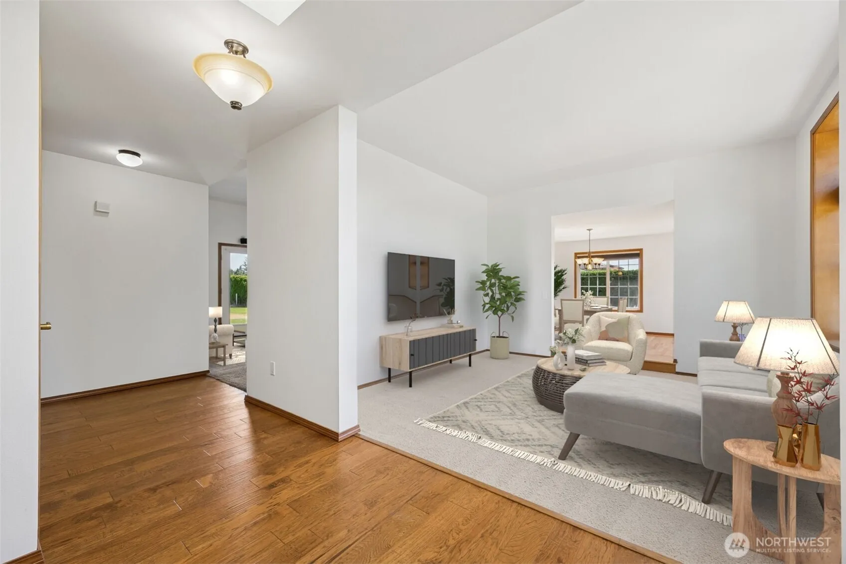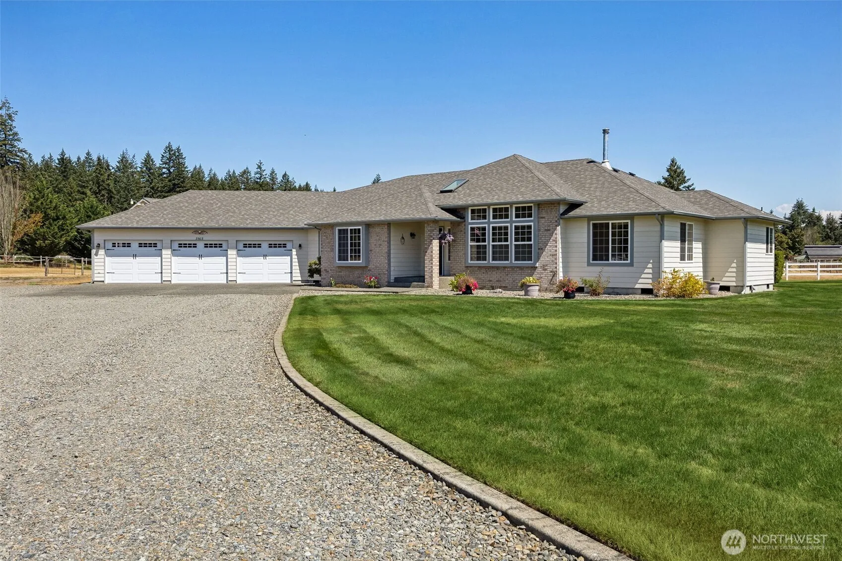 Gated Equestrian Property! Beautiful 3 bedrm 2 bath rambler on 2.43 acres with MT. View! The home features a Formal Living & Dining rm. The Updated Kitchen includes quartz counters, SS appliances & refinished hardwood floors. The great room includes a wood burning stove. Primary bedroom with 5 piece updated bathroom. Plus an updated main bath. Custom closets. The Interior has a fresh coat of paint. Enjoy the covered deck. The Gazebo is wired for a hot tub. Surround sound in the home, deck & gazebo. The lot is fully fenced & cross fenced. Your horses will love the 936 sq. ft. 2 Stall barn w/ dutch doors, heated tack rm w/sink & hay loft. 1200 sq. ft. RV carport. Heatpump to cool & heat the home. Home is wired for generator. Welcome home!