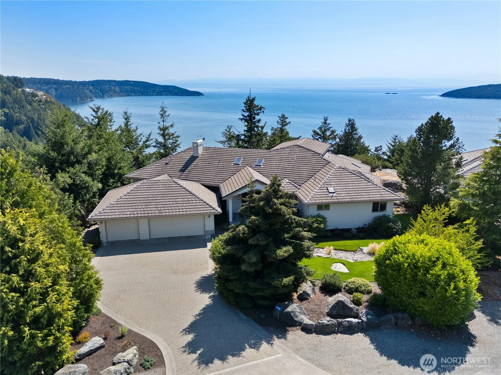 Soar with the eagles at The Point — a desirable community where privacy, space, and sweeping views surround you. This move-in-ready home offers main-level living with an open concept, vaulted ceilings, skylights, and an updated kitchen and baths. Wake up to breathtaking ocean, mountain, and sound views from nearly every room. Cozy up by the gas fireplace, or entertain on the upper-level view deck. A finished basement provides added flexibility, and the oversized 3-car garage includes a workspace. Outside, the landscaped yard and firepit invite you to relax under the stars. Tile roof, central AC, and a rare sense of tranquility complete the package.