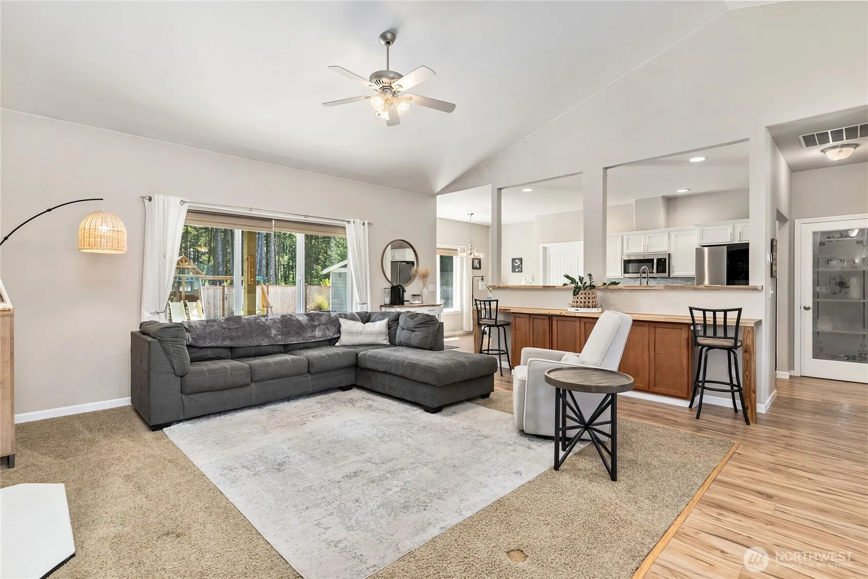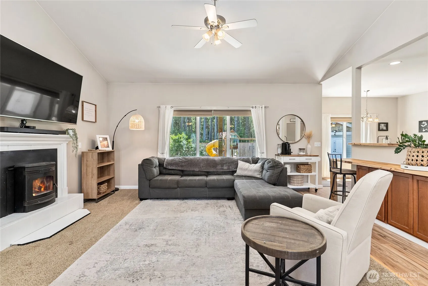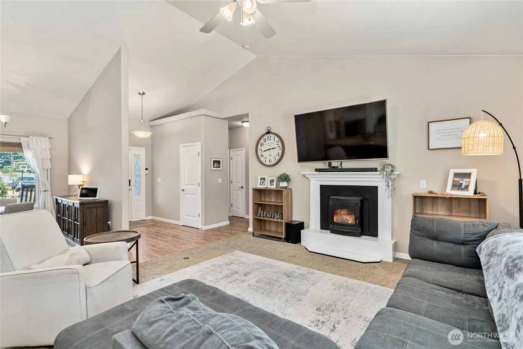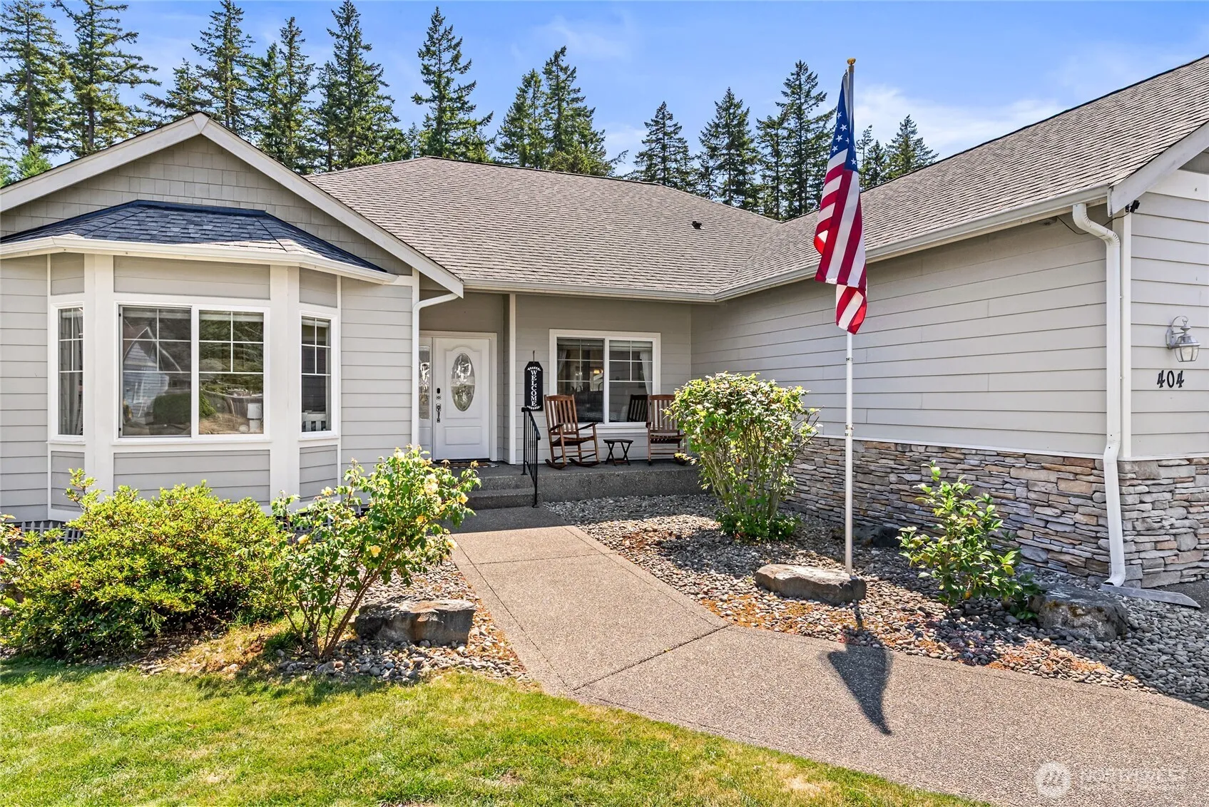 Private. Peaceful. Perfect. This custom-built RAMBLER offers the ideal blend of comfort and functionality on a beautifully landscaped 1/3 acre lot. From the moment you enter the grand foyer, you’ll be captivated by the spacious layout and thoughtful design. The well-appointed kitchen offers generous counter space, abundant cabinetry, and seamless functionality. Retreat to the expansive primary suite, featuring a spa-inspired bath and a walk-in closet with built-in cabinetry for ultimate organization. Two additional oversized bedrooms share a full bath, offering space and privacy for guests. A/C, heat pump, RV parking, 3 car garage, sprinkler system, retractable awning, covered patio, wired for generator, HUGE storage shed, minutes to JBLM!