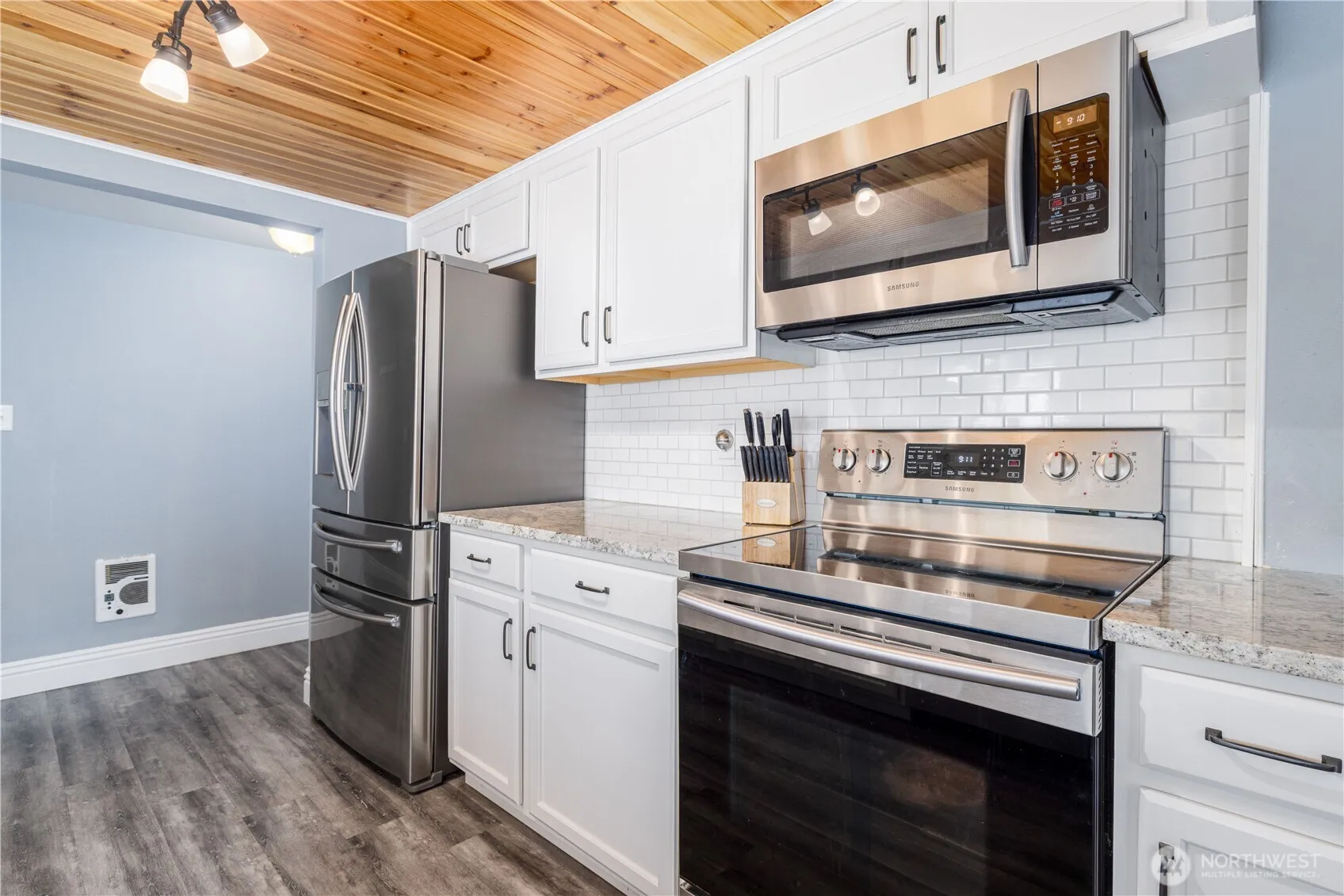 Fabulous home on oversized lot features 3 bedrooms, 1.75 baths, and tons of updates. Beautiful upgraded cabinets, granite & SS appliances in kitchen, updated baths w/ tongue & groove wood ceilings, fresh interior paint throughout. Crisp white woodwork in main living spaces. Enjoy the private yard on your deck overlooking a sprawling lawn and mature trees with abundant wildlife. 2-car attached garage, room for boat/RV parking, and space to play or garden. Located on a dead-end street with easy access to downtown or highways.