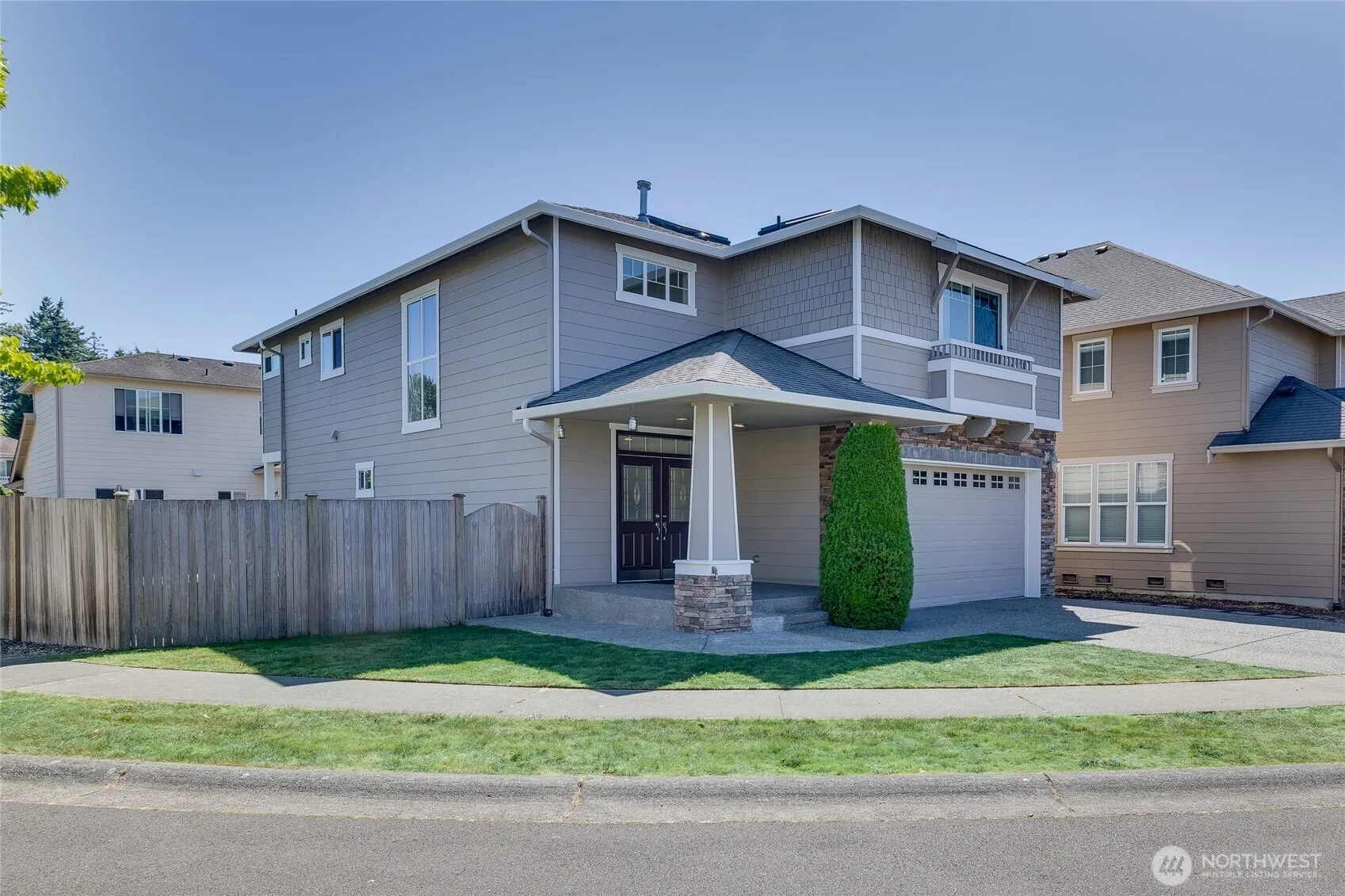 Smart layout, modern convenience, unbeatable location! Freshly updated with new carpet throughout, new paint inside + out, this home offers a bright, open-concept layout that’s great for everyday living. A grand curved staircase and architectural curved walls add unique character, while the built-in central vacuum for easy maintenance. On the main level, you’ll find real hardwood floors, newer kitchen appliances, a dedicated home office or bonus space. Outside, the corner yard has plenty of space to relax & features a hot tub. 4 bedrooms up, including a huge primary suite with a walk-in closet + spa-like bath. Tons of storage throughout. The neighborhood is friendly, with a large play space, beach volleyball court & park. Pre inspected!