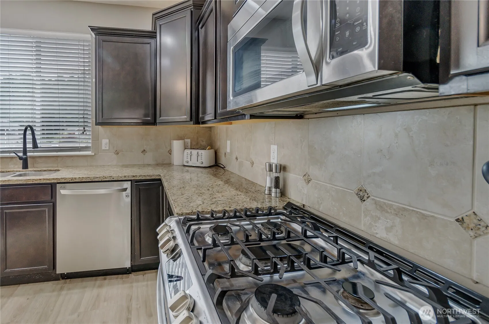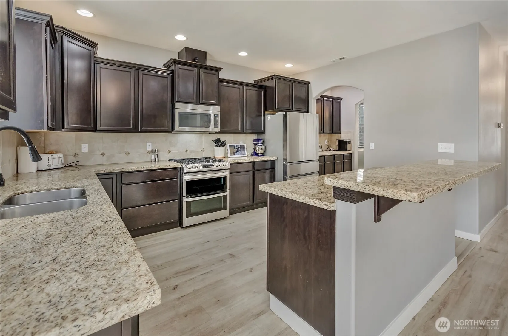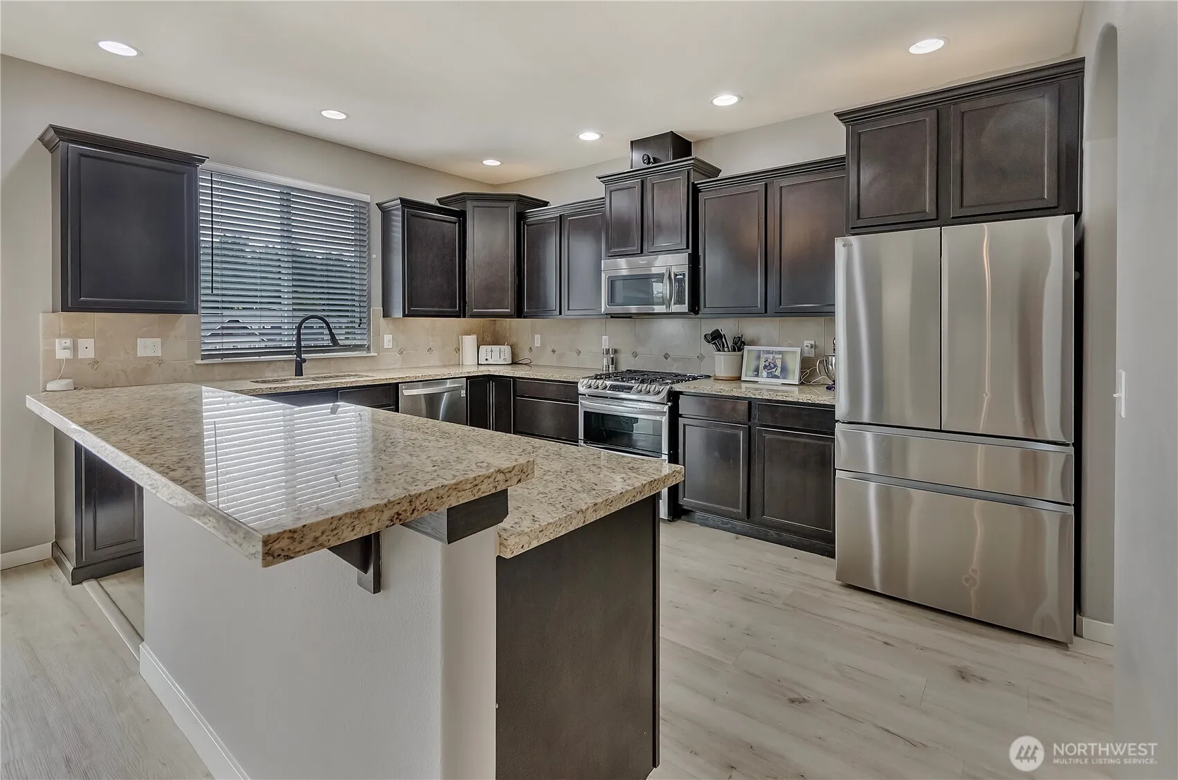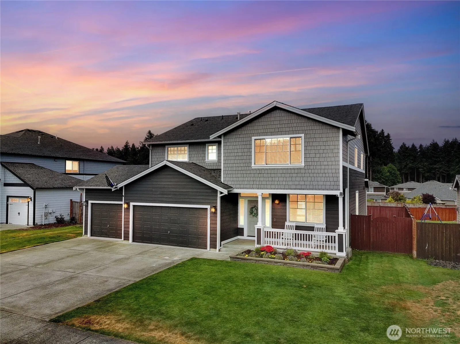 Hard to find 3088 Sq. Ft. 4 Bedroom home on .23 acre backing permanent open space in gated community. Home has recent refresh that includes exterior paint and new flooring throughout- even on the stairs. Kitchen has granite countertops, stainless appliances with gas range that includes double ovens and large butlers pantry. Everything is spacious in this home and it offers multiple areas to entertain- from the wide open great room to the loft upstairs and the full length trex type deck outside. 3-Car garage and RV parking. Room for everyone-Check! Close to amenities-check! Work from home-Check! Close to JBLM-Check! Make this home your own.