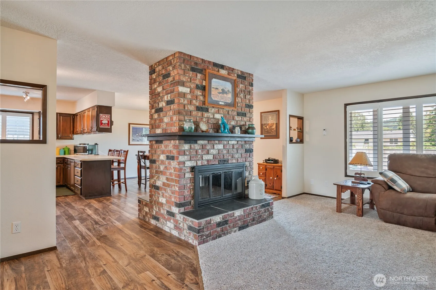 Maintained and updated rambler located in West Longview! This 1476 sq ft home has 3 bedrooms, 2 bathrooms. Great layout features large open kitchen with lots of cabinets, dining area, beautiful double sided fireplace that separates the kitchen and the living room. Primary has updated ensuite bath with barn door, 2 additional bedrooms and an updated bathroom. Home has a new ductless heat pump with 5 head units, less then 10 year old roof, new exterior doors, newer paint and flooring throughout. Private fenced backyard with slough access. 2-car garage. Close to shopping and schools!