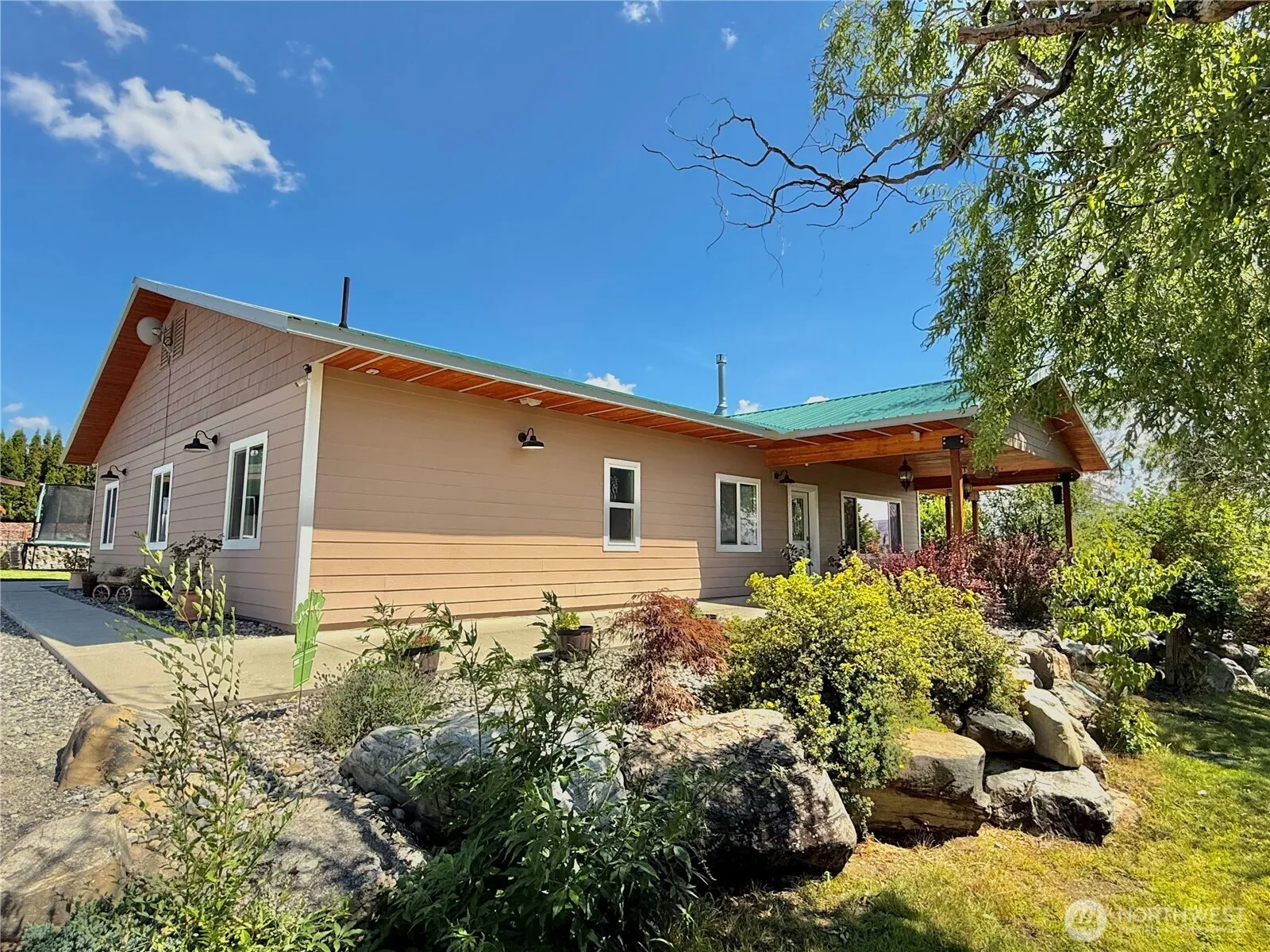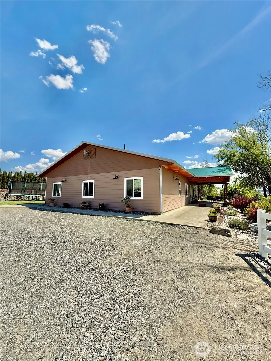 Omak-Privacy w/view! Approximately 2 Irrigated Acres- 3 bedroom/Office/2 bathroom home. Kitchen w/extended breakfast bar & island – granite countertops, soft close & solid maple cabinets, farmer’s sink, 2 gas range/ovens, dining area, & walk-in pantry. Heated floors throughout home. Double sided propane fireplace enjoyed in kitchen/dining & living rooms. Large laundry room w/utility sink & outside entrance. Completely landscaped yard w/mature trees, fruit trees, & lovely garden space w/raised garden beds. Fully automated sprinkler system. TWO full RV Hook-ups. 3 Bay shop 1760 sqft w/finished multi-purpose room. Attached lean-to for extra storage. Fenced yard. Multiple covered entertainment areas! $549,000 H-3698/MLS-2411719