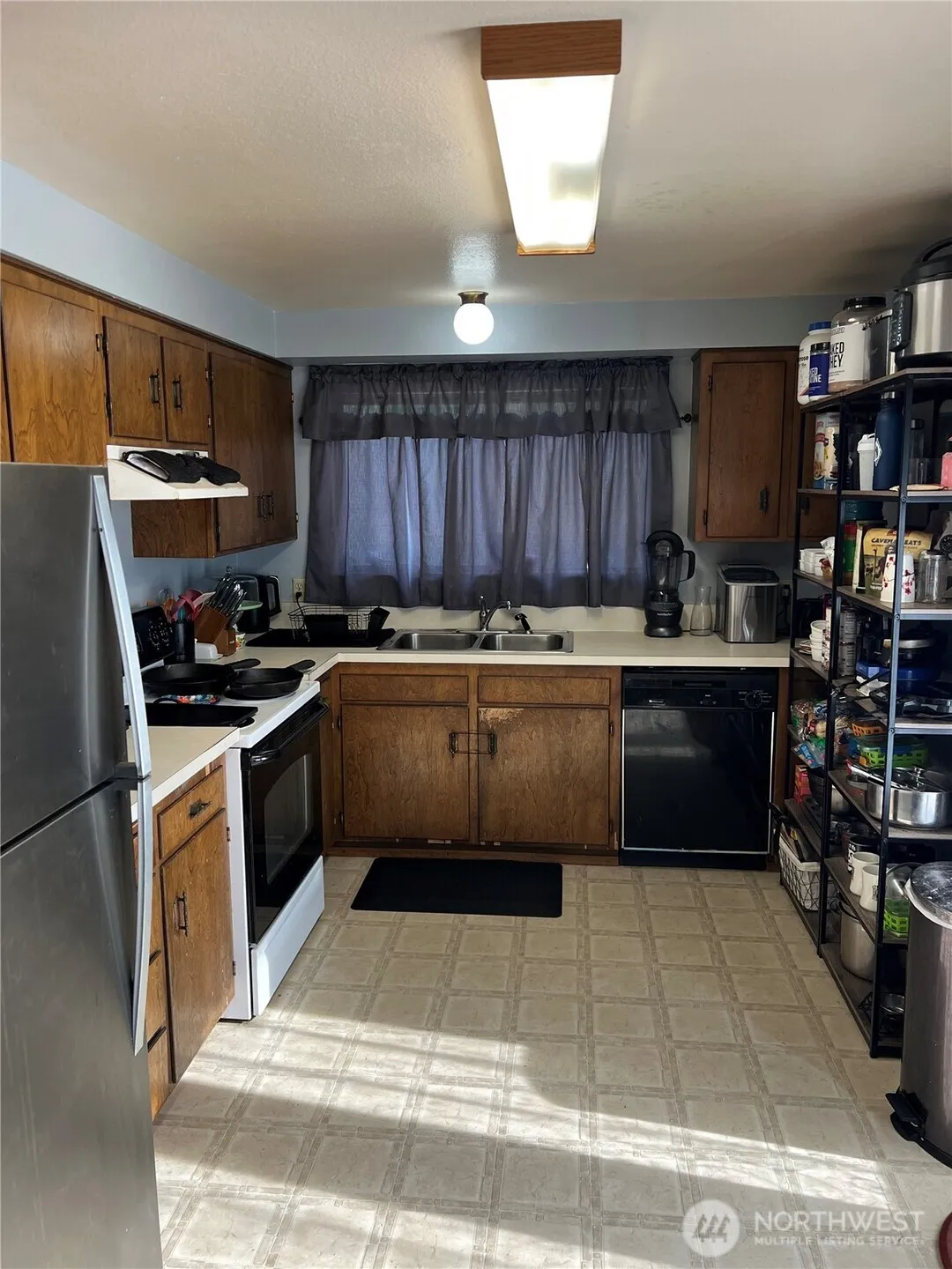 Large home on almost 3 acres in town with shy 2100 sq ft, 4-5 bedrooms, 1 3/4 bath, wood fireplace in living rm, forced air, electric heat (old fashioned baseboards are still there, but not in use), kitchen/ dining combo with door to the lg deck to take in the views. Lower level has family room w/ door to the back covered patio, 2nd kitchen, laundry room, 3/4 bath & 2 additional BR’s. Could be perfect for MIL or Multi-generational living. Plenty of area to garden, lots of fruits trees! There is a room, accessed from the outside lower level that used to be the boiler room but is now being used as a hobby room. Could nicely be a shop! Potential to have this acreage sub-divided. Buyer to verify.