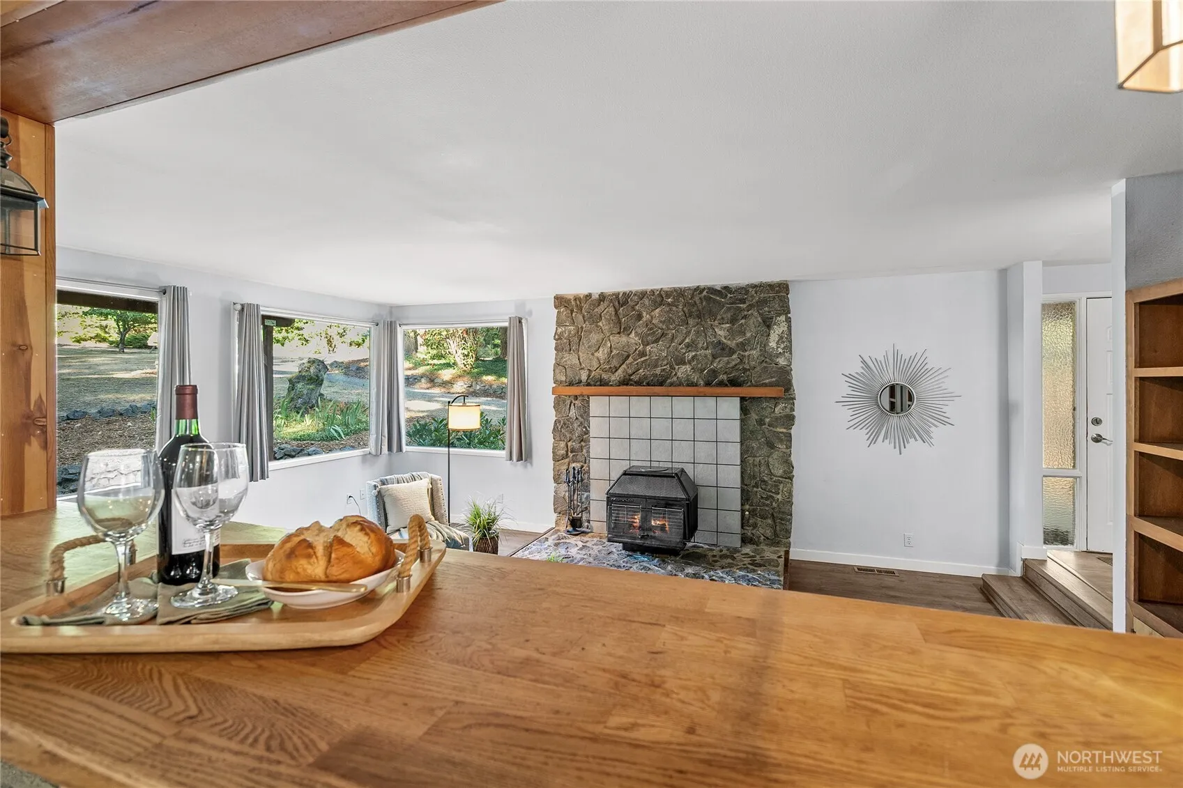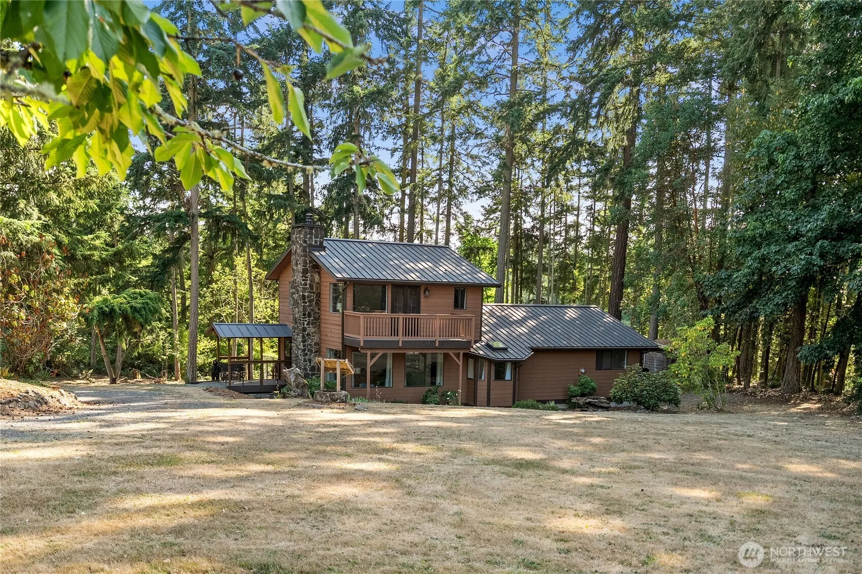 Nestled on a full acre surrounded by mature trees, this private retreat offers the perfect blend of nature and comfort. Enjoy peaceful mornings on the porch watching the deer and listening to the sound of birdsong. There is plenty of space for gardening, entertaining, or simply unwinding in your own sanctuary. Downstairs boasts a remodeled kitchen, open dining space, sunken living room with wood stove and two bedrooms with a full bath. Upstairs you will love the bonus room that leads to the private primary suite with large attached bath and private deck.