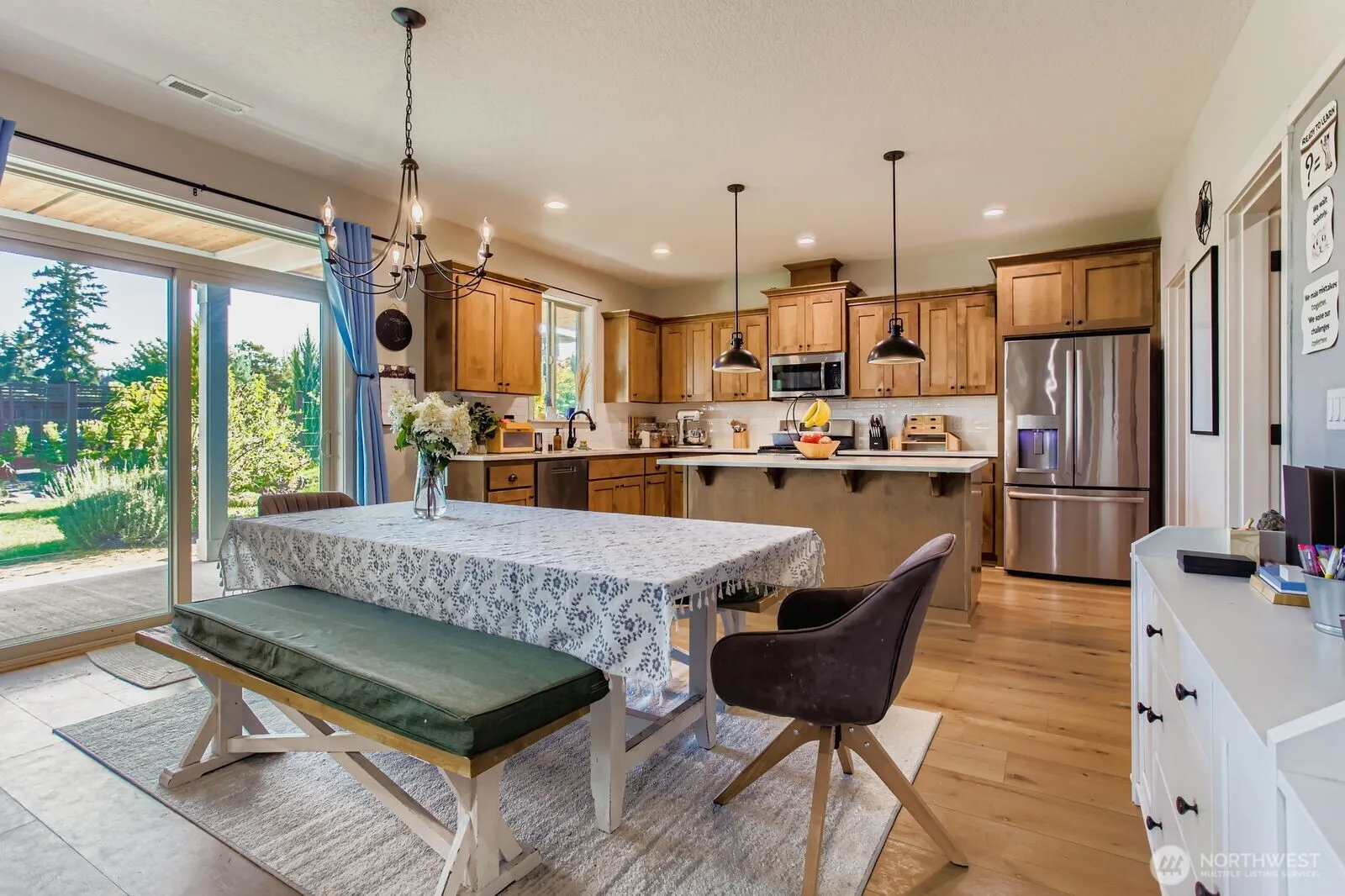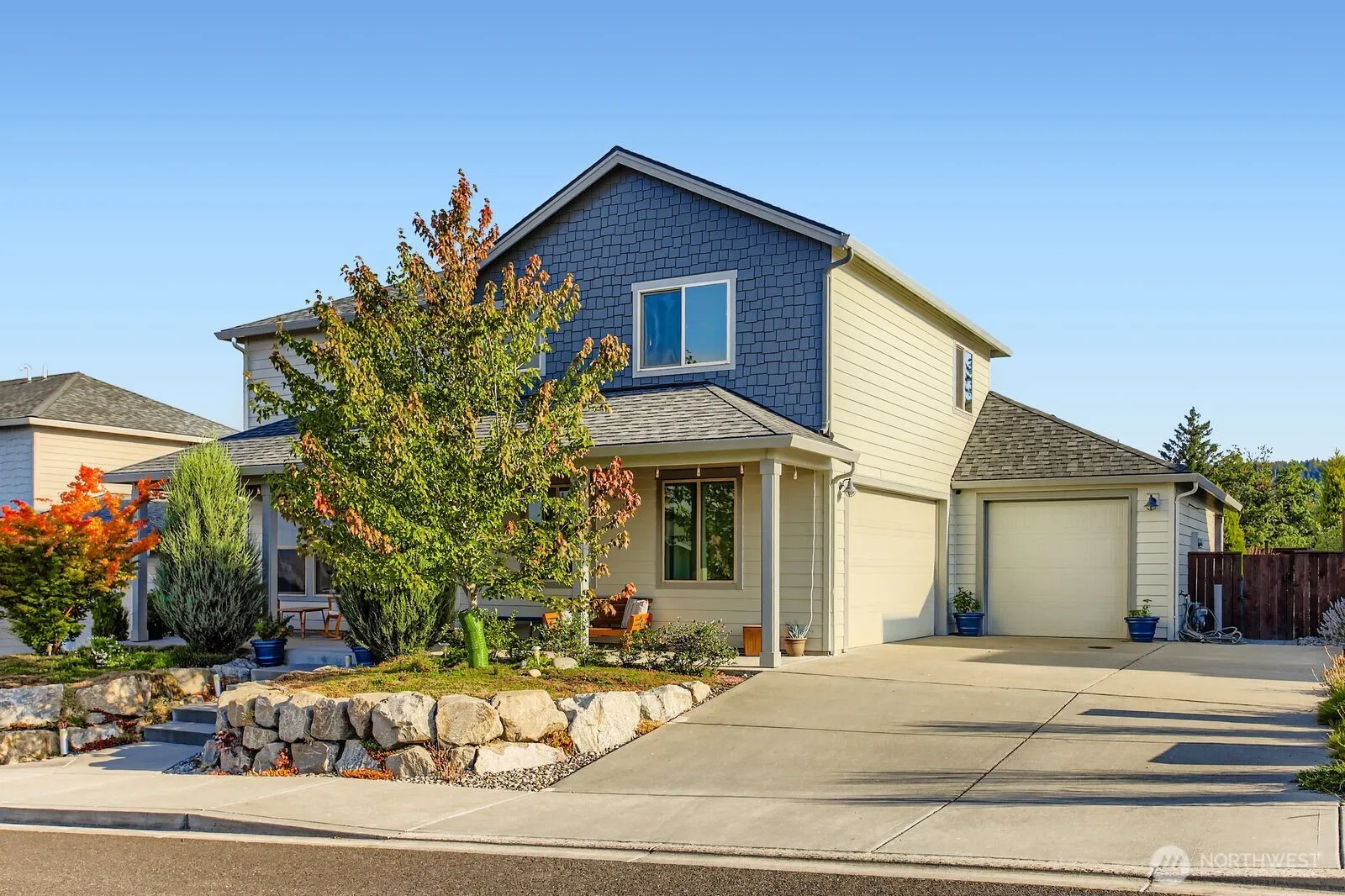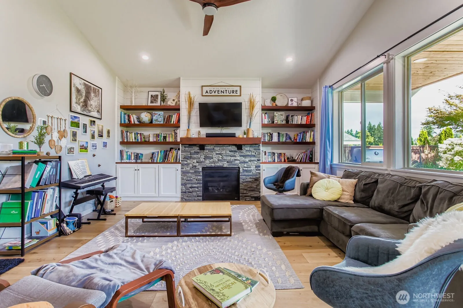 Discover charm and creativity in this 2,323 sq ft 4-bed, 2.5-bath La Center home just minutes from I-5. Enjoy indoor swings, a climbing wall, and home gym, plus an open-concept living area with custom built-ins and cozy fireplace. The kitchen features double ovens, walk-in pantry, and ample space to gather. The spacious primary suite includes a soaking tub and walk-in closet. Outside, enjoy a park-like garden with raised beds, fruit trees, sandbox, drip irrigation, rain garden, and covered front/back porches.